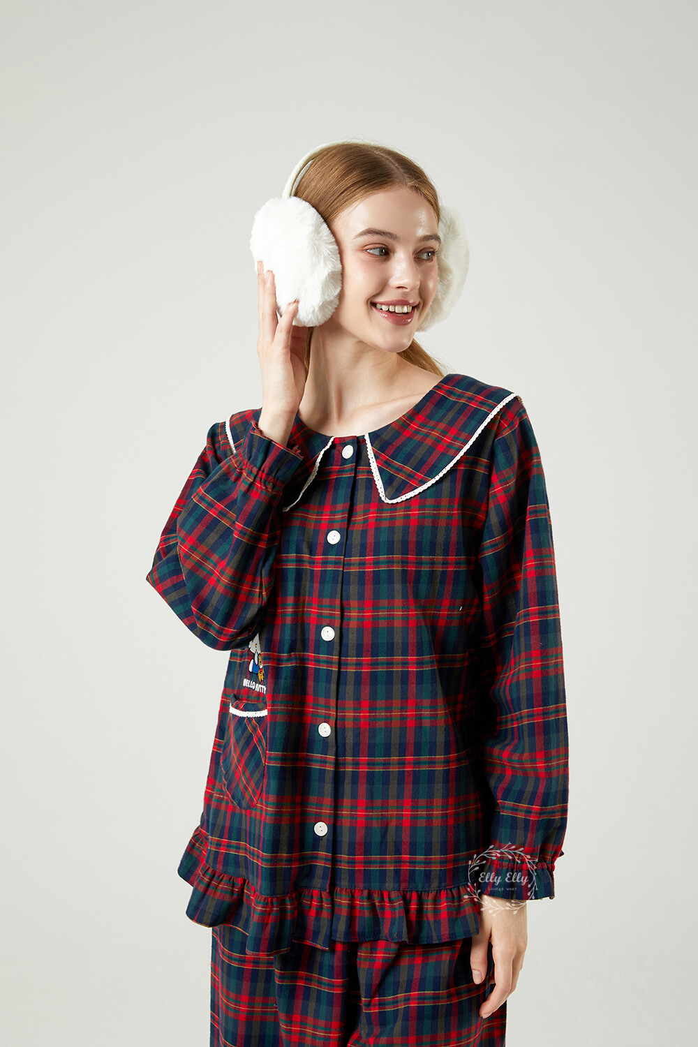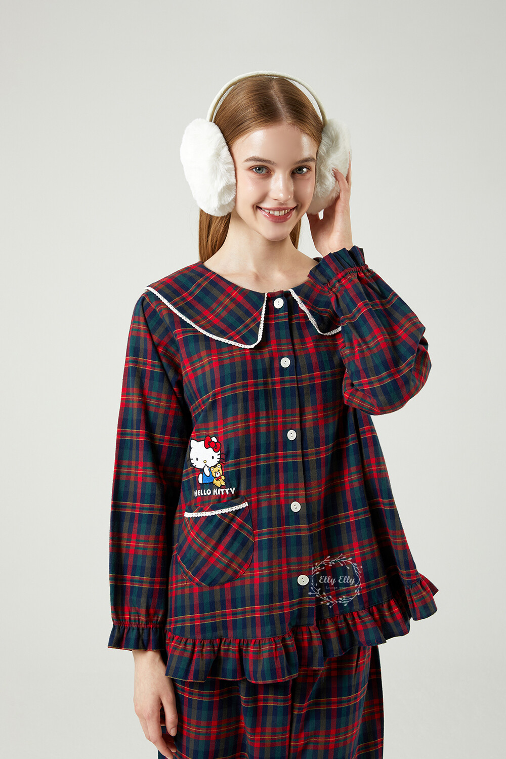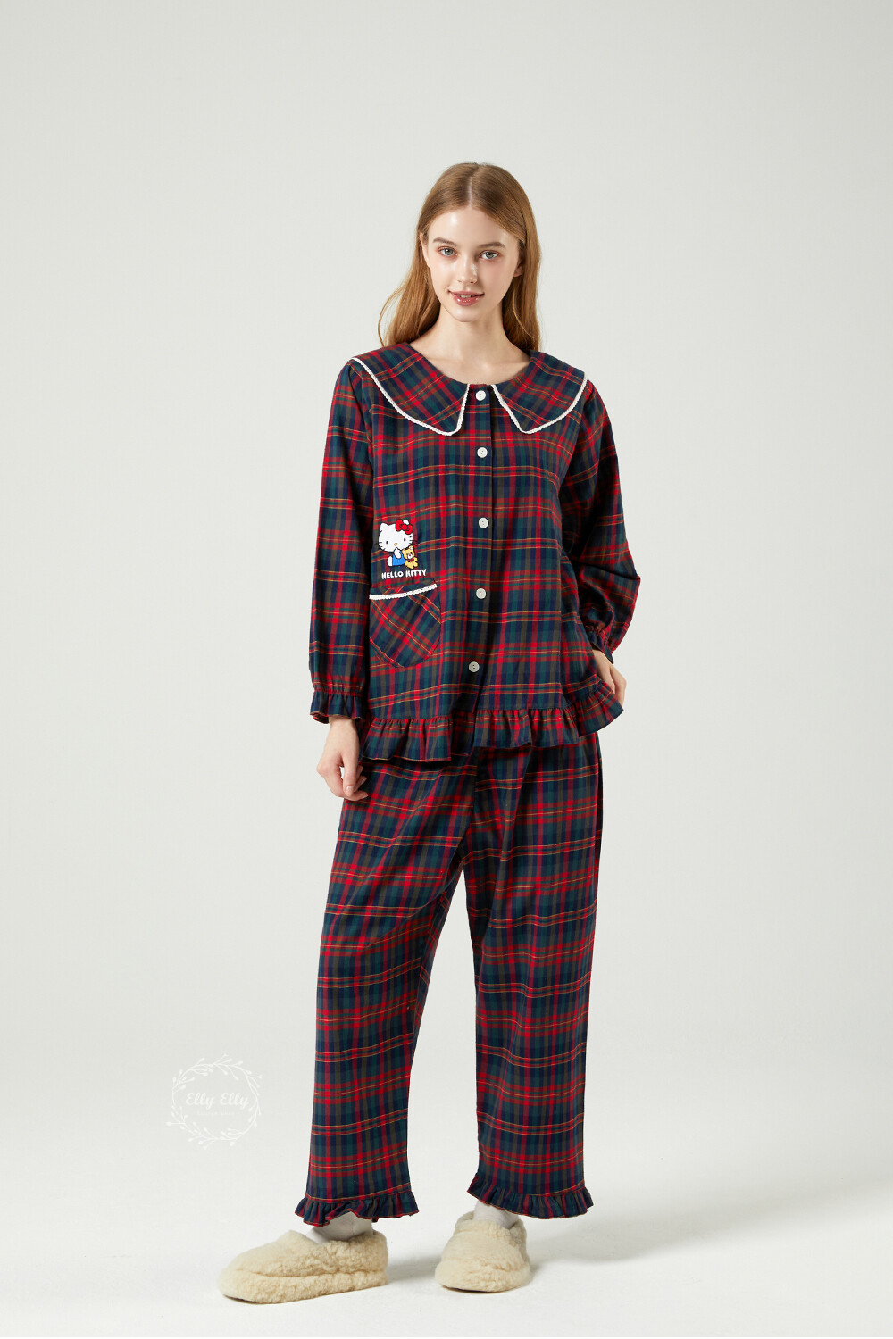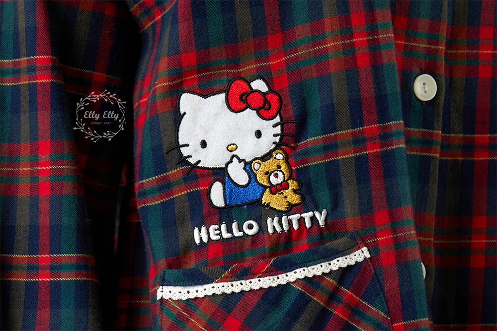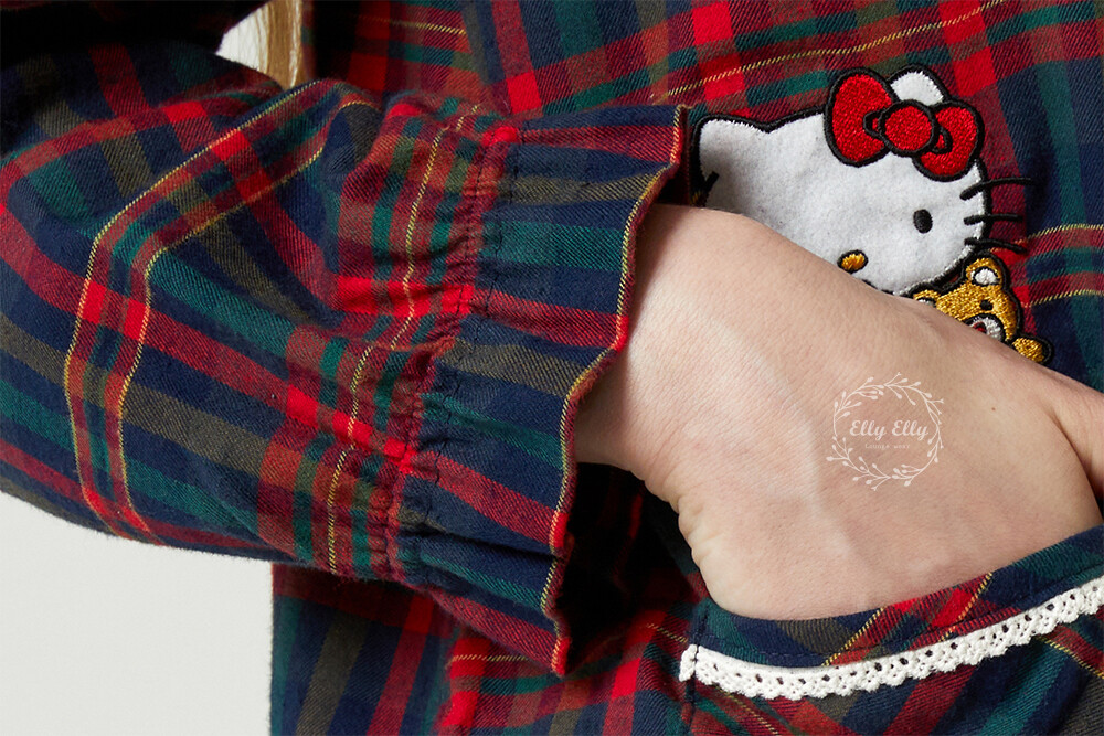 HK-4554 산리오정품 헬로키티 기모 자수 체크무늬 긴팔상하 투피스
