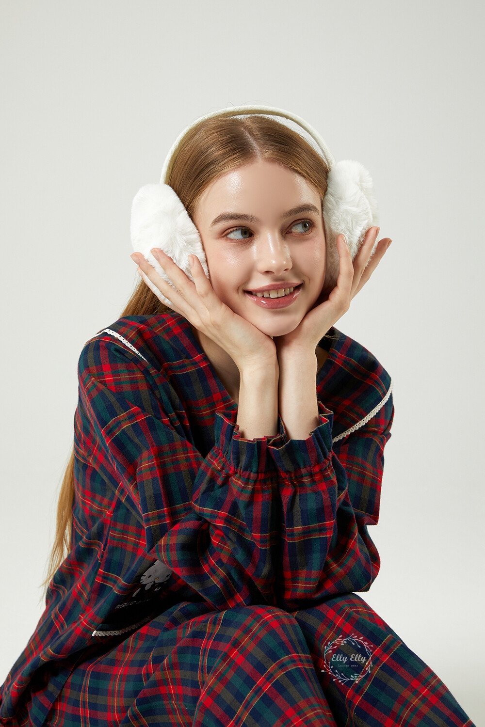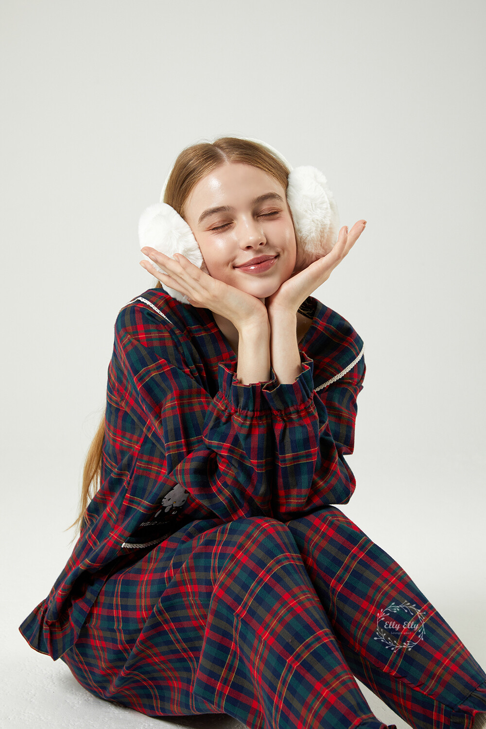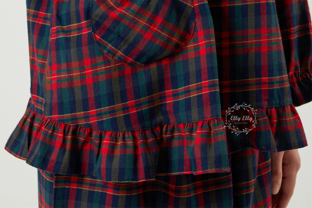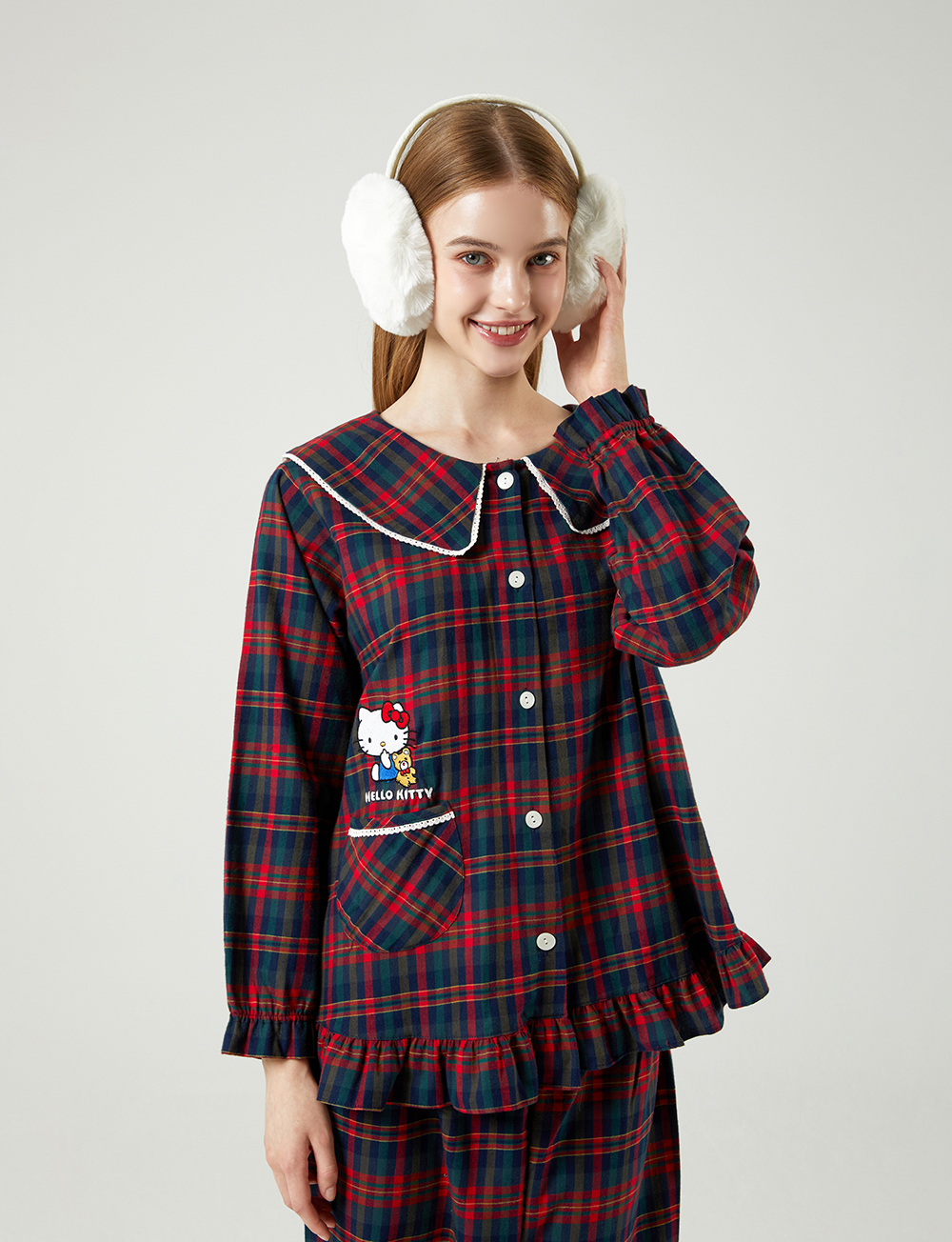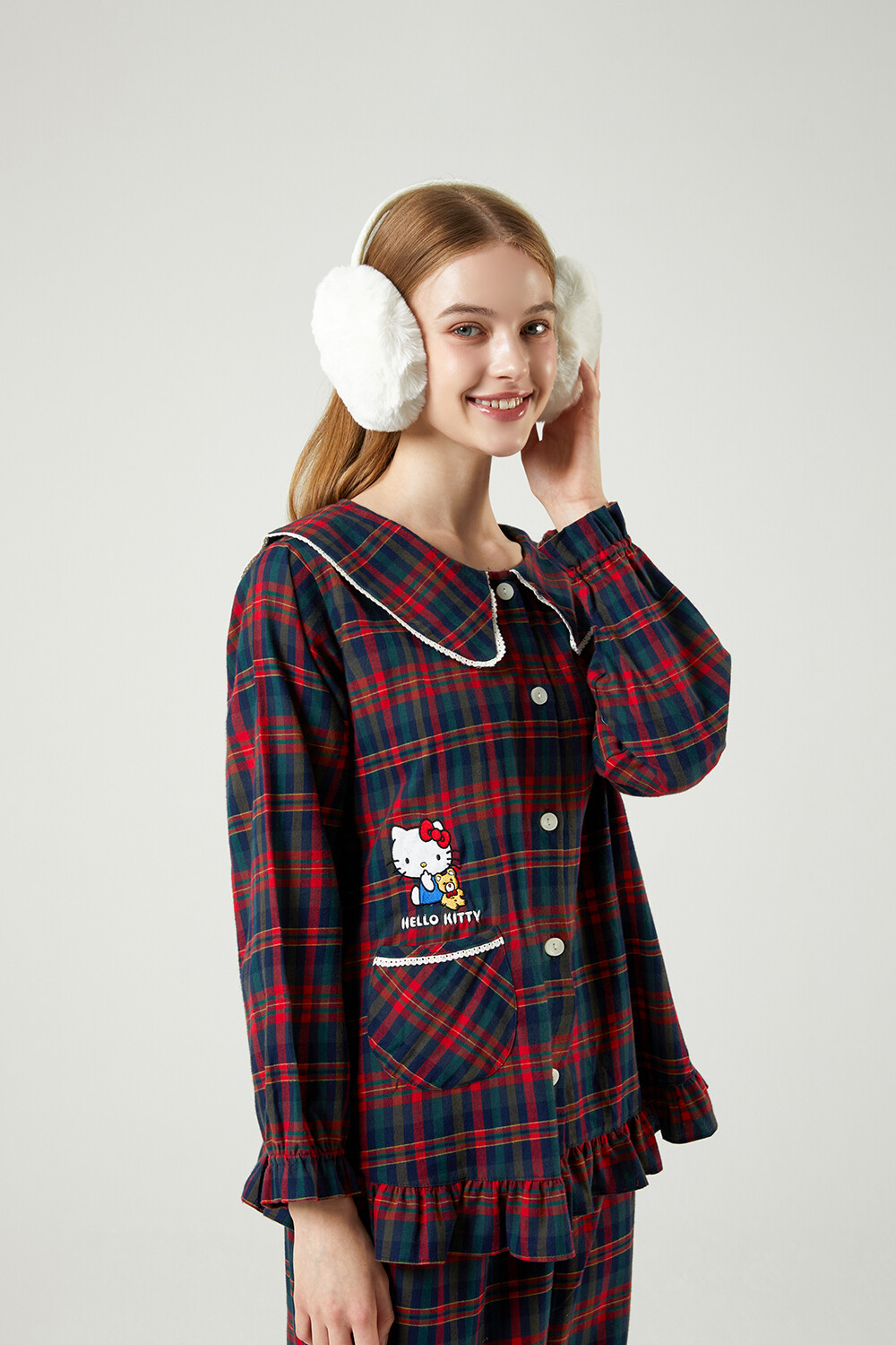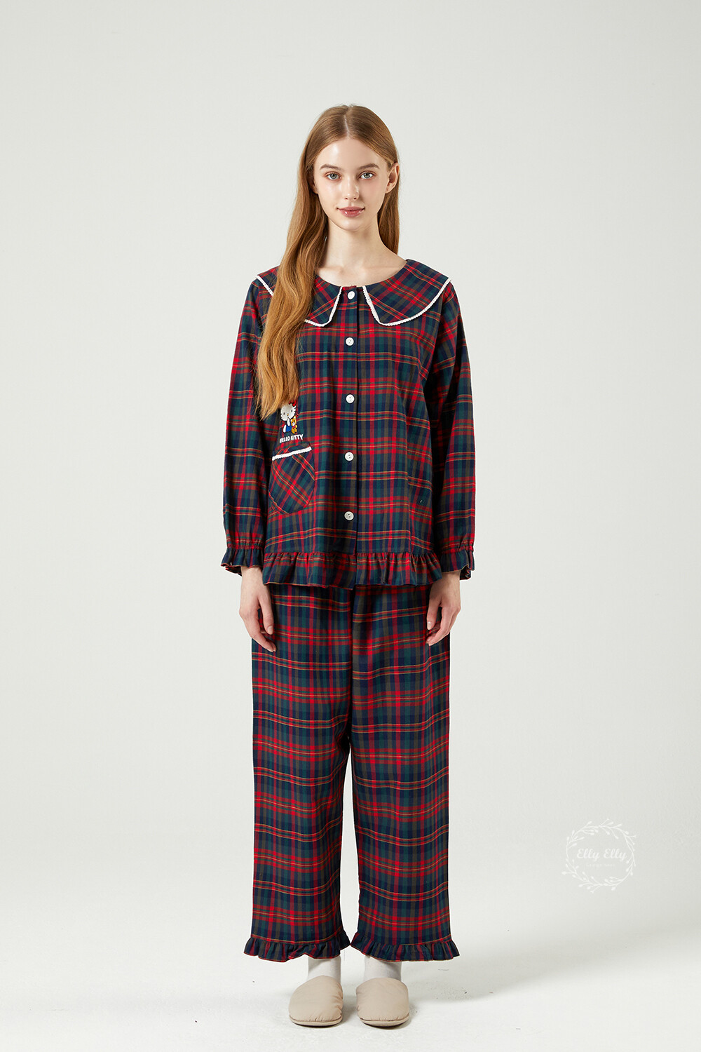 HK-4554 산리오정품 헬로키티 기모 자수 체크무늬 긴팔상하 투피스