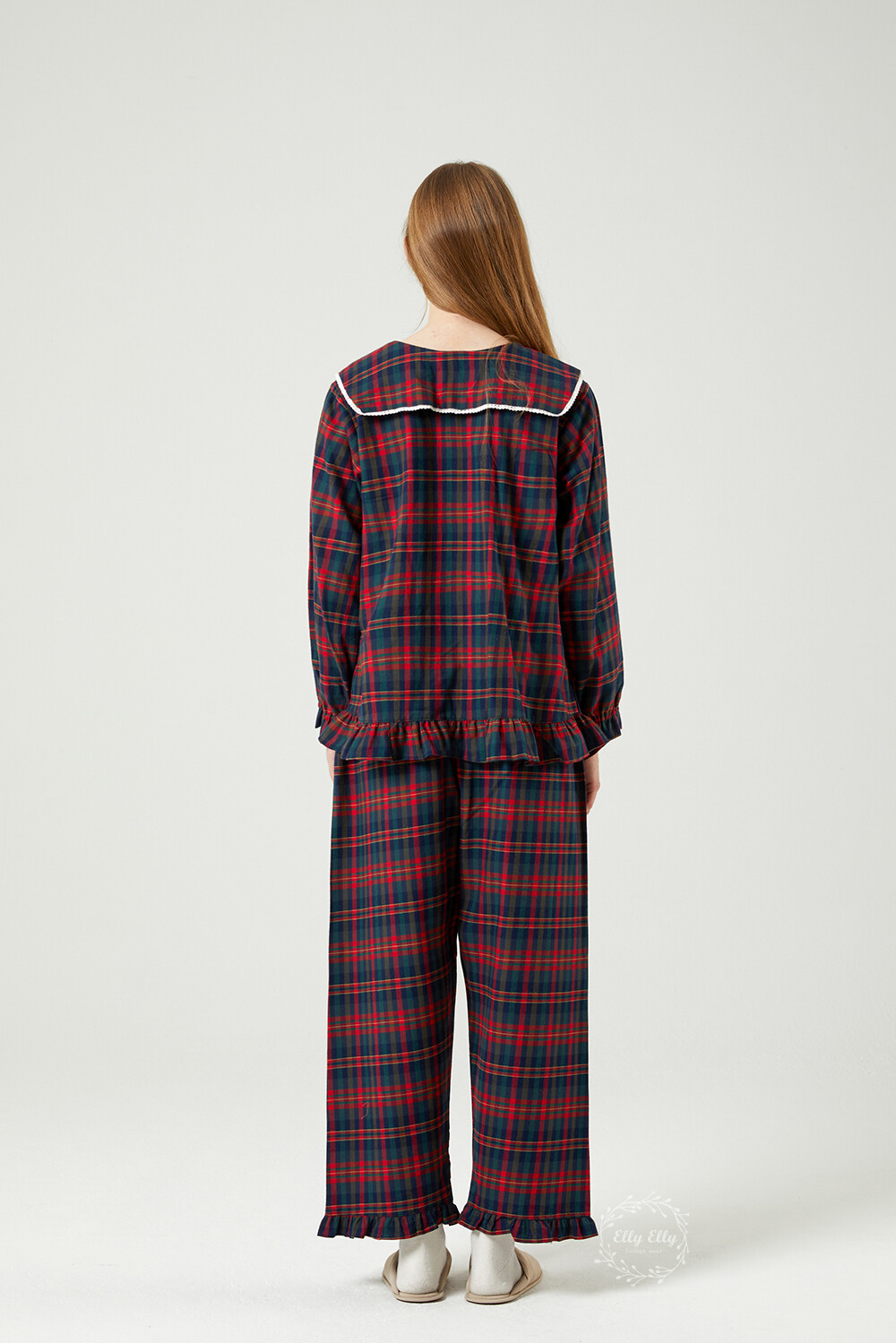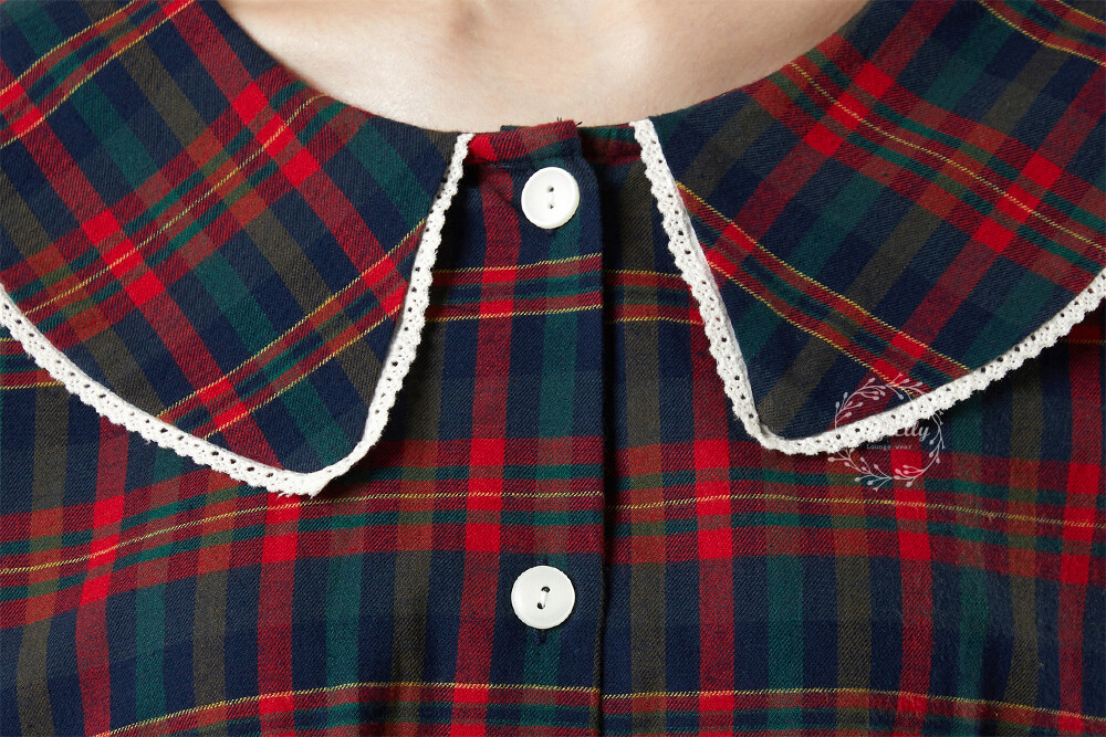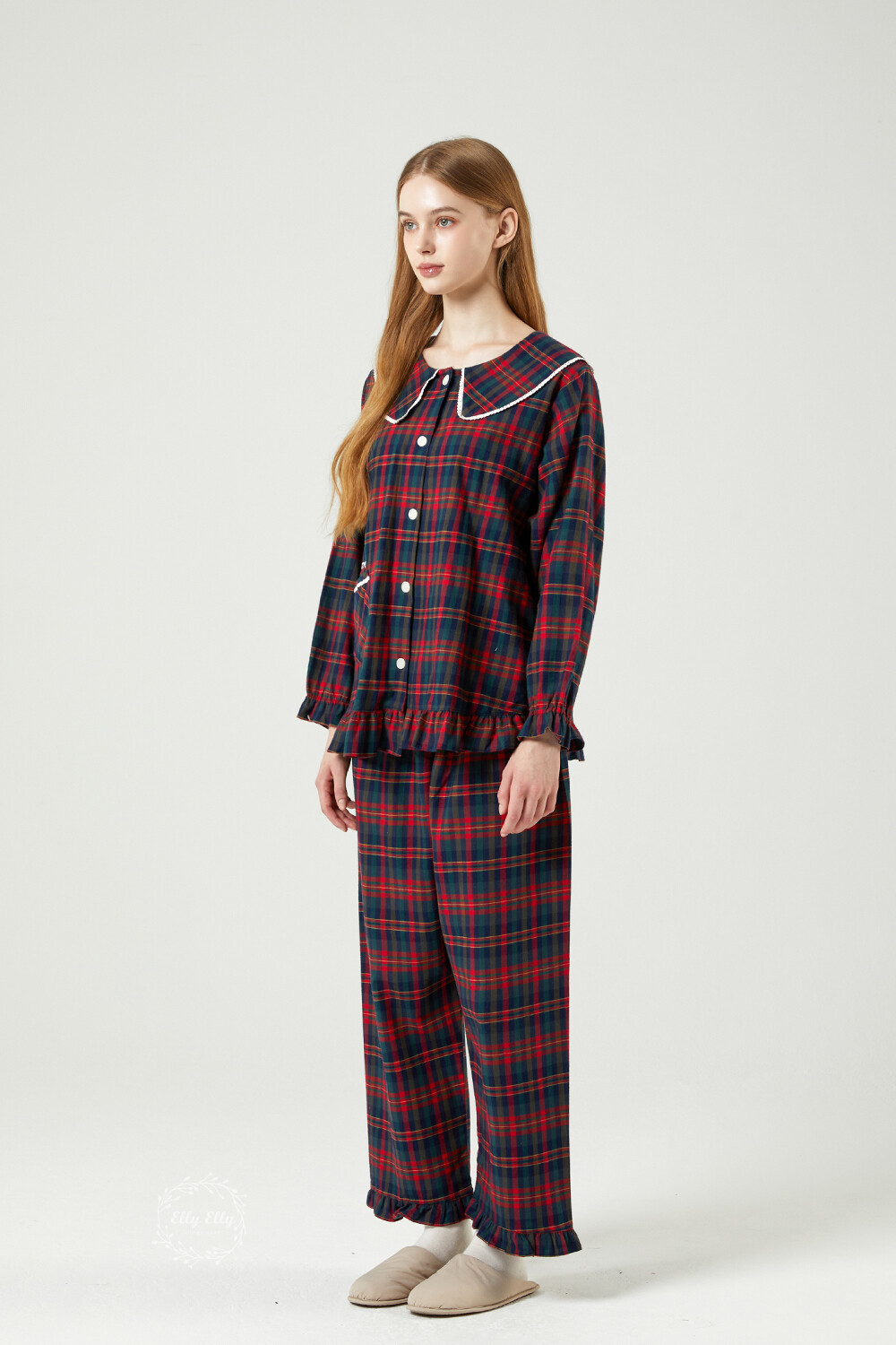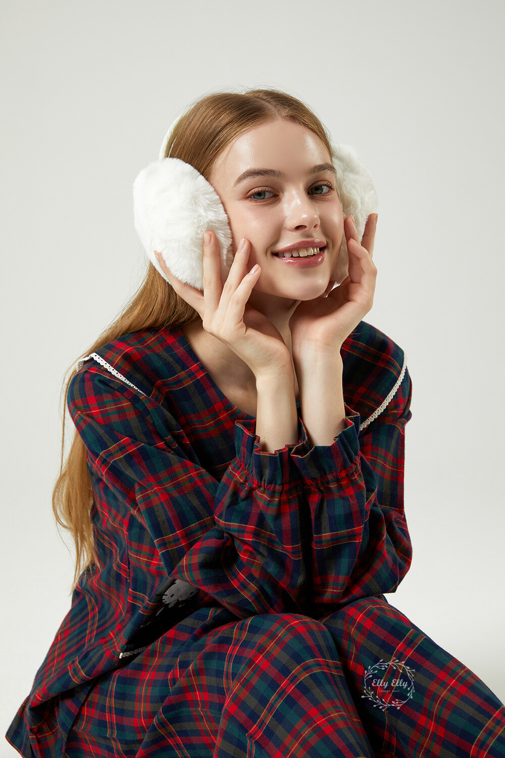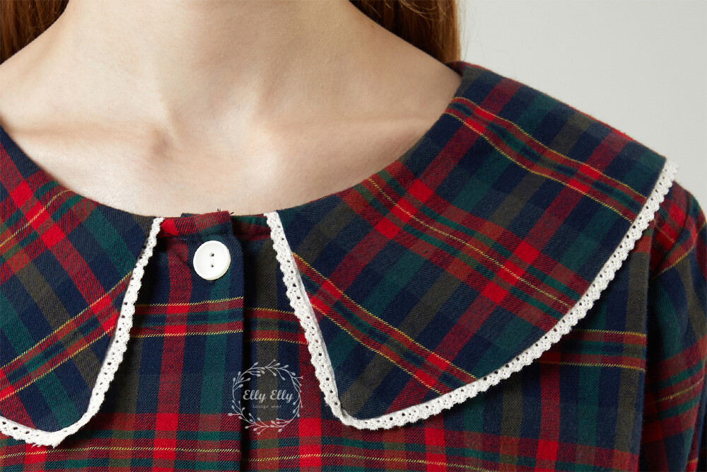 HK-4554 산리오정품 헬로키티 기모 자수 체크무늬 긴팔상하 투피스