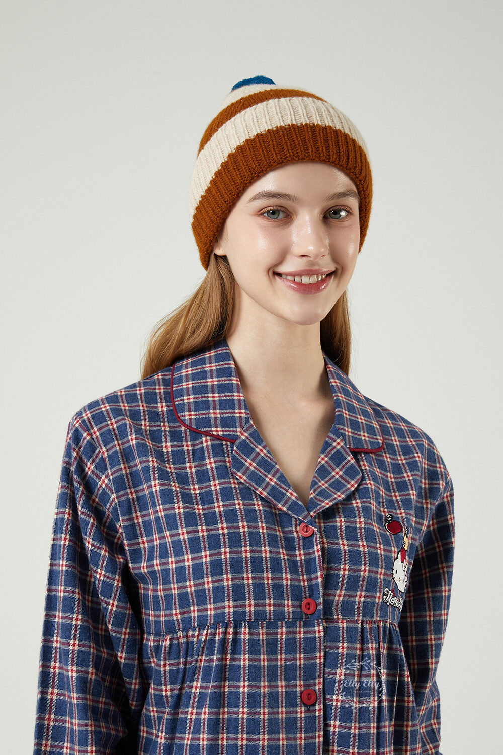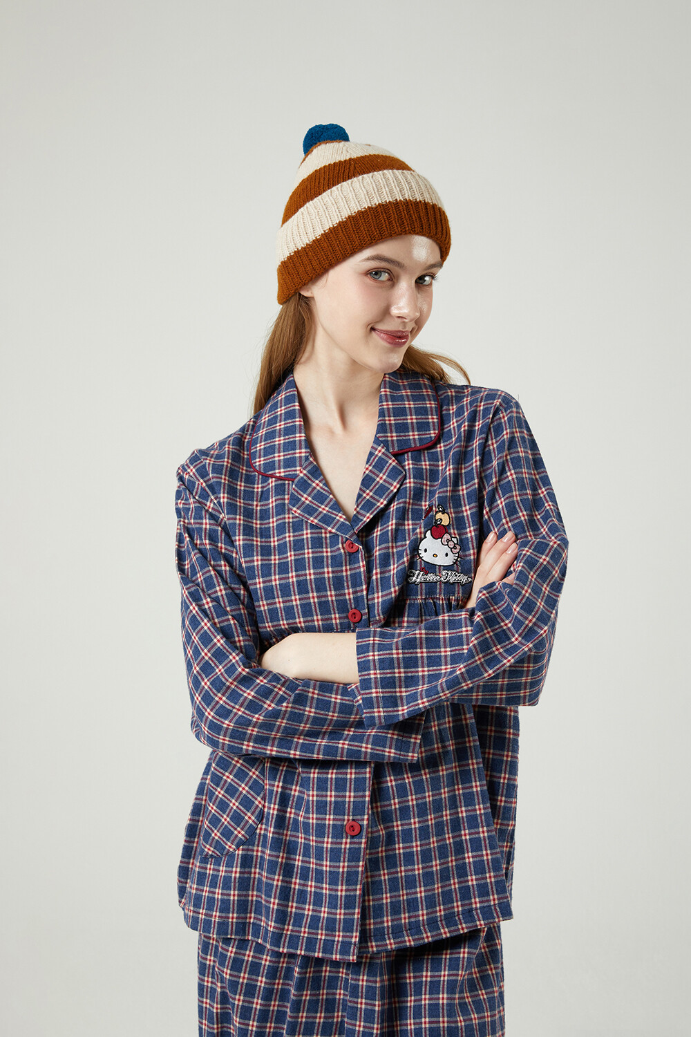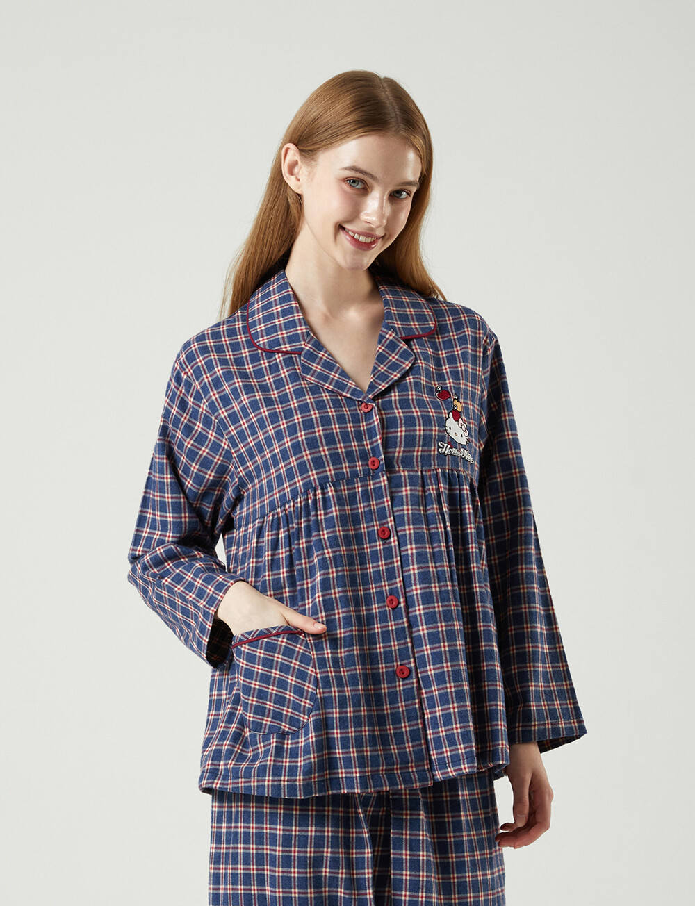 HK-4558 산리오정품 헬로키티 기모 자수 체크무늬 긴팔페어 투피스