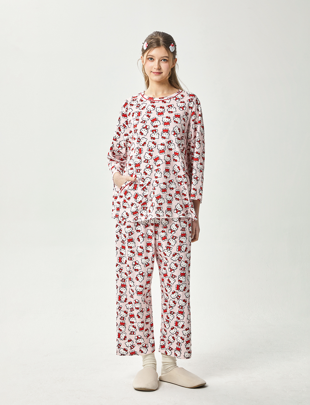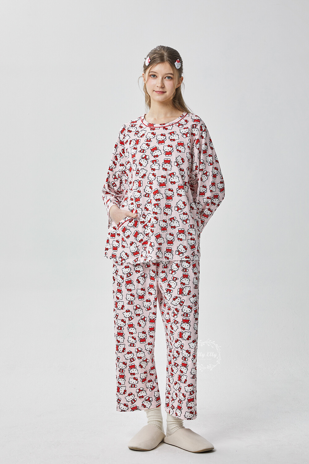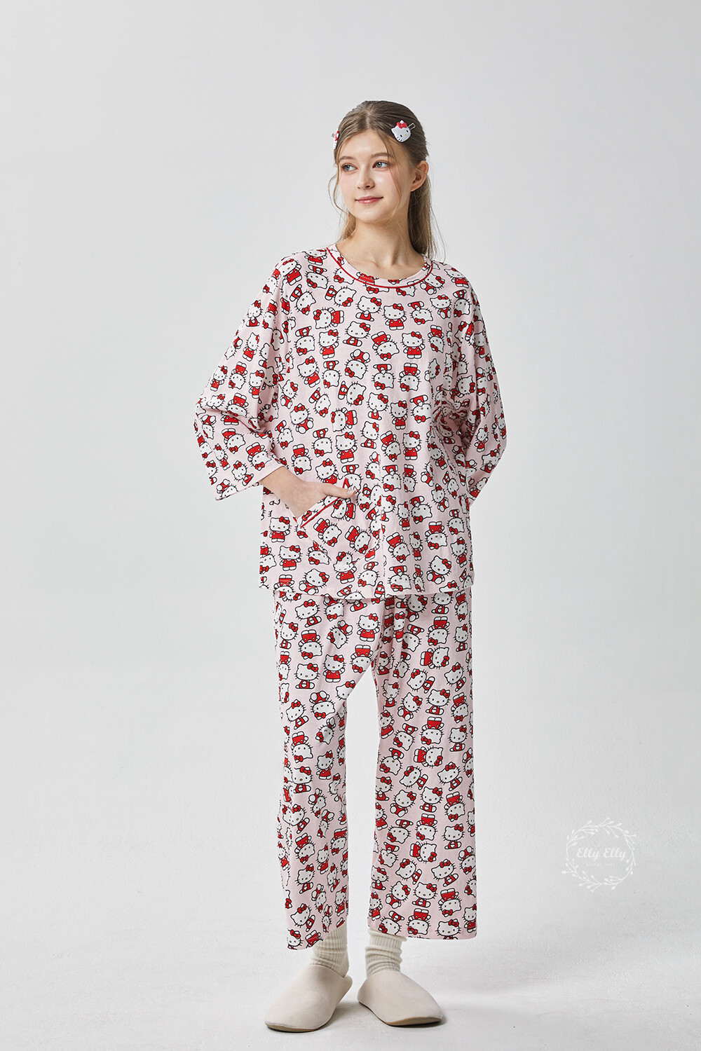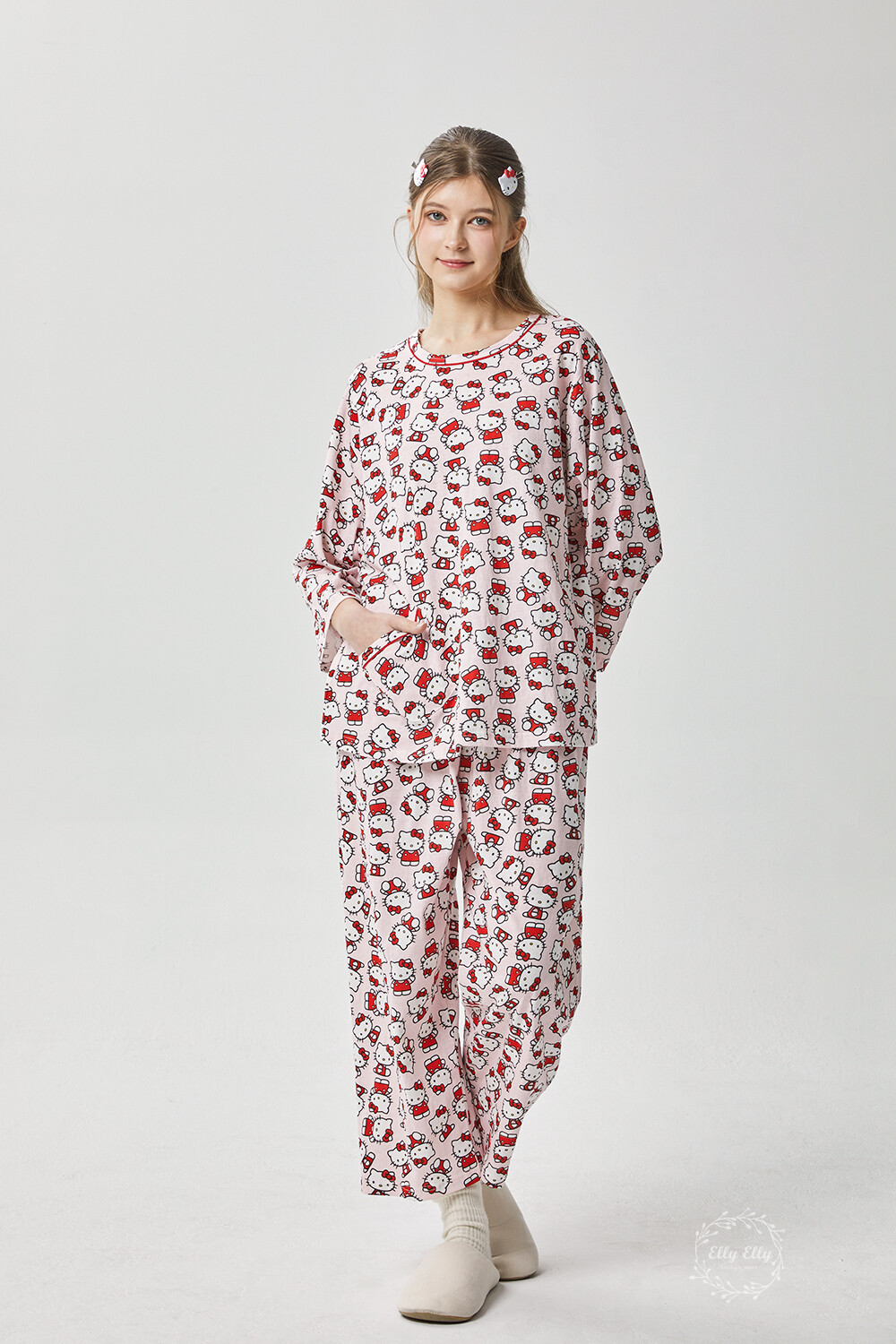 HK-4560 산리오정품 헬로키티 다이마루 긴팔상하 투피스