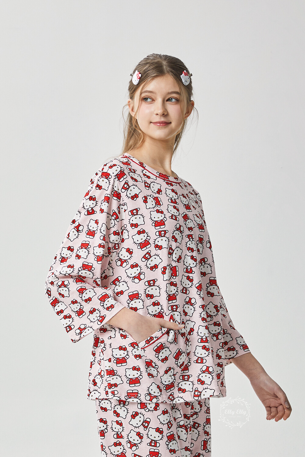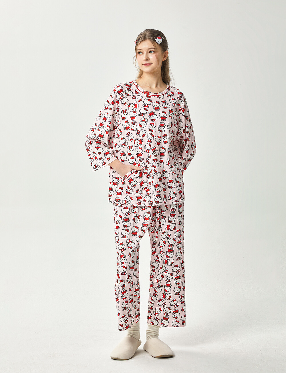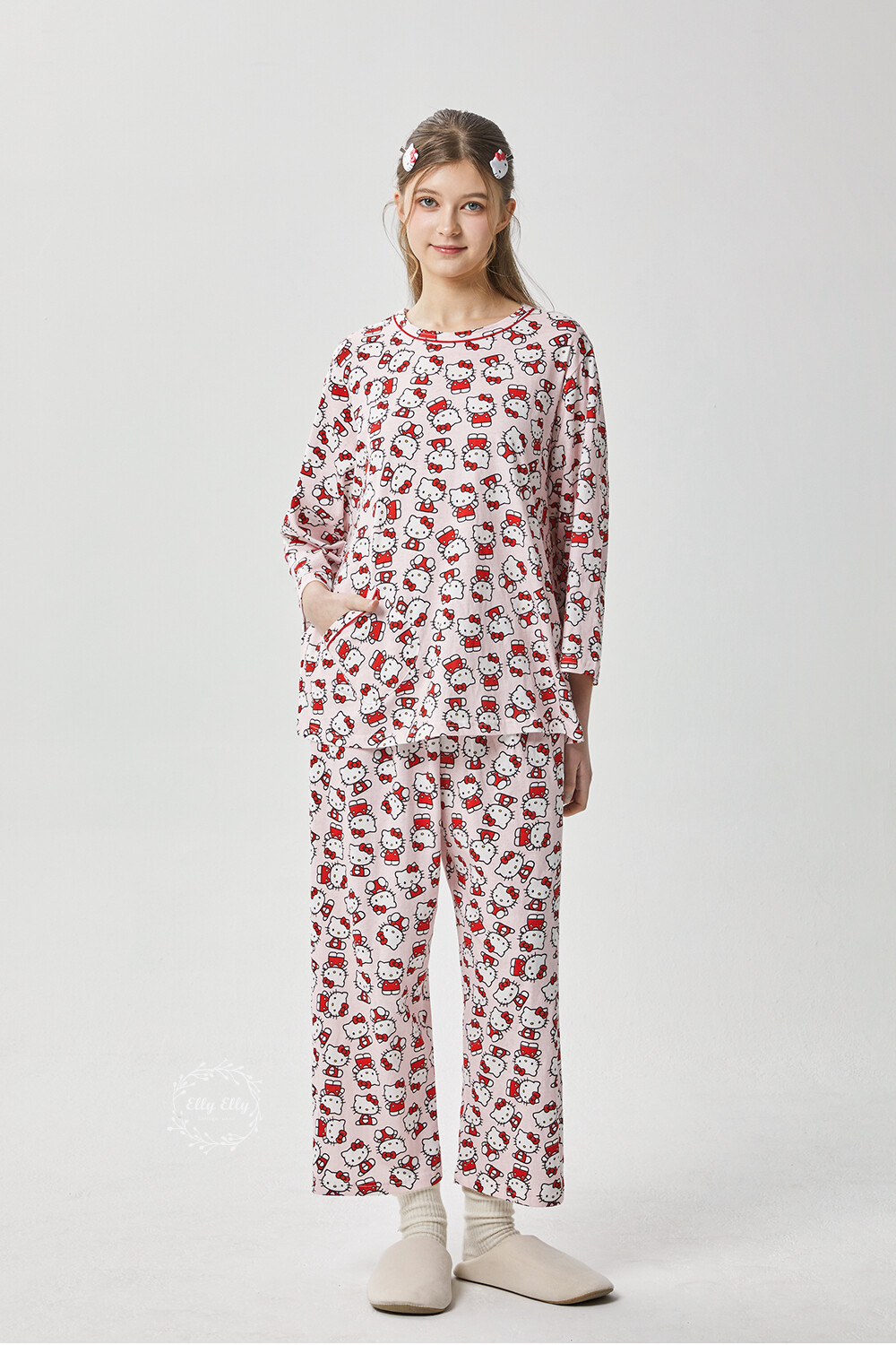 HK-4560 산리오정품 헬로키티 다이마루 긴팔상하 투피스