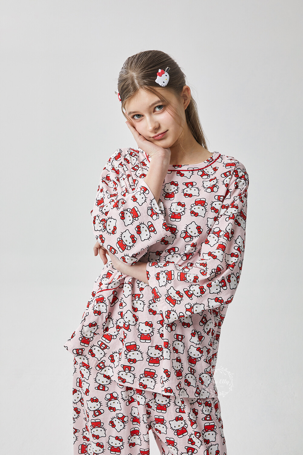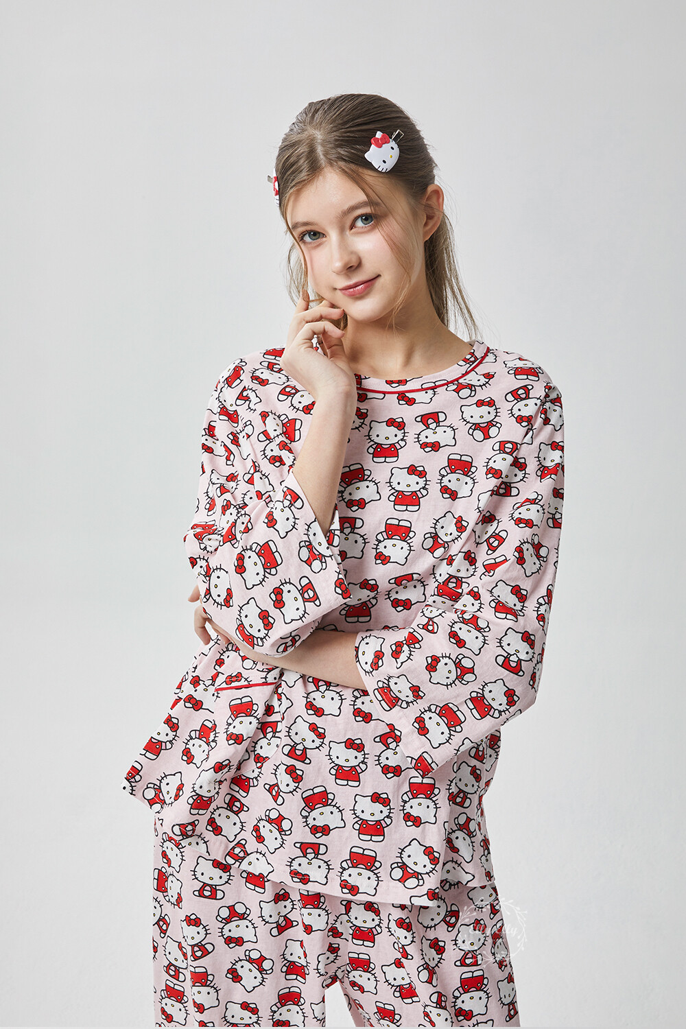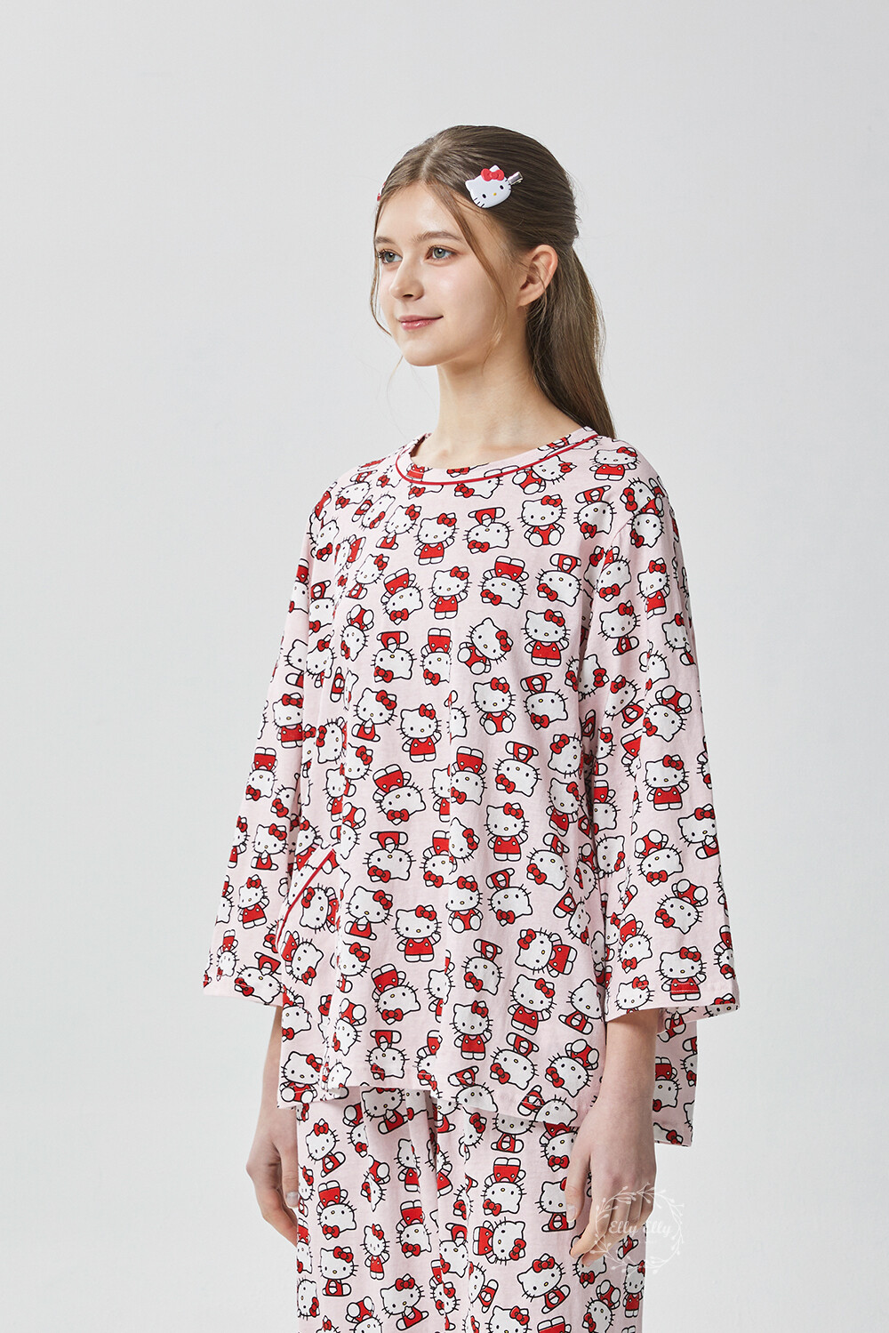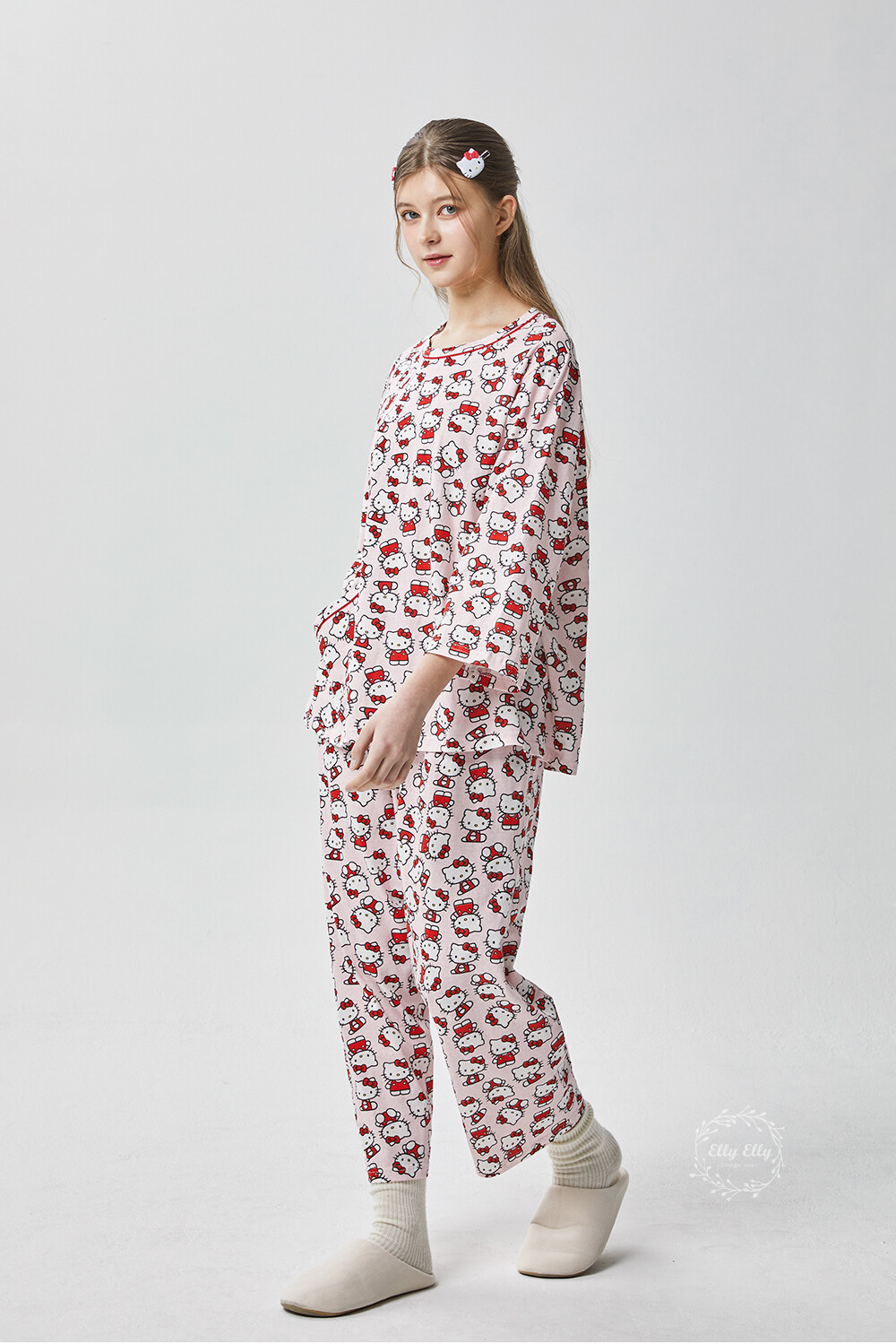 HK-4560 산리오정품 헬로키티 다이마루 긴팔상하 투피스