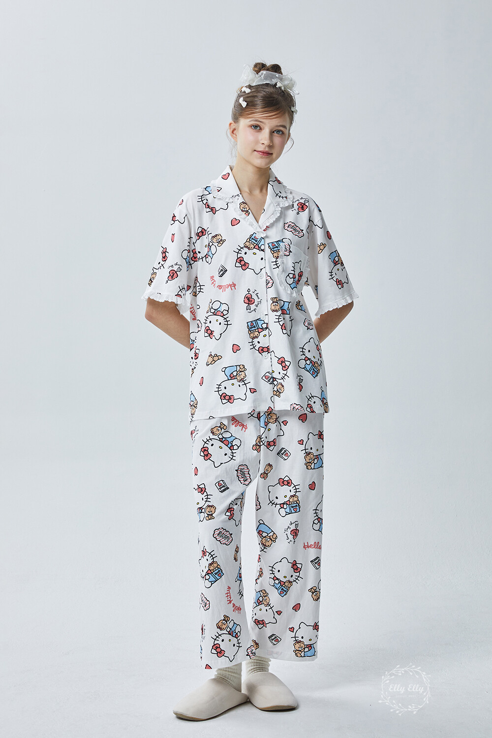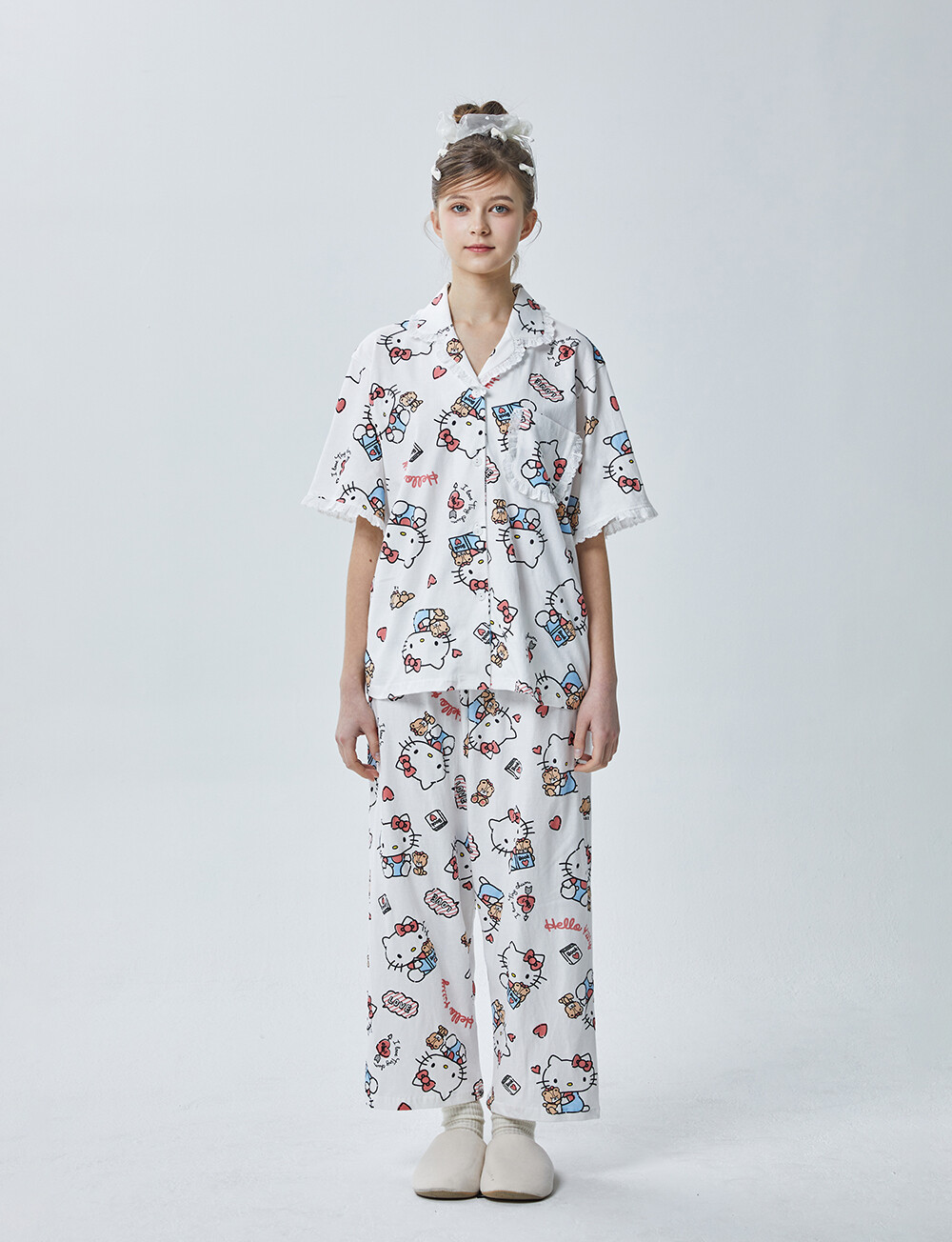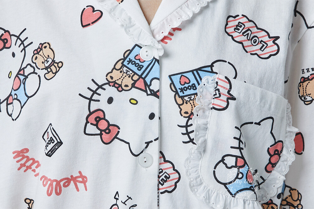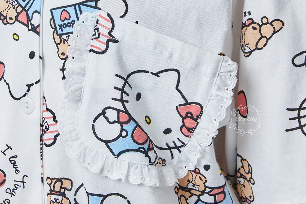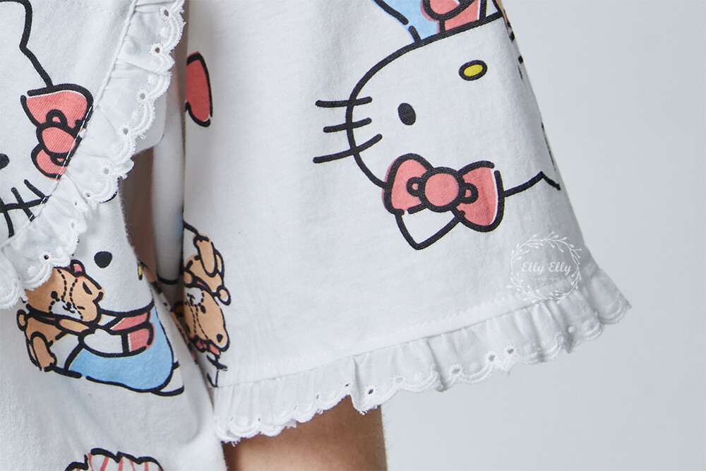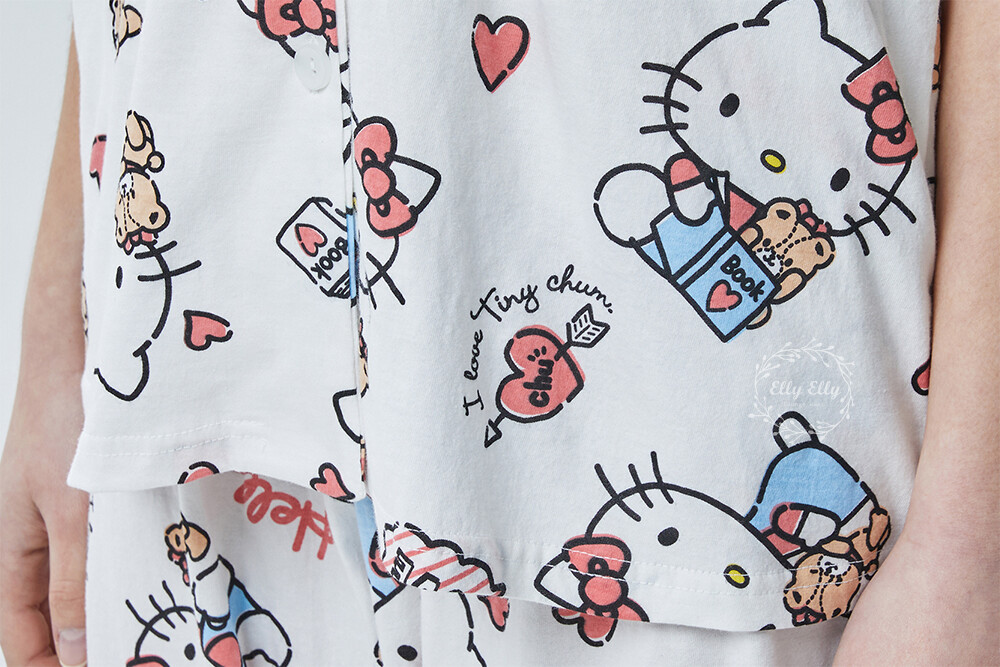 HK-4600 산리오정품 헬로키티 다이마루 반팔+긴바지 잠옷투피스