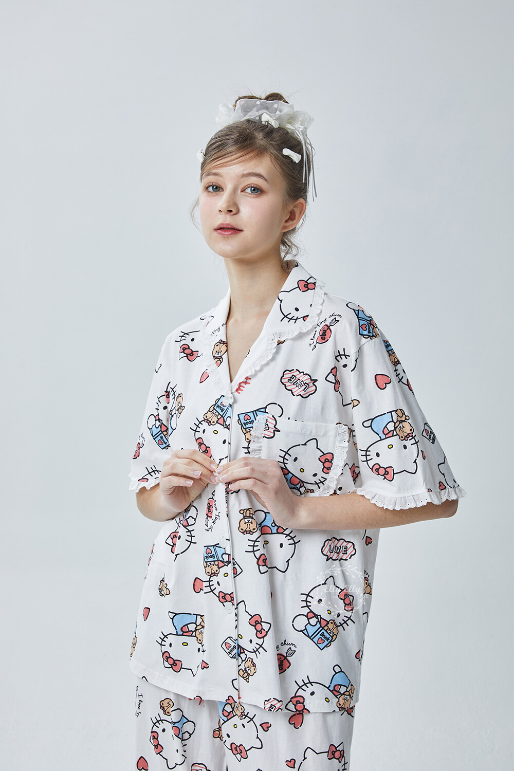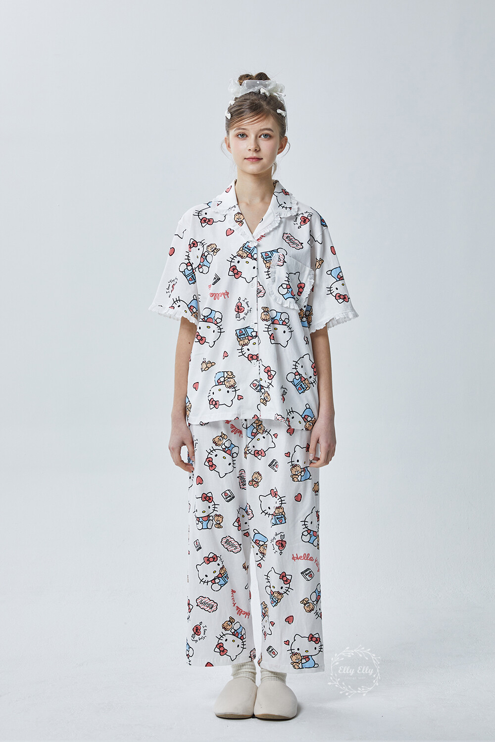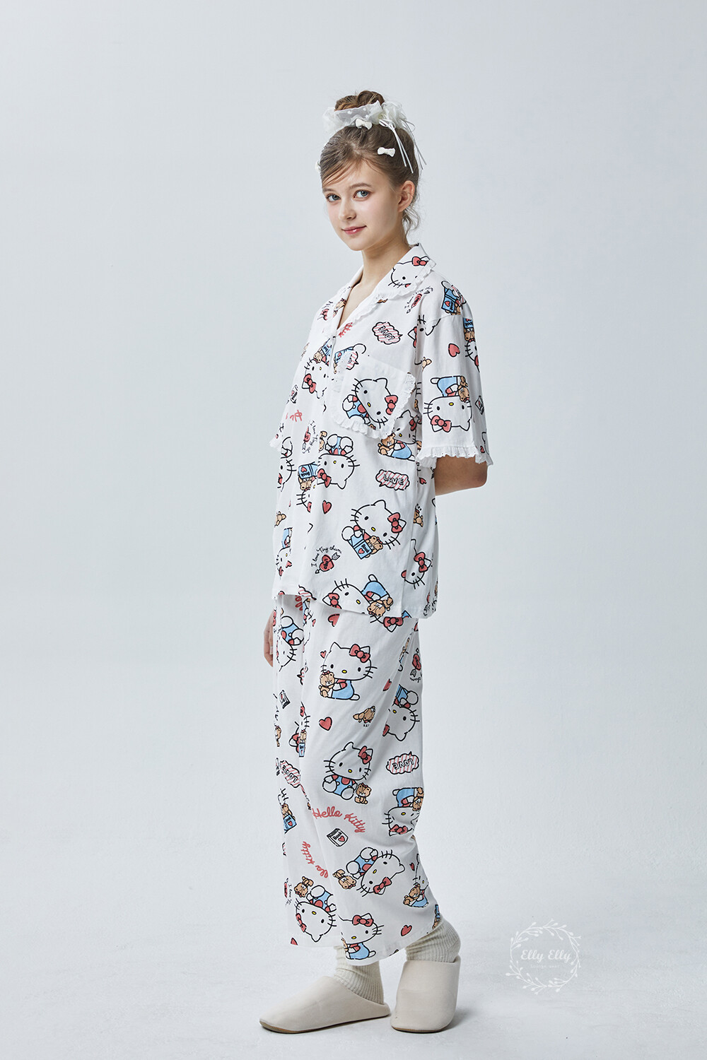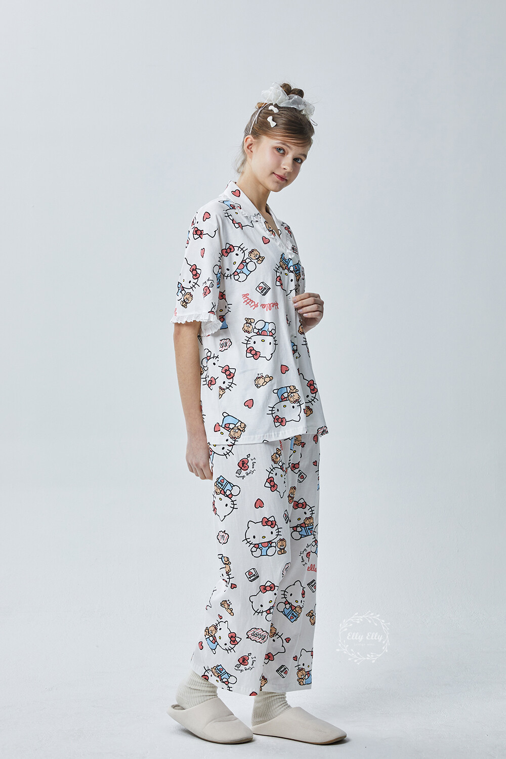 HK-4600 산리오정품 헬로키티 다이마루 반팔+긴바지 잠옷투피스