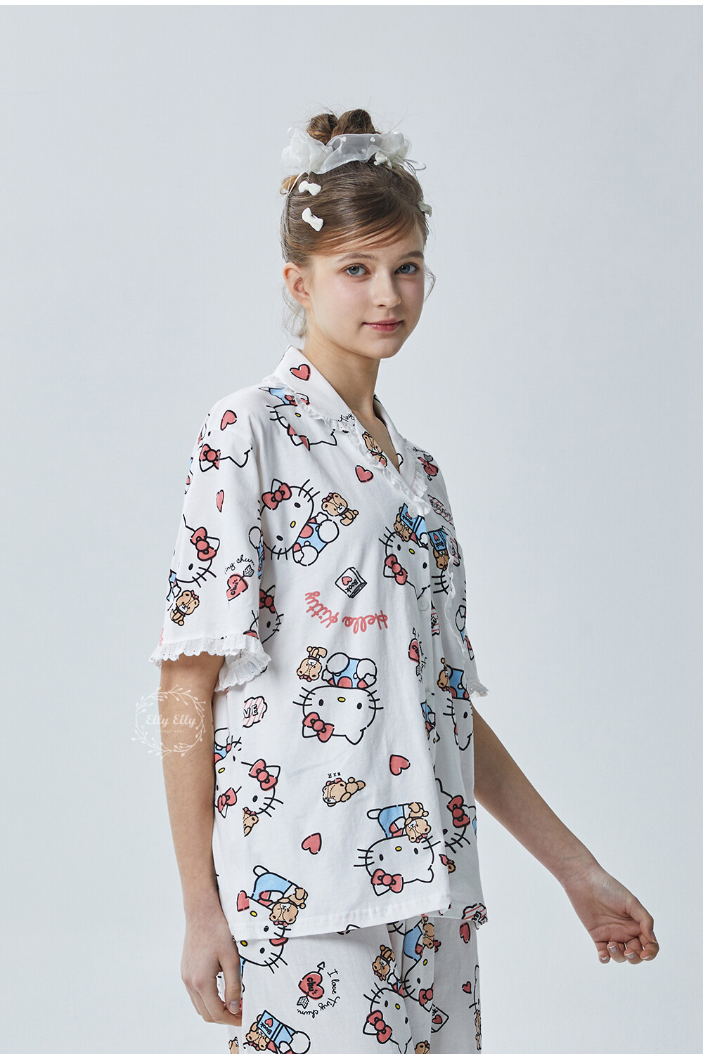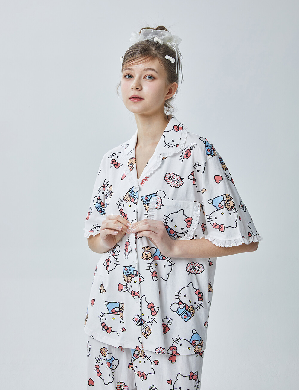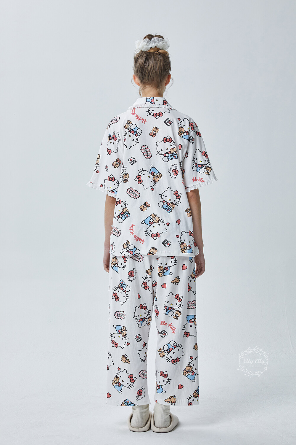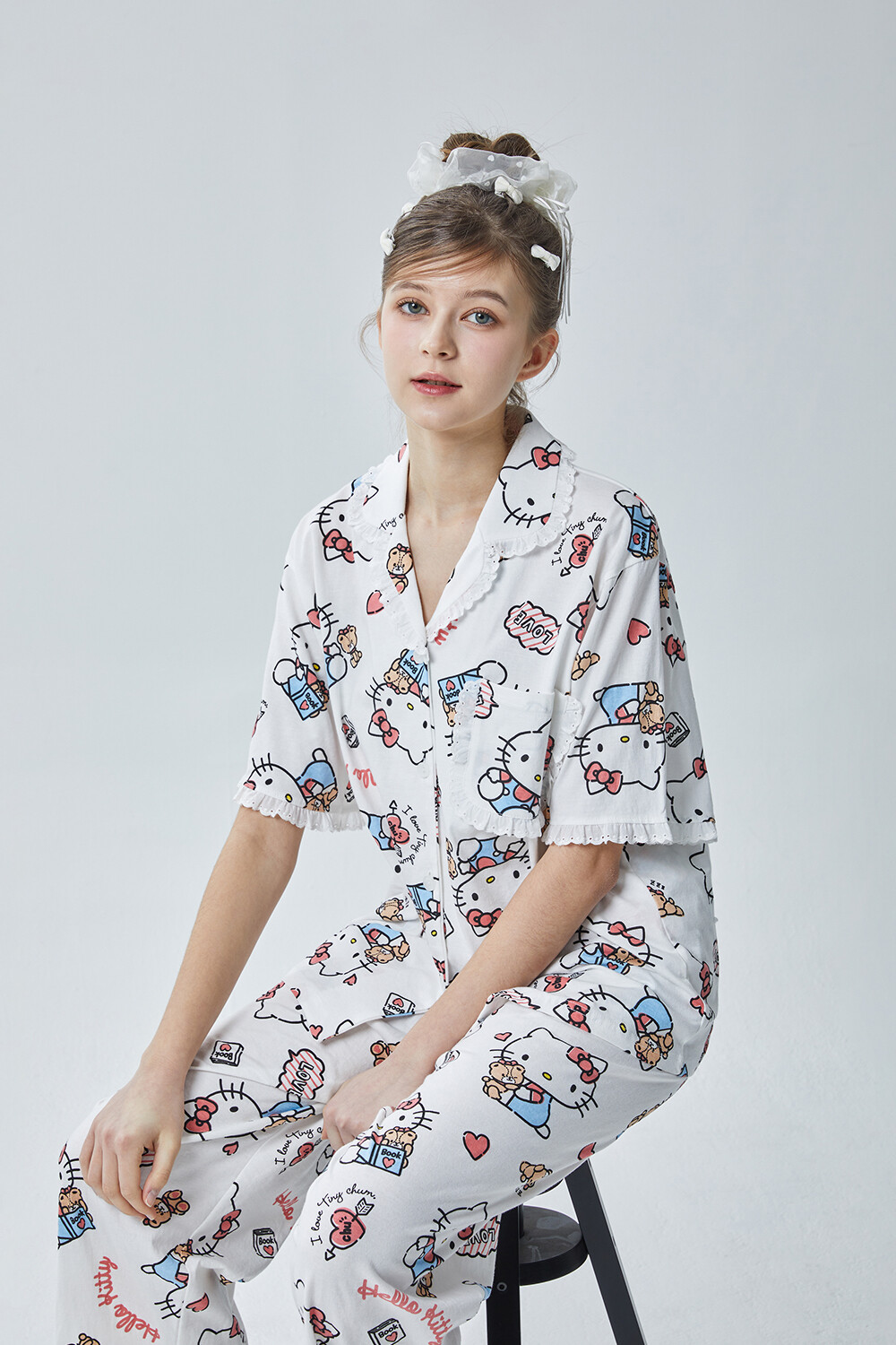 HK-4600 산리오정품 헬로키티 다이마루 반팔+긴바지 잠옷투피스