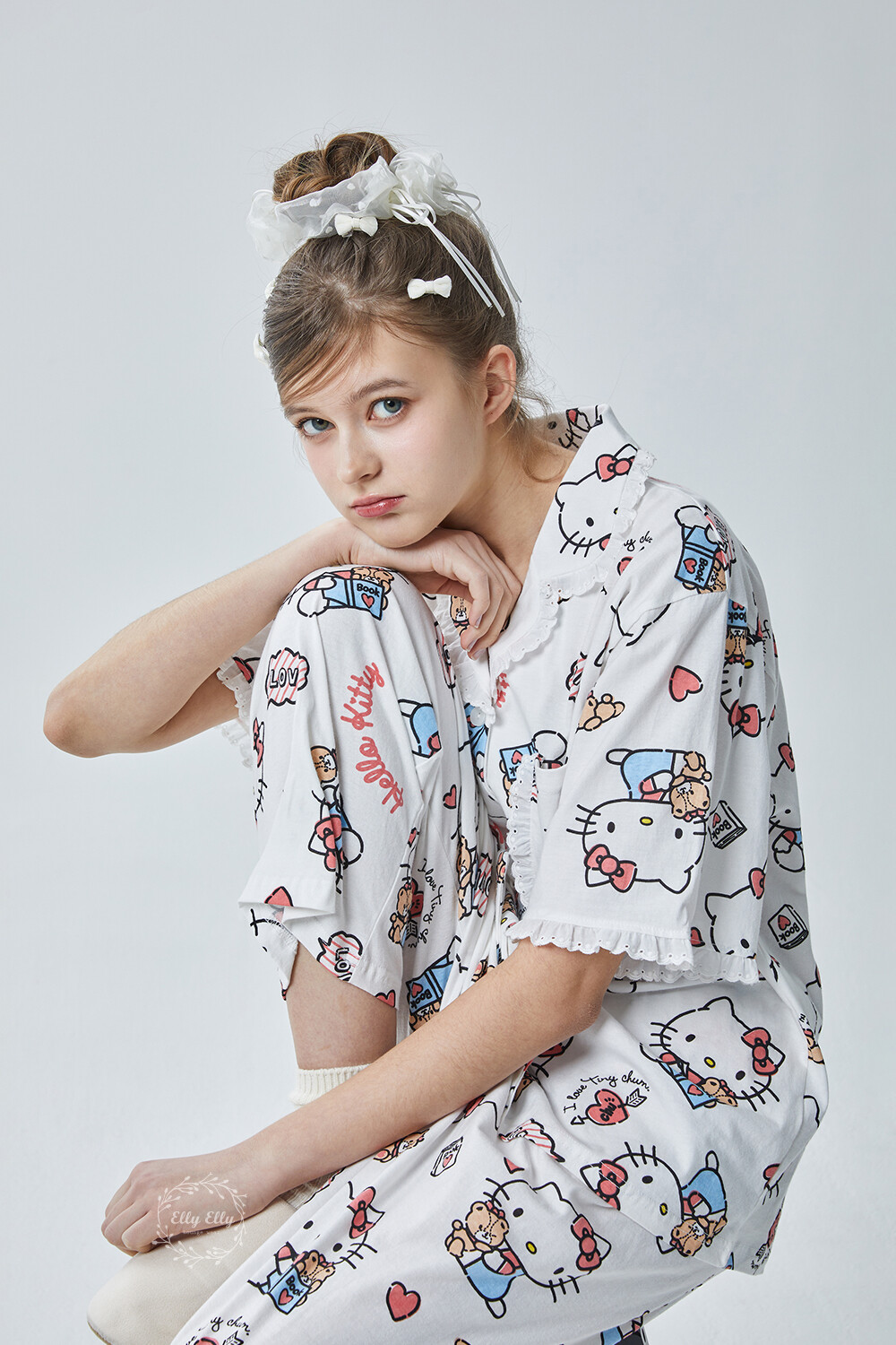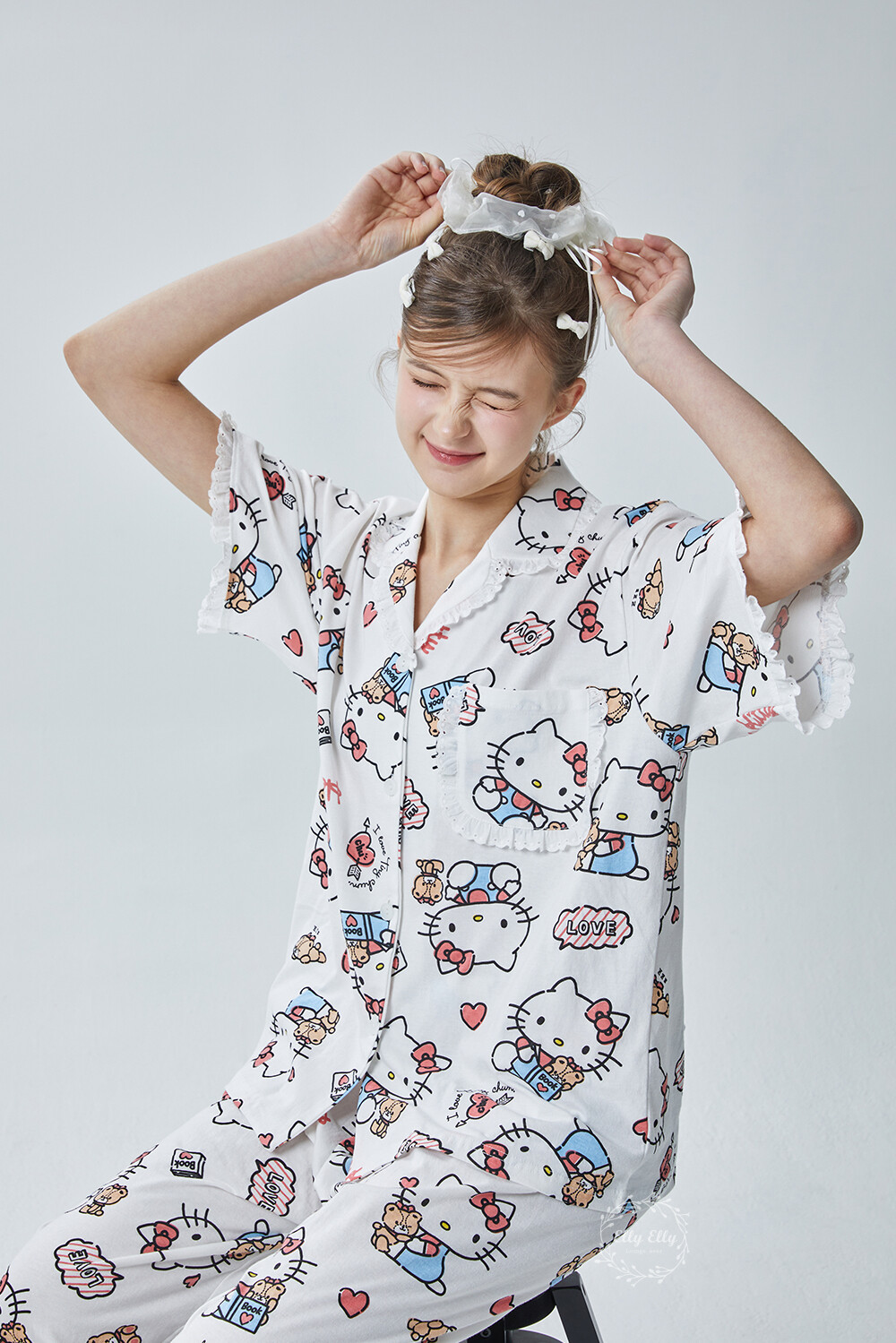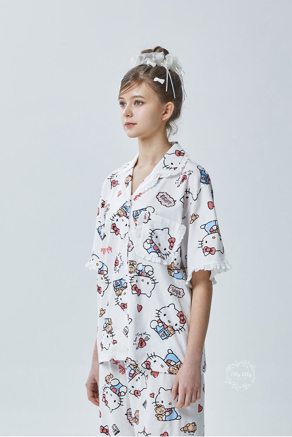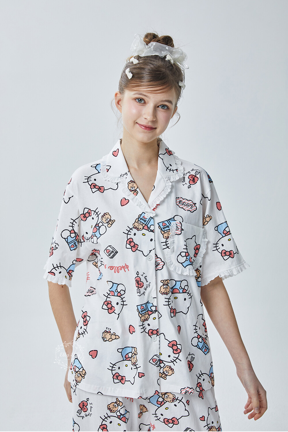 HK-4600 산리오정품 헬로키티 다이마루 반팔+긴바지 잠옷투피스