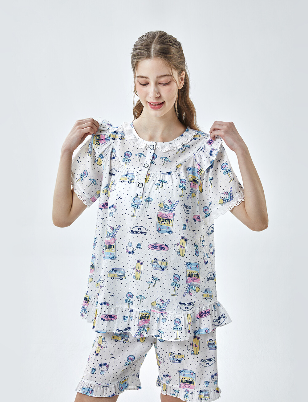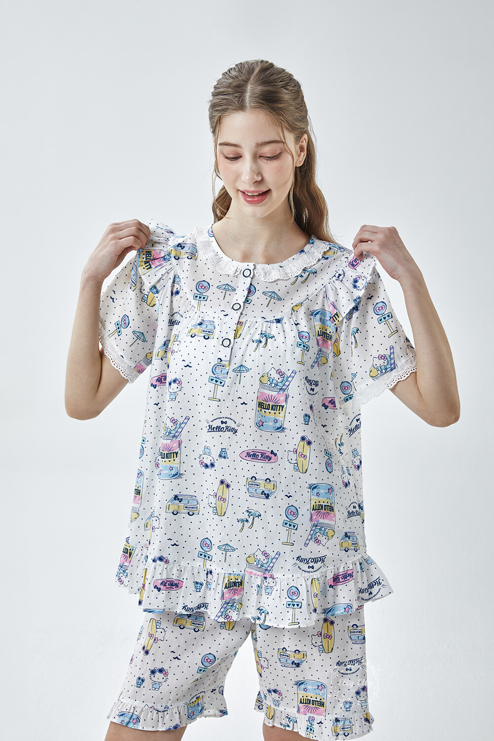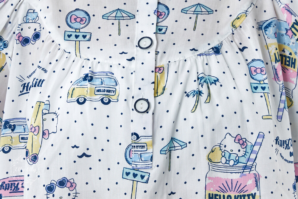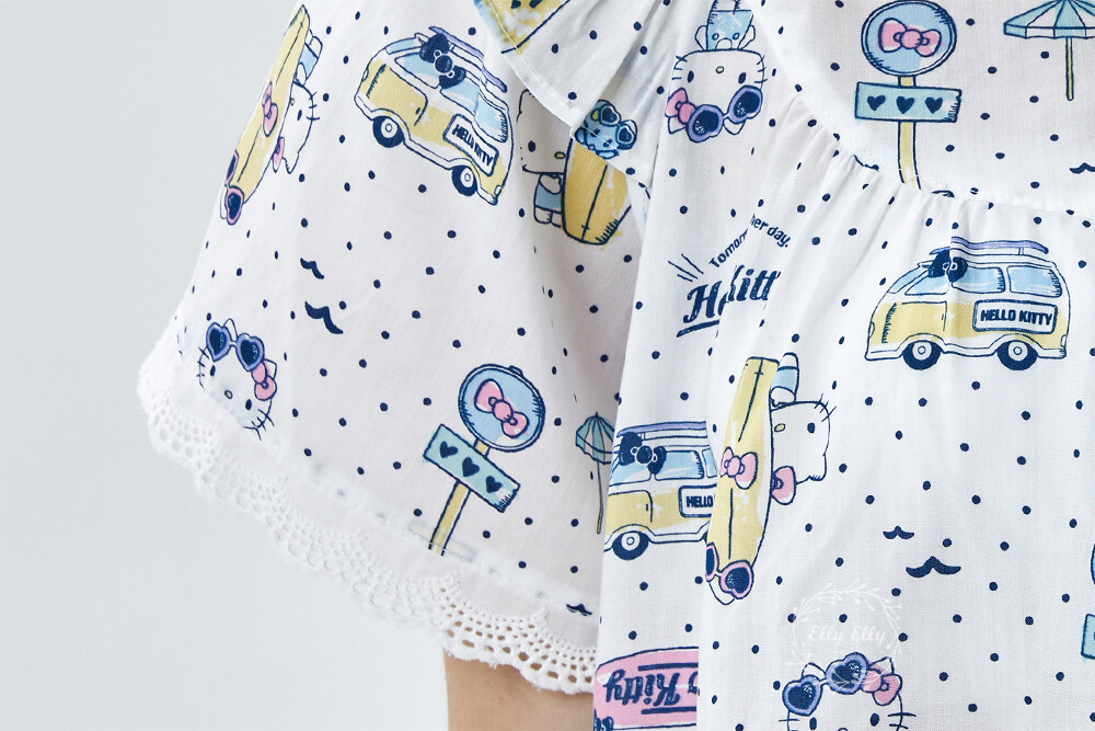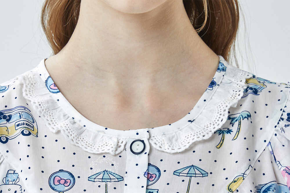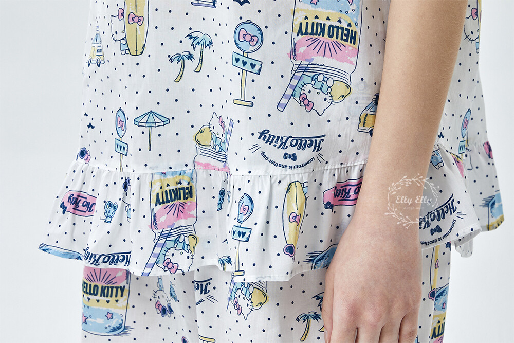 HK-4611 산리오정품 헬로키티 도트무늬 프릴레이스 반팔상하