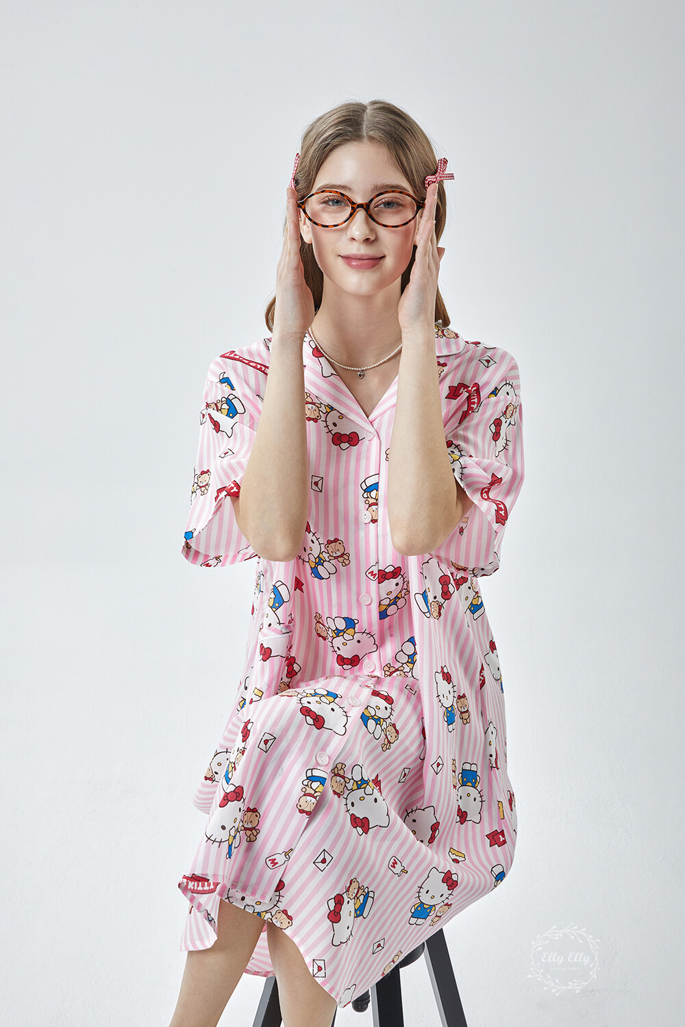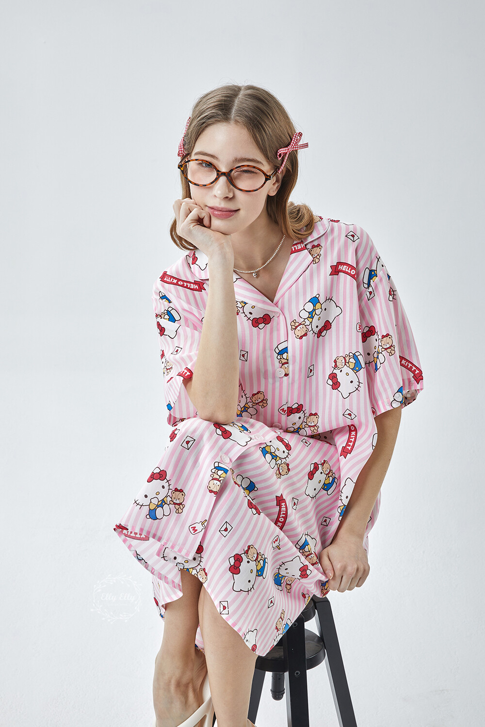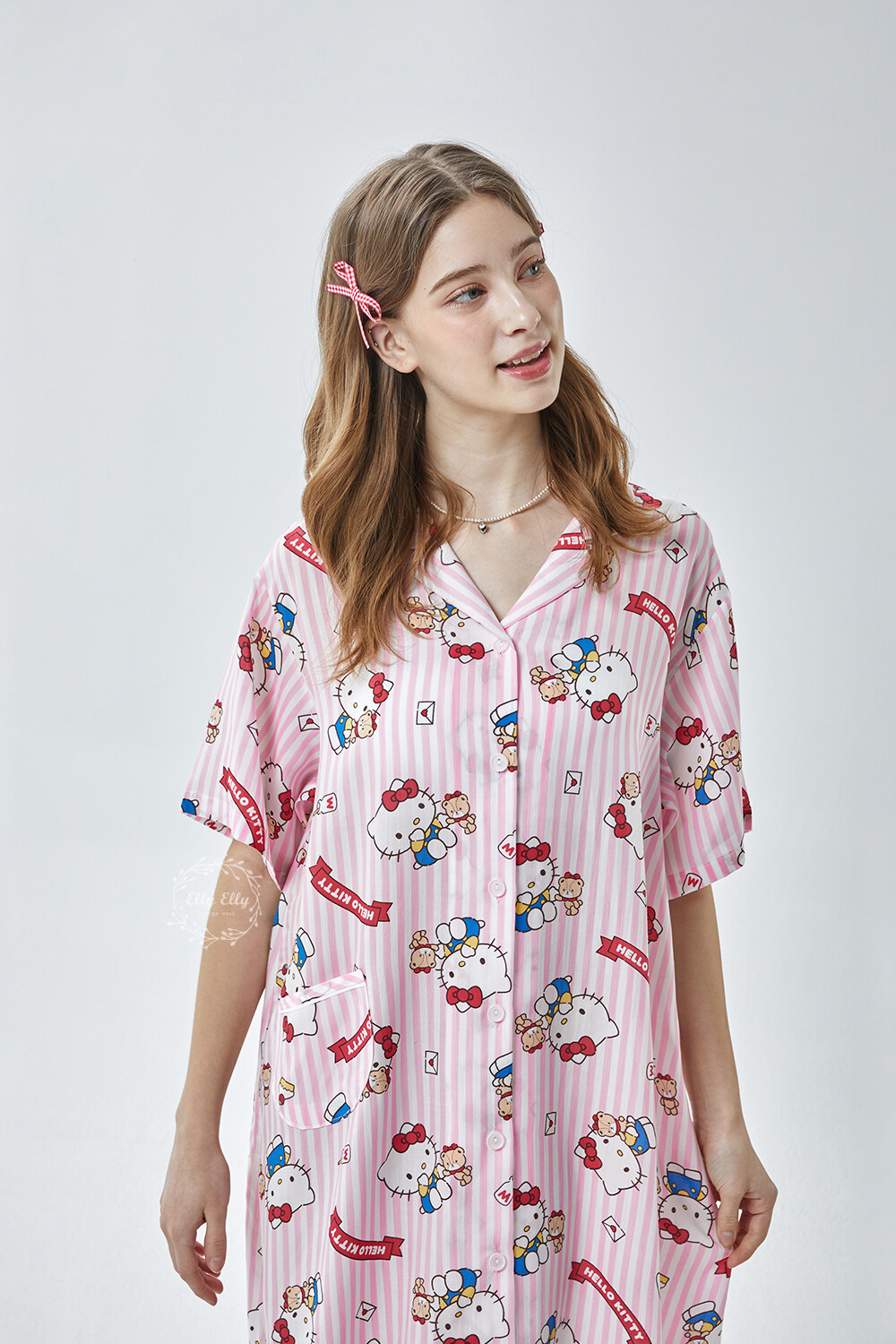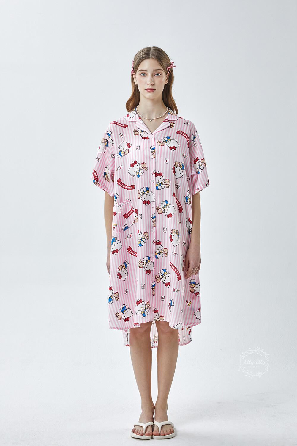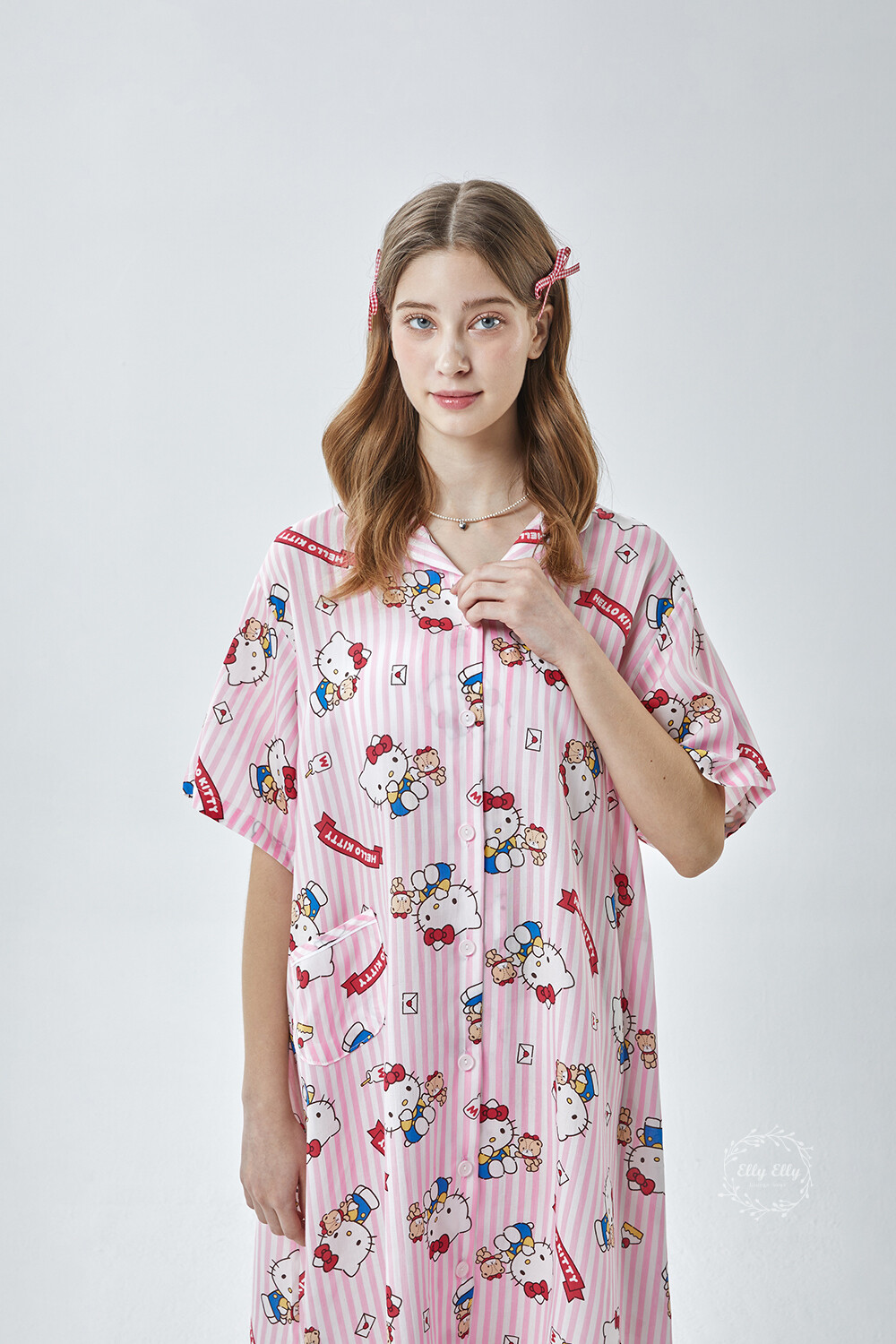 HK-4613 산리오정품 헬로키티 스트라이프 반팔드레서 원피스