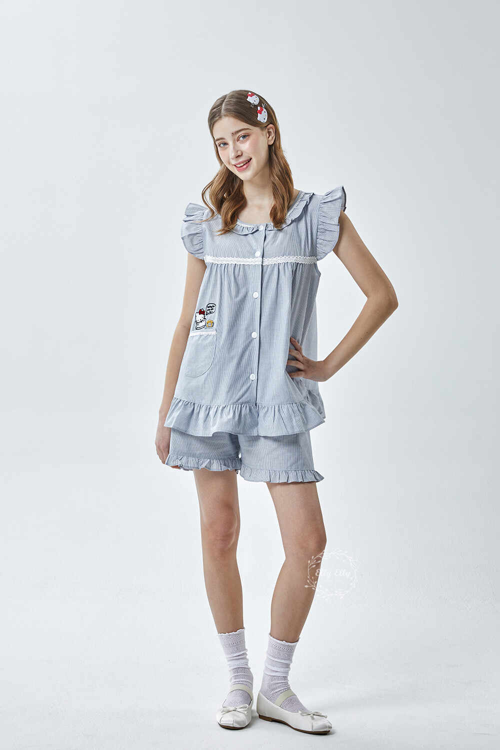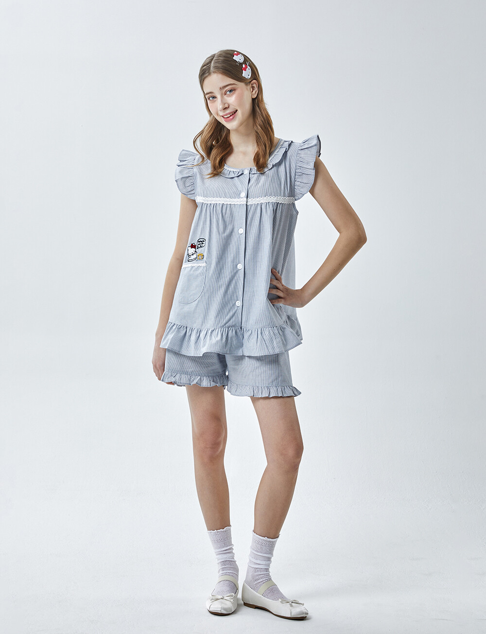 HK-4619 산리오정품 헬로키티 자수 민소매상하 투피스