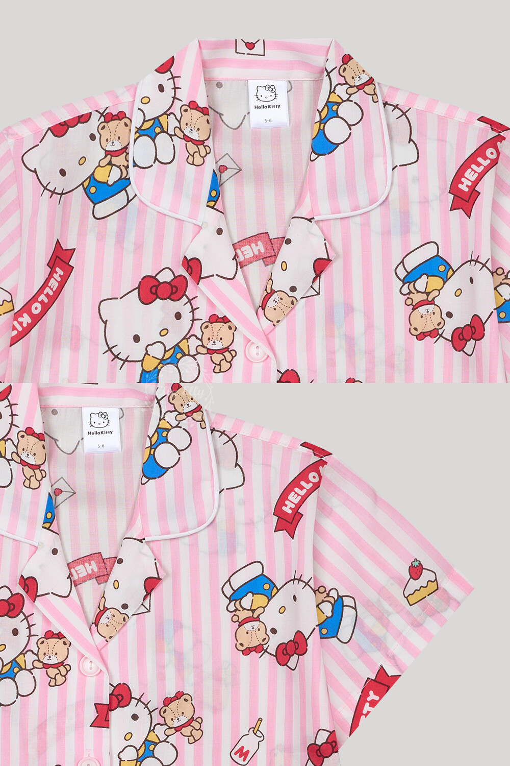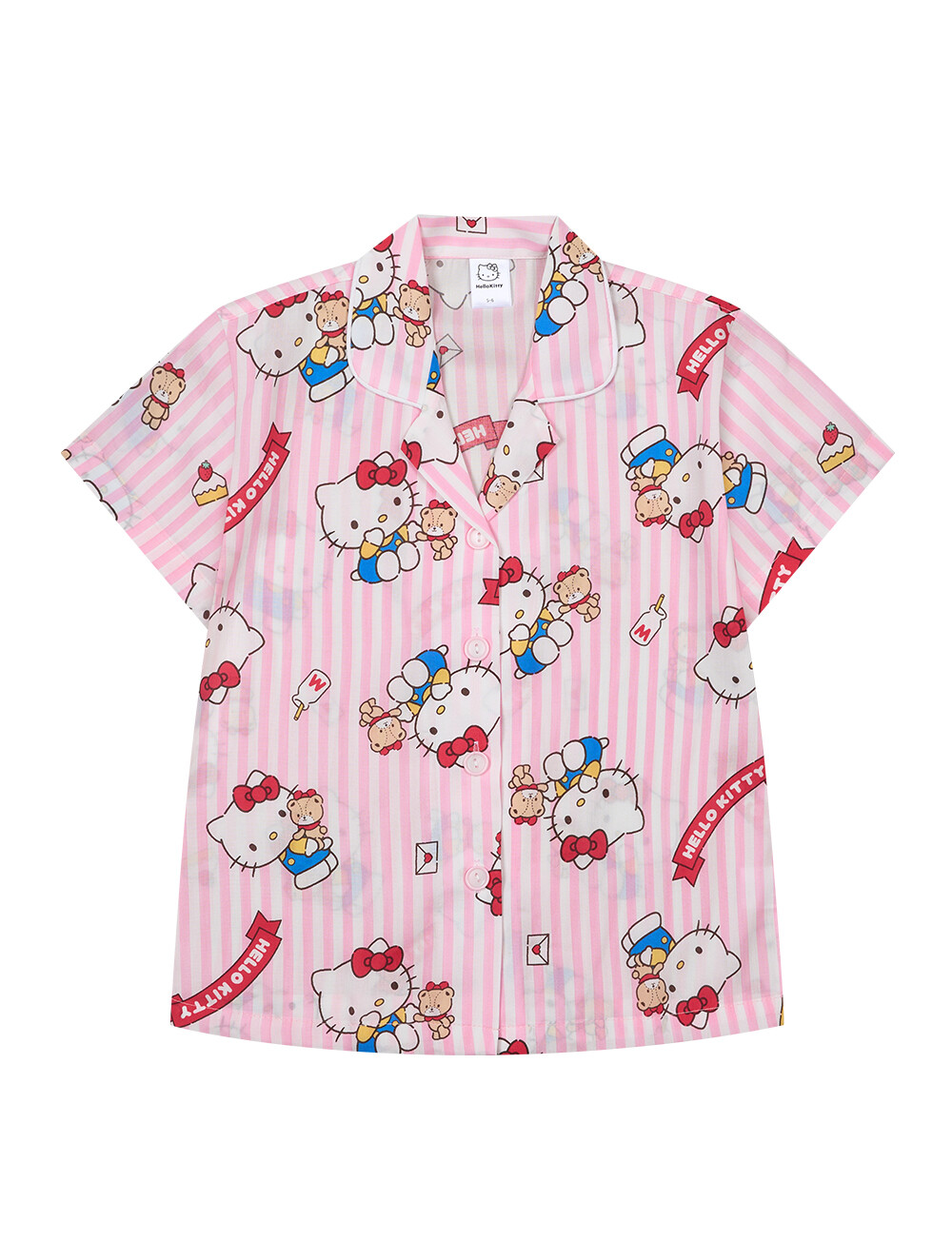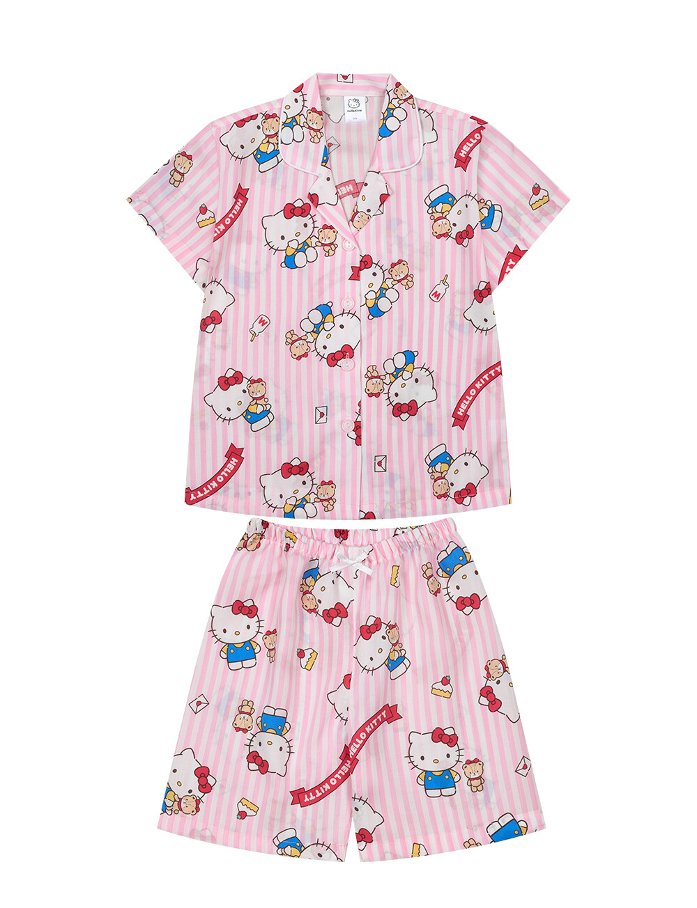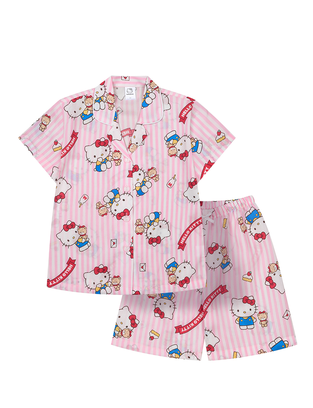 산리오정품 곰인형키티 여자아이 와이카라 반팔상하 투피스