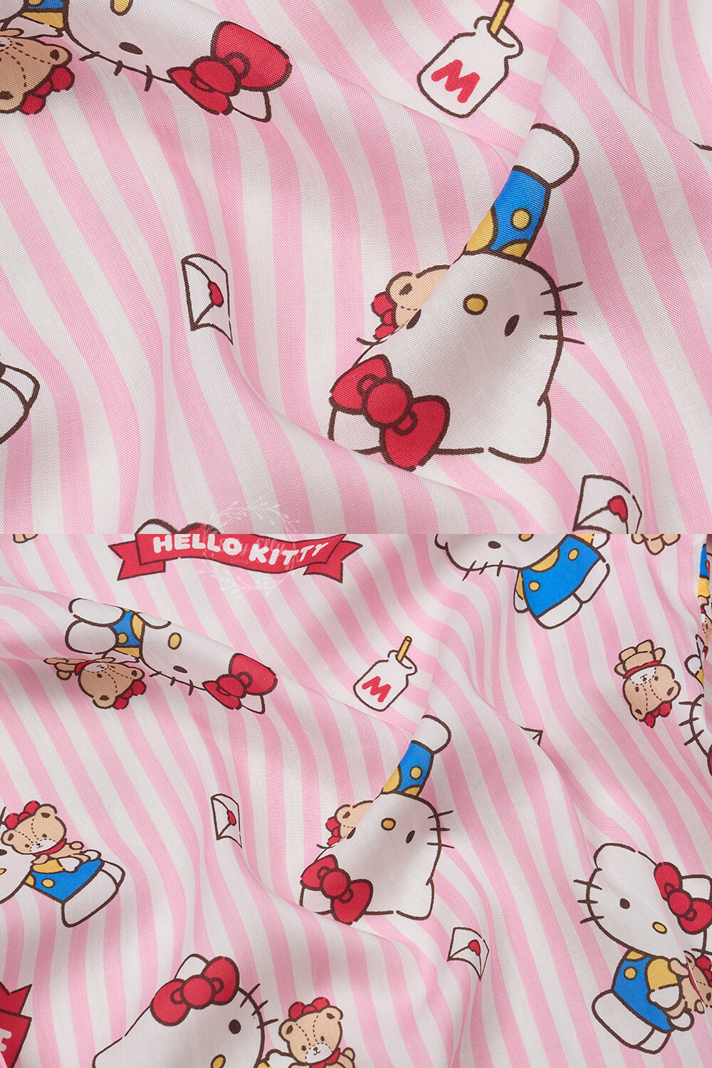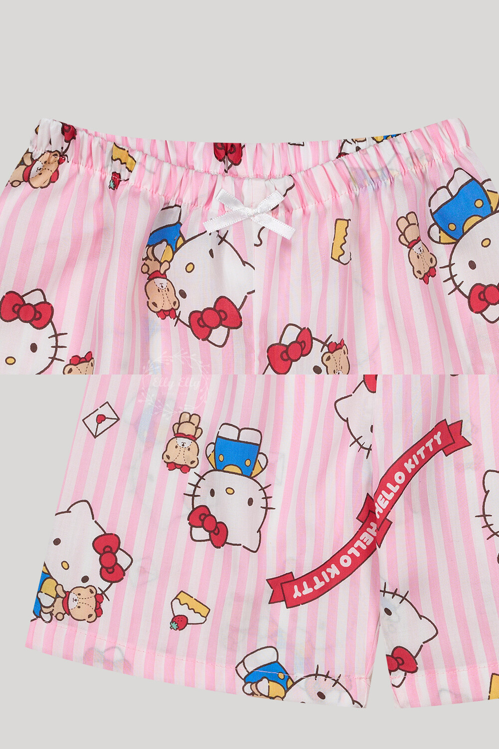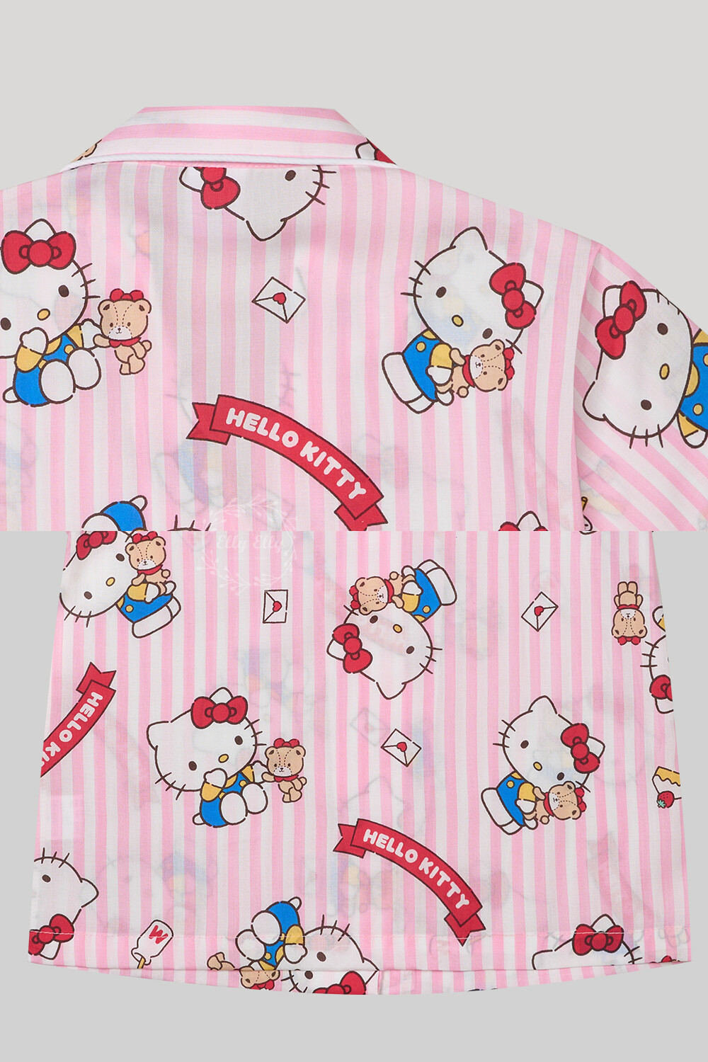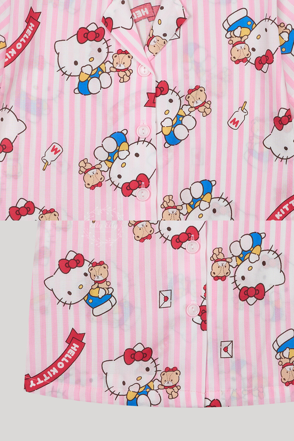 산리오정품 곰인형키티 여자아이 와이카라 반팔상하 투피스