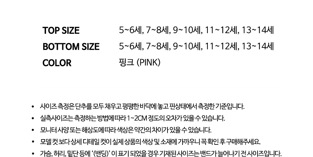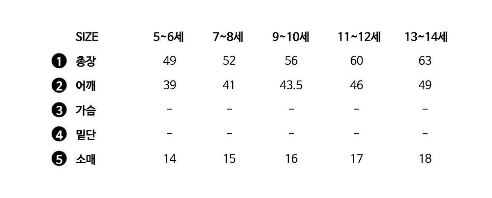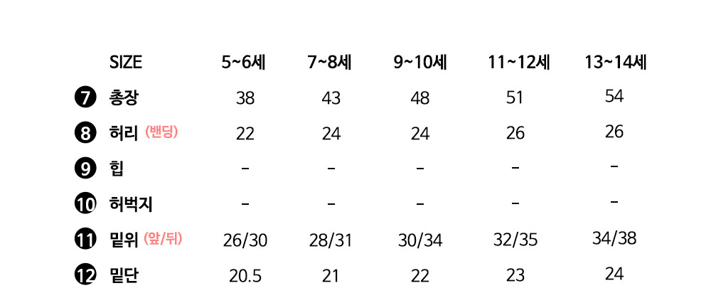 여아용 - 5~6세, 7~8세, 9~10세, 11~12세, 13~14세
