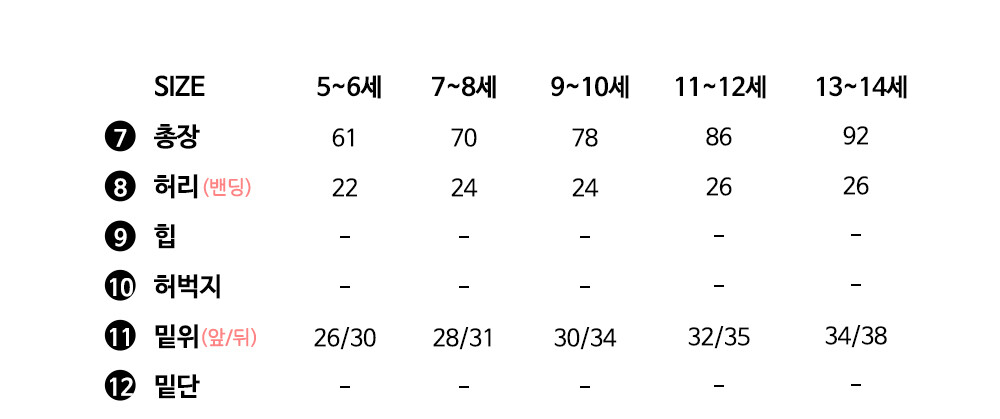 여아동 - 5~6세,7~8세,9~10세,11~12세,13~14세