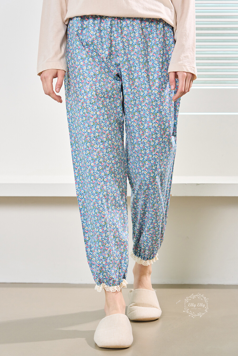 LL-614 잔꽃레이스 9부바지 블루