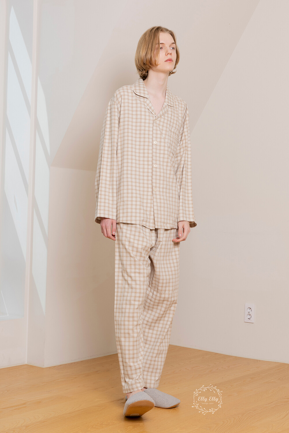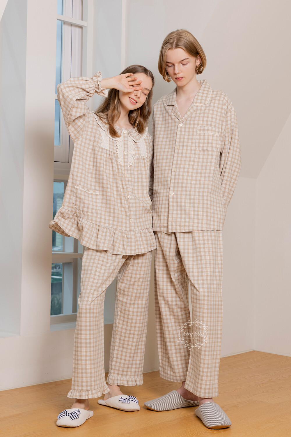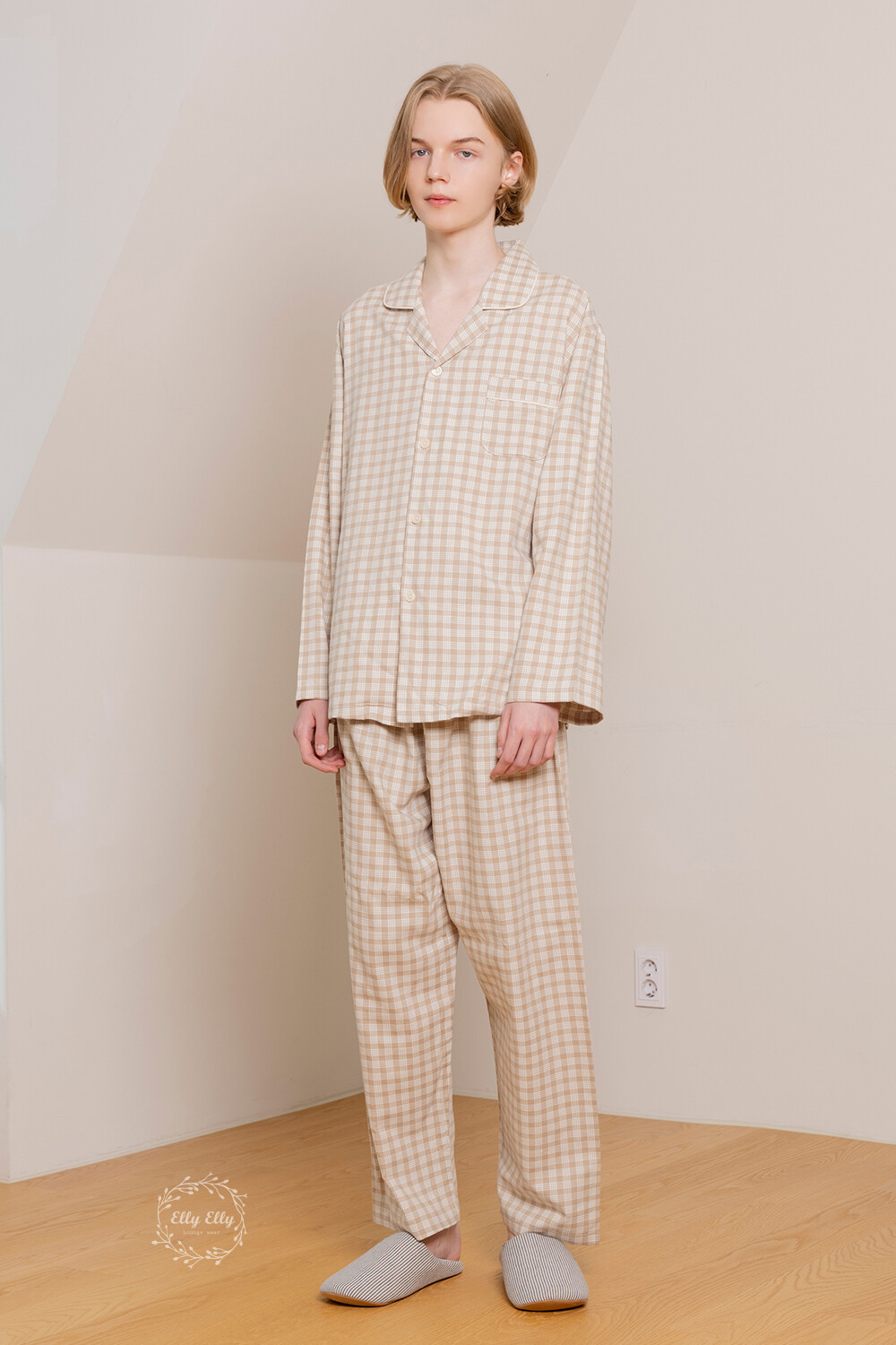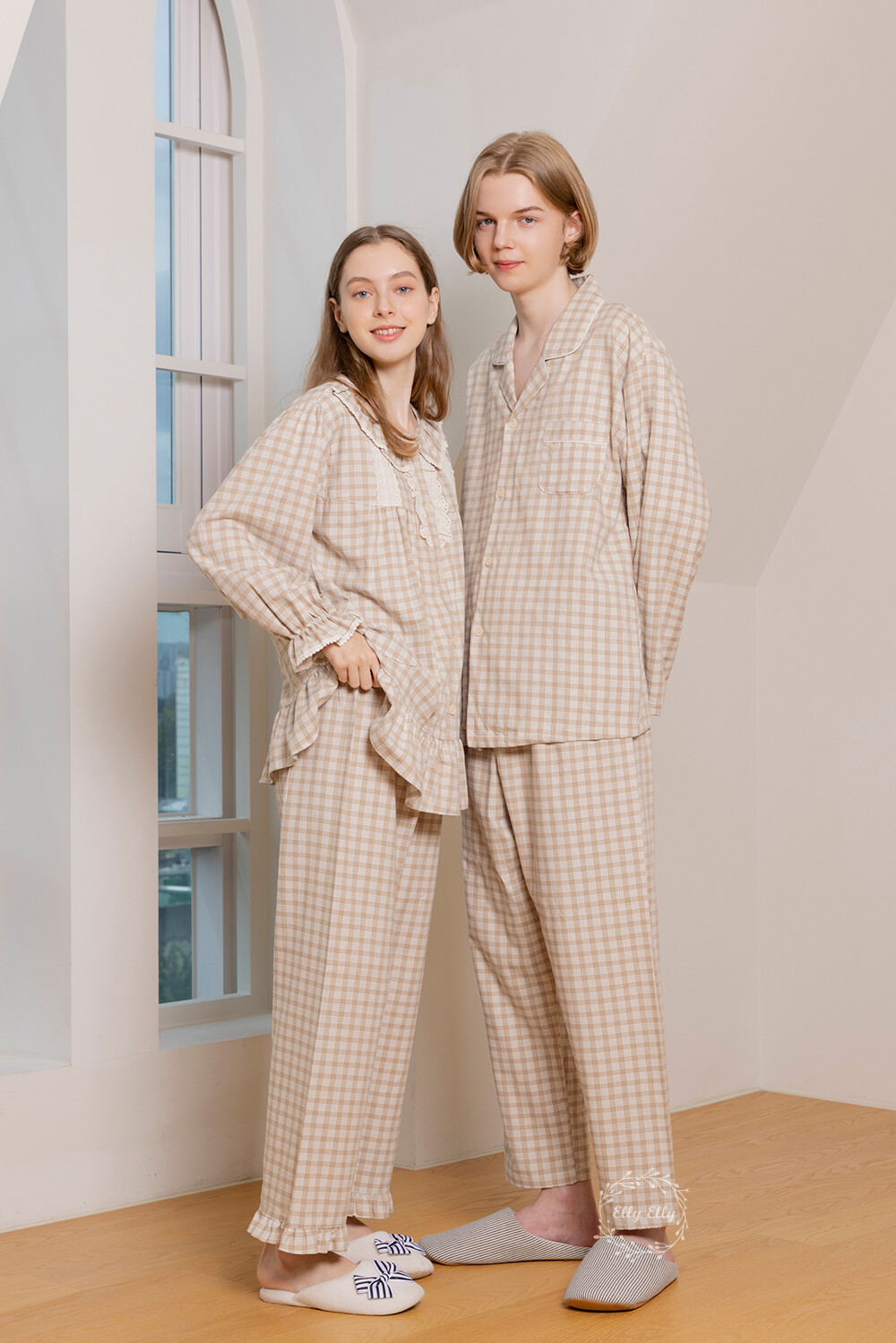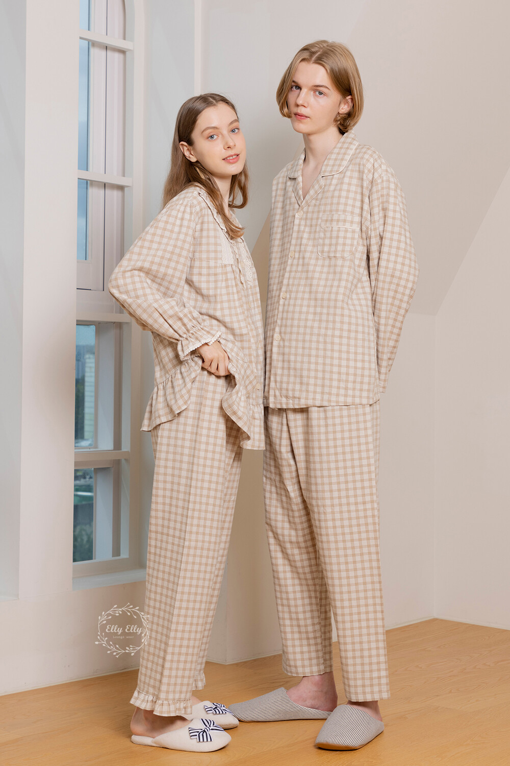 LL-626, LL-627 체크패턴 긴팔 커플잠옷세트 베이지