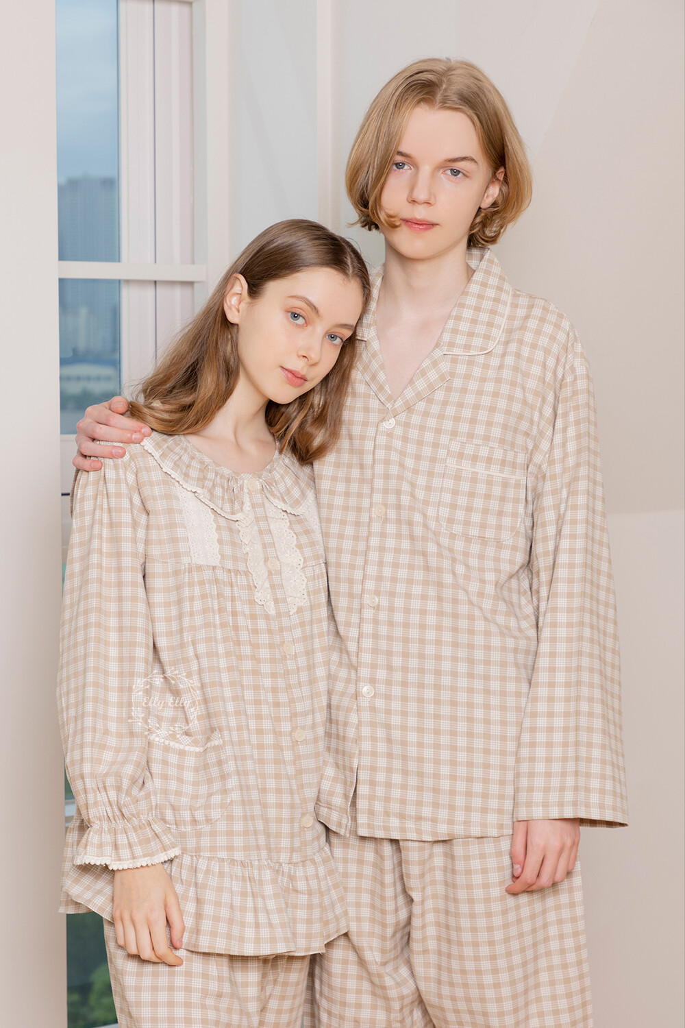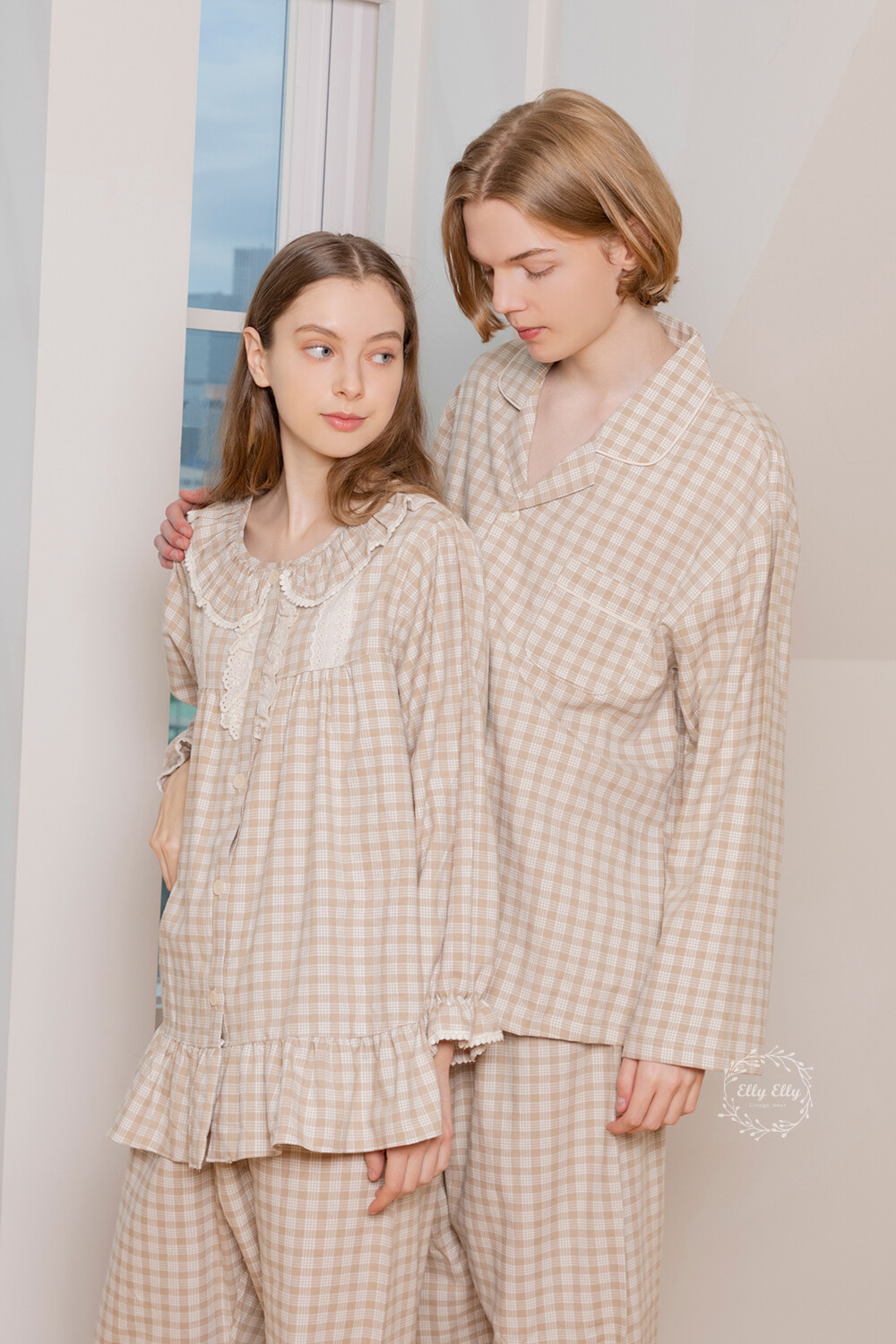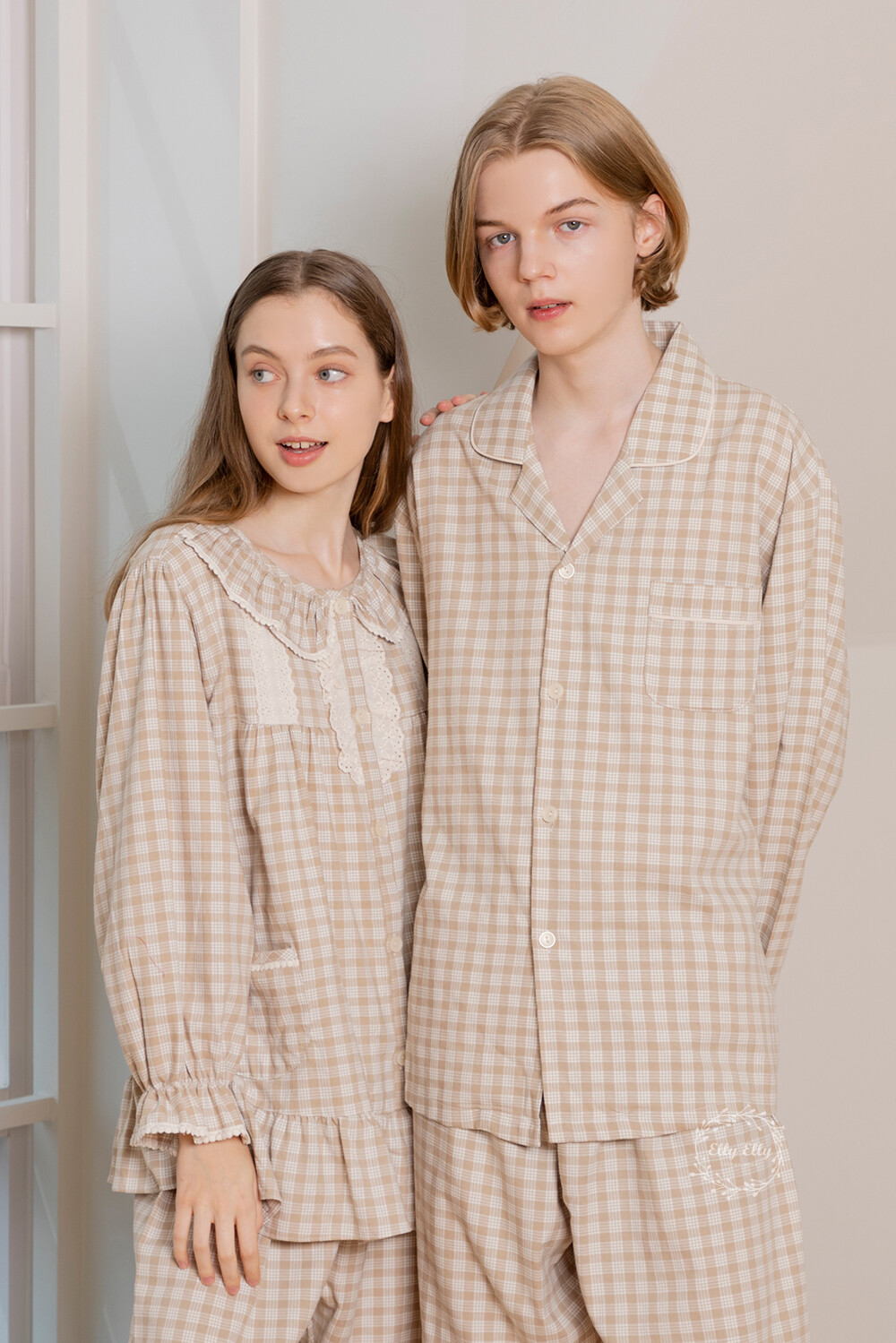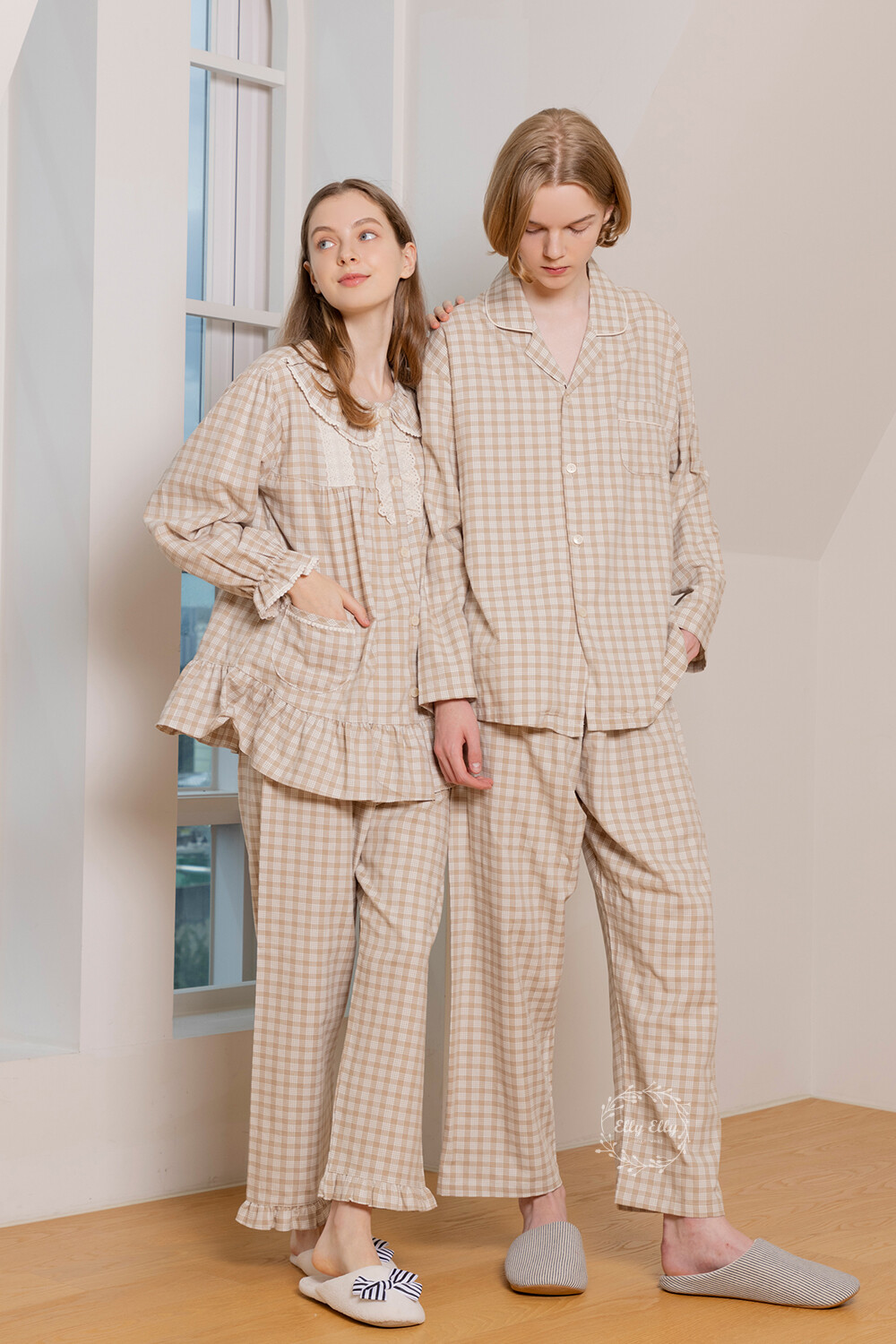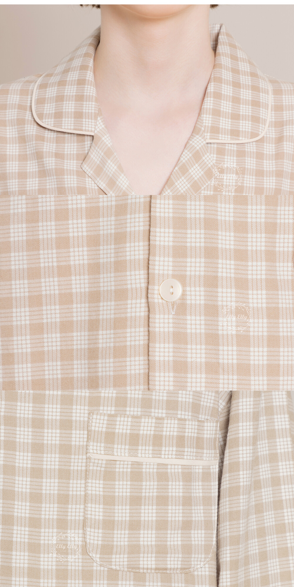 LL-626, LL-627 체크패턴 긴팔 커플잠옷세트 베이지