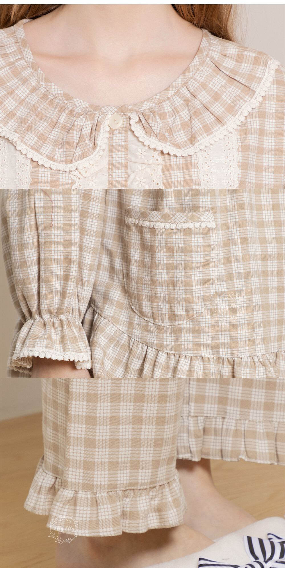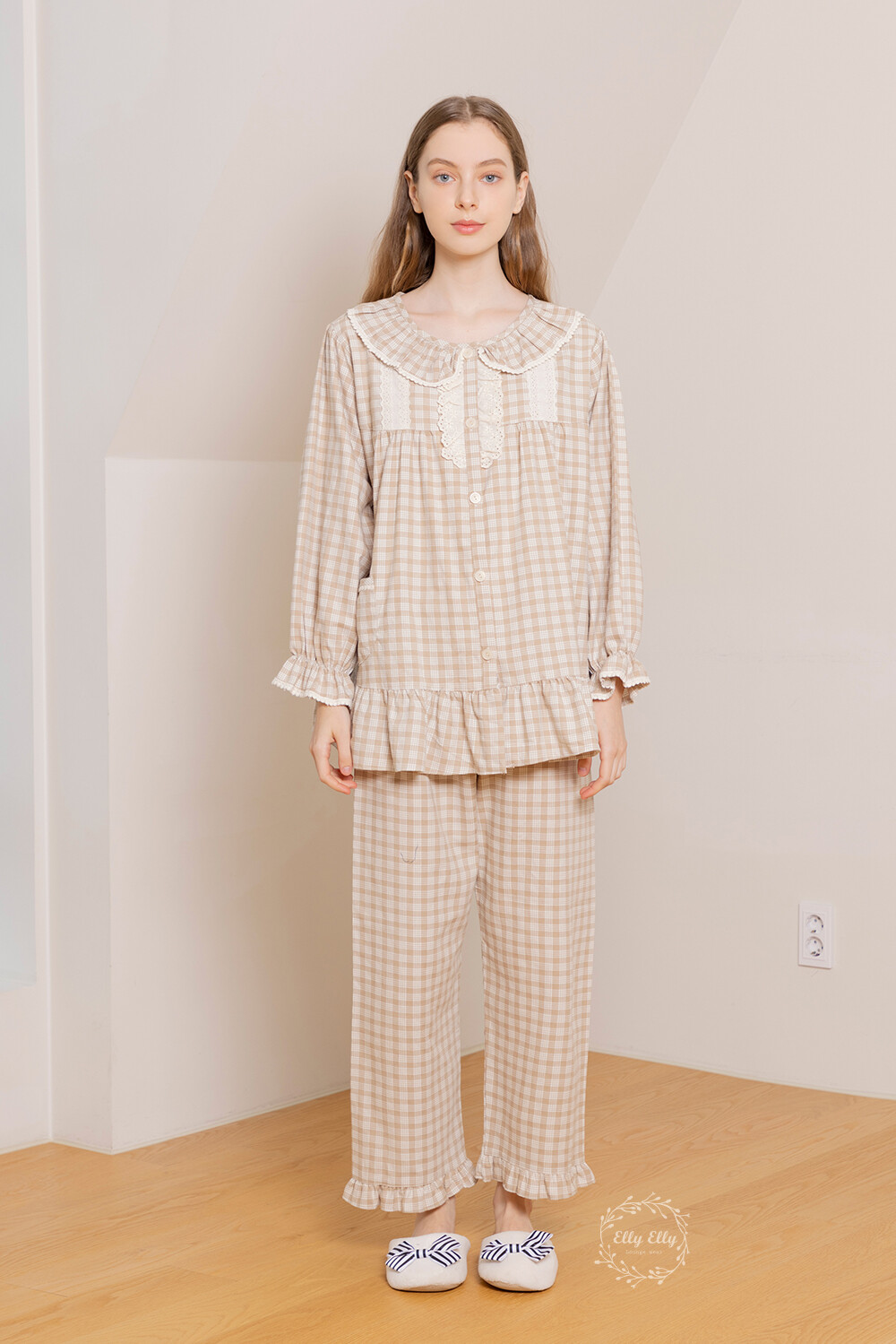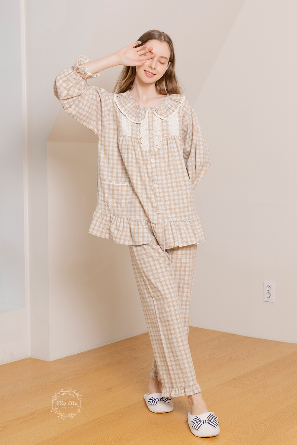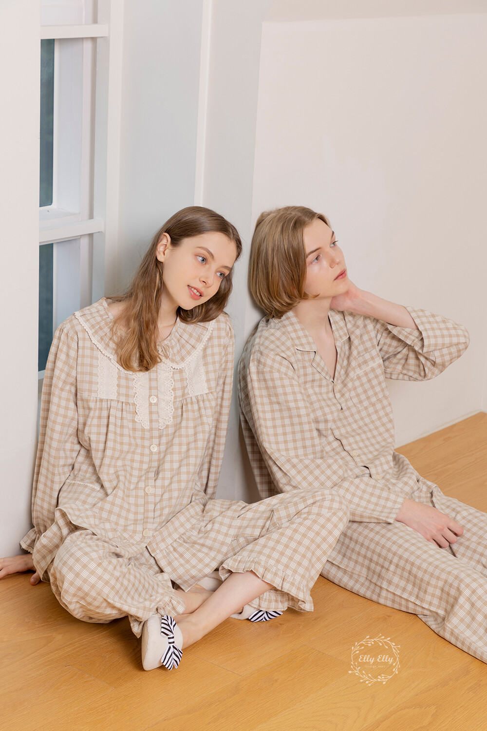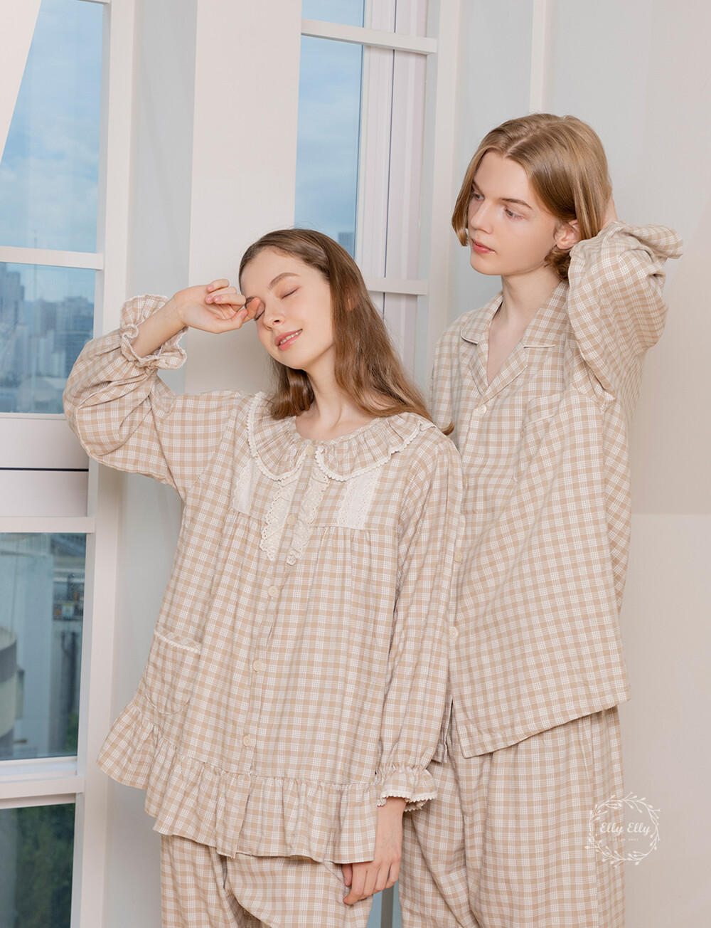 LL-626, LL-627 체크패턴 긴팔 커플잠옷세트 베이지
