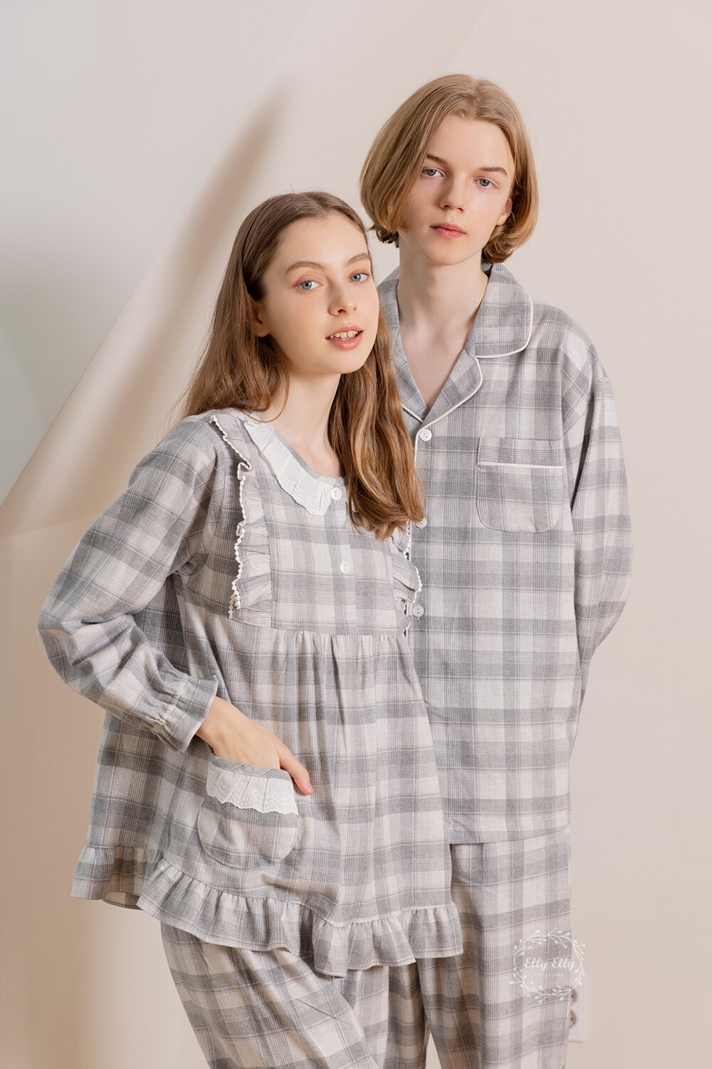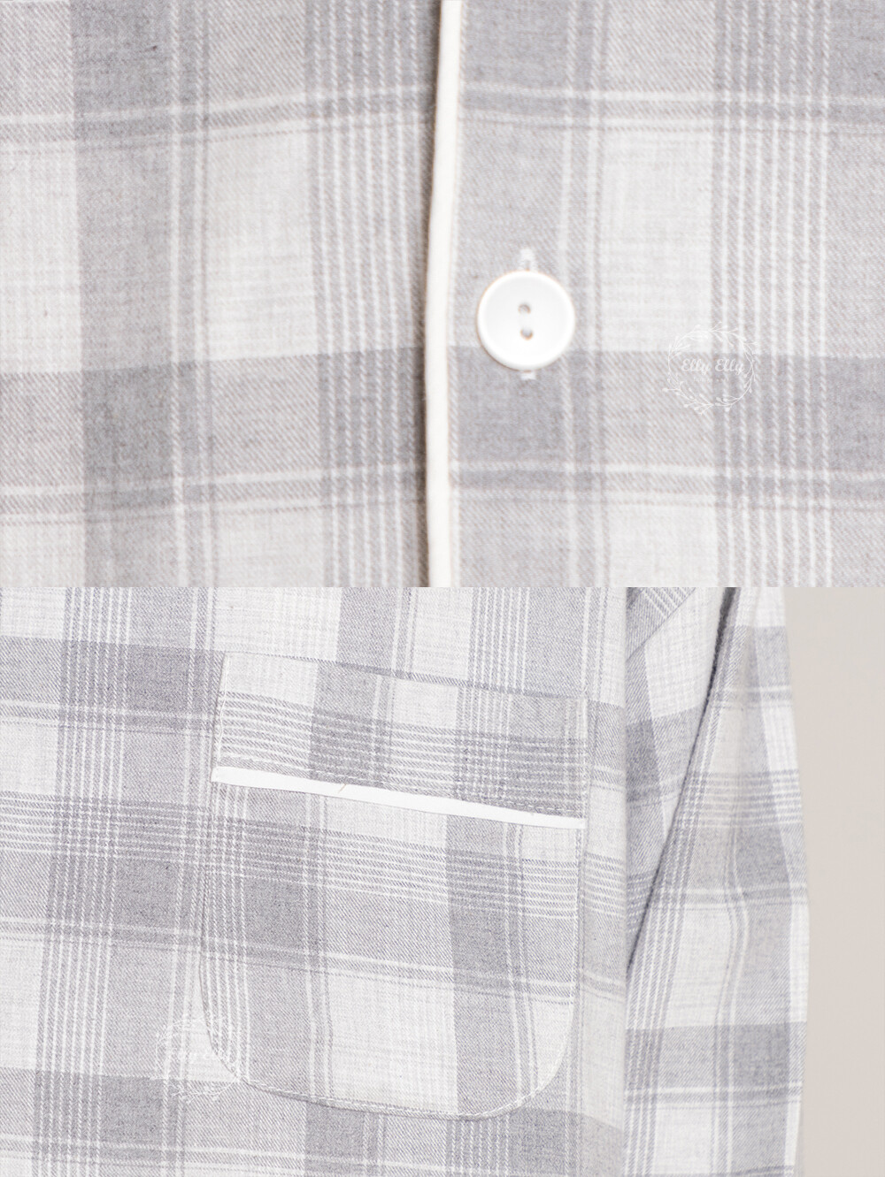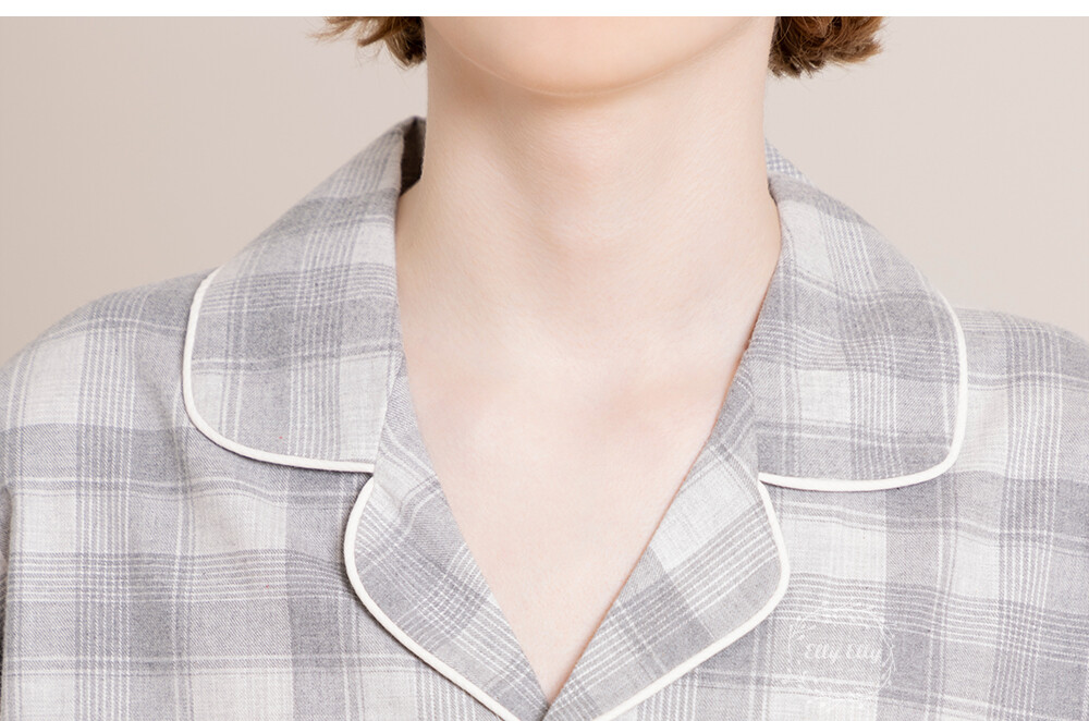 LL-629 체크패턴 와이카라 남성 긴팔페어 그레이