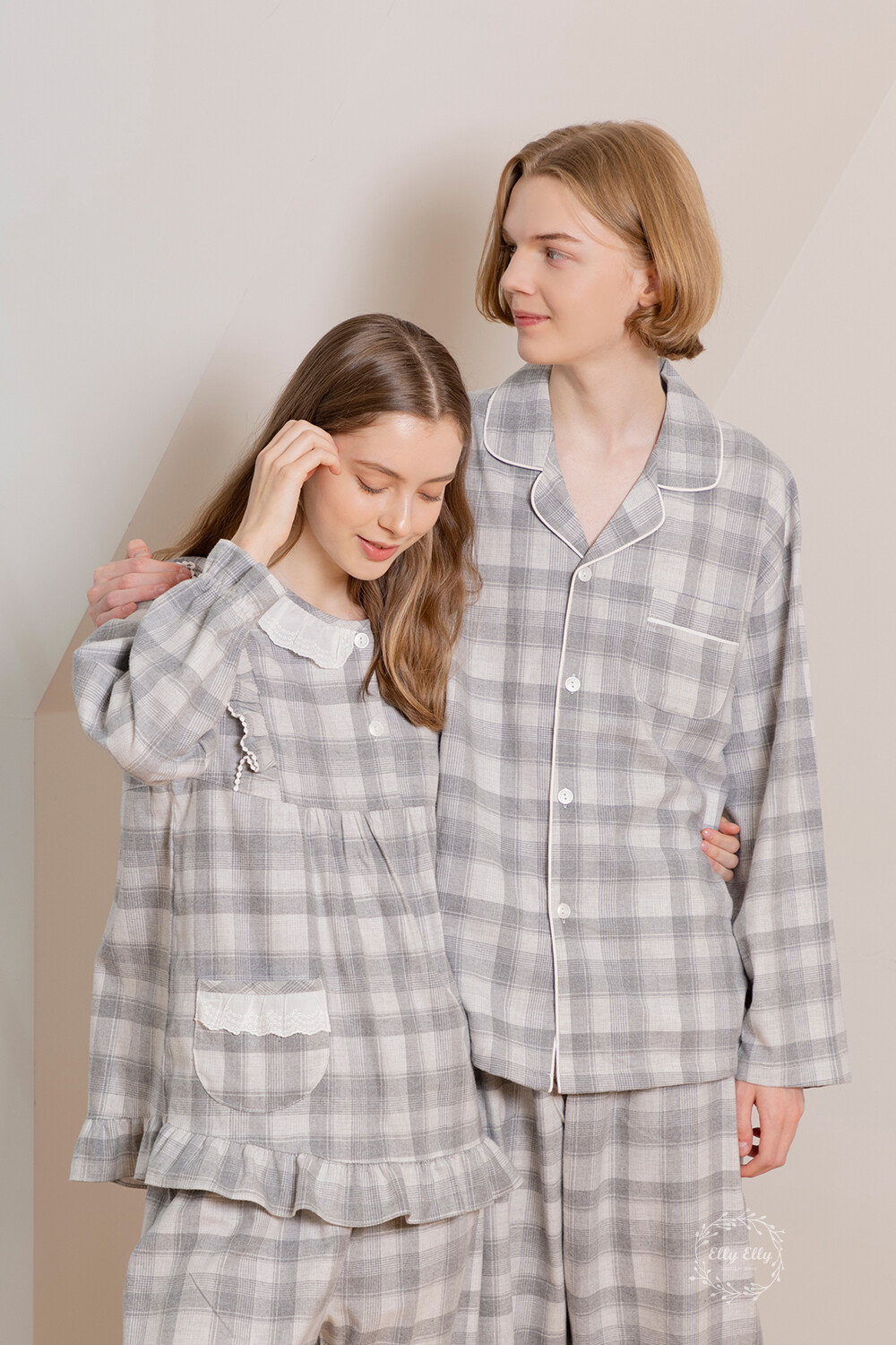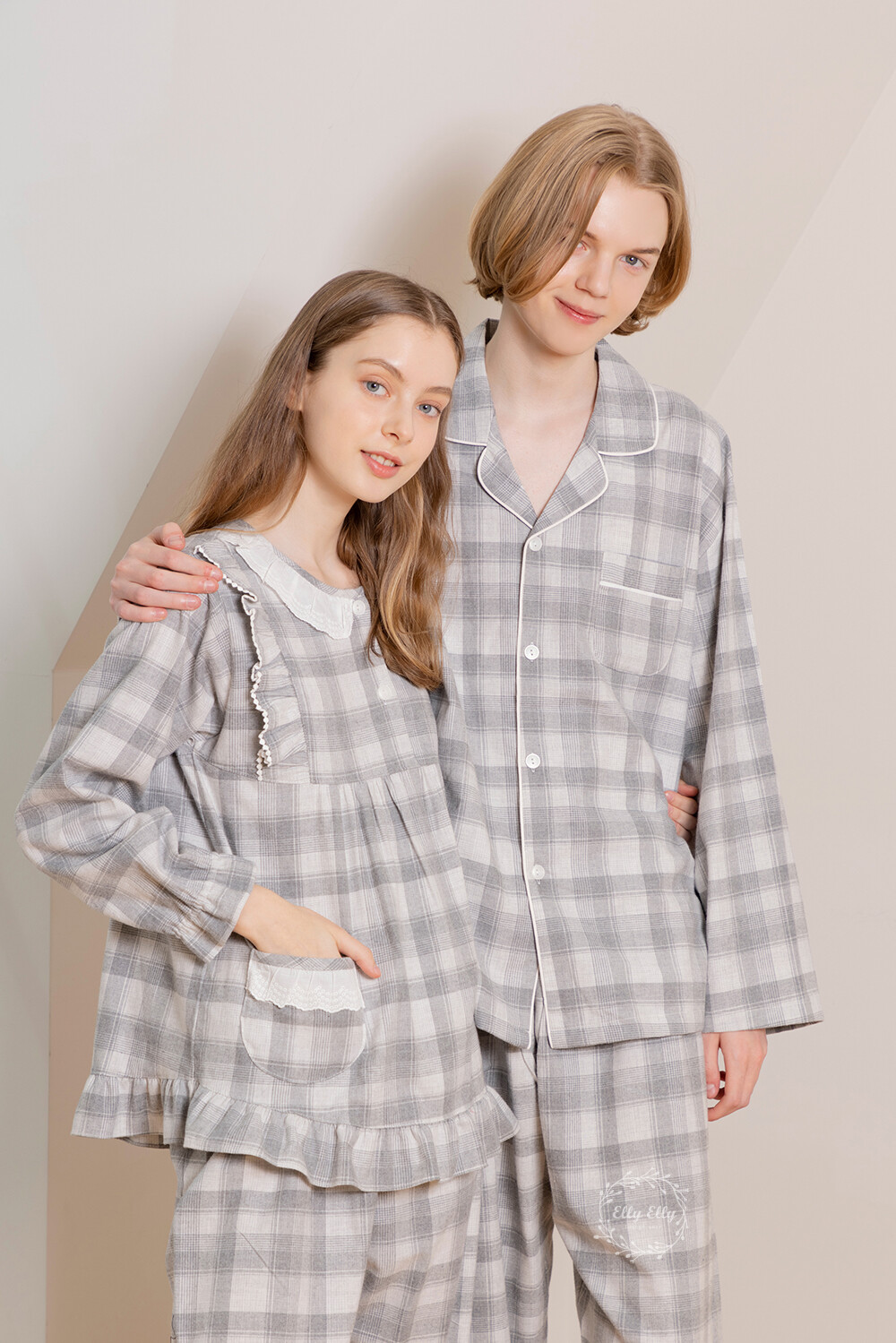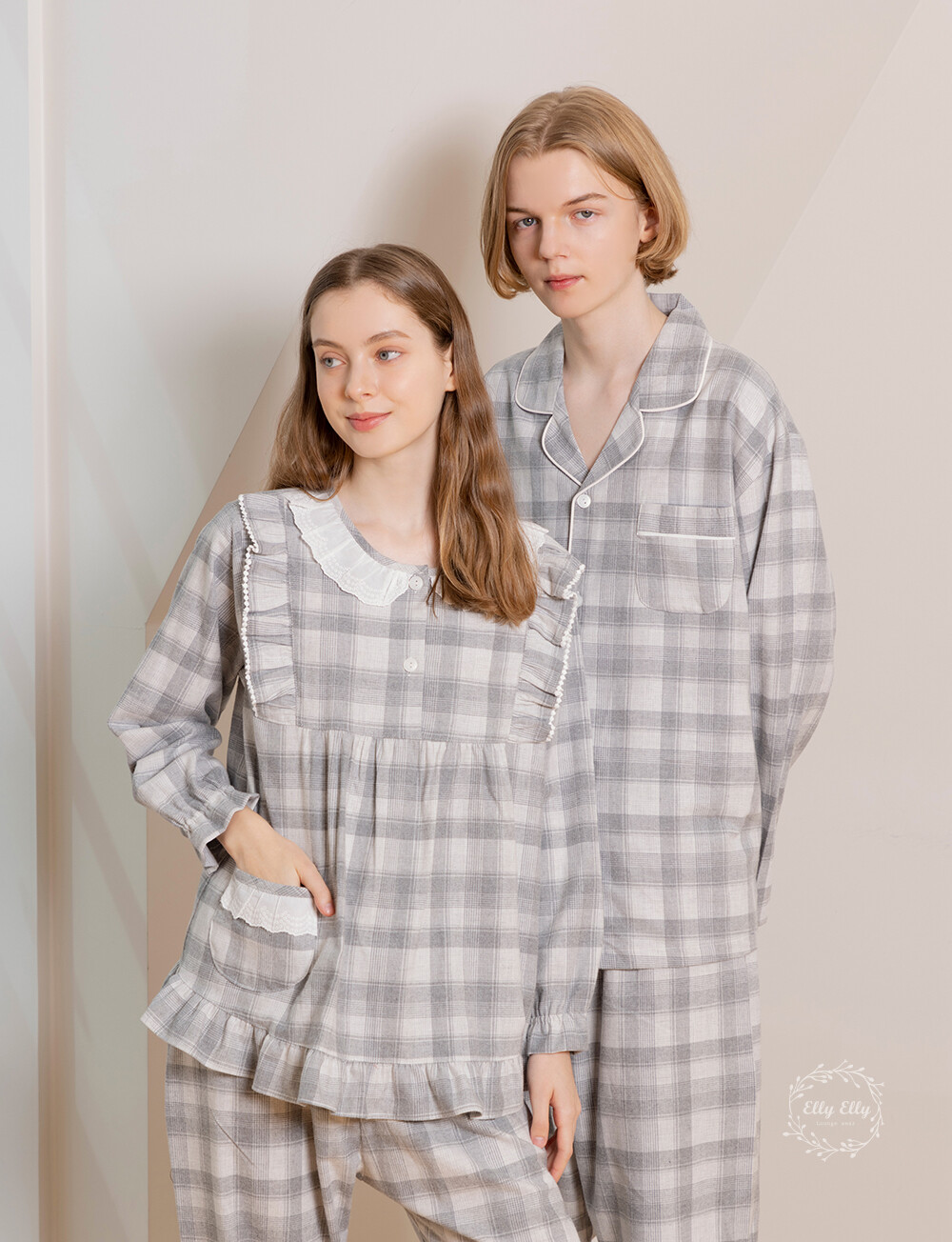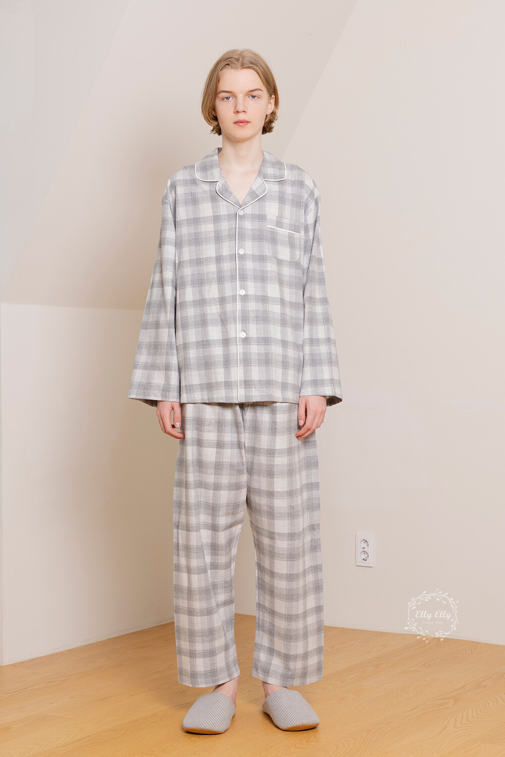 LL-630-629 체크패턴 긴팔 커플잠옷세트 그레이