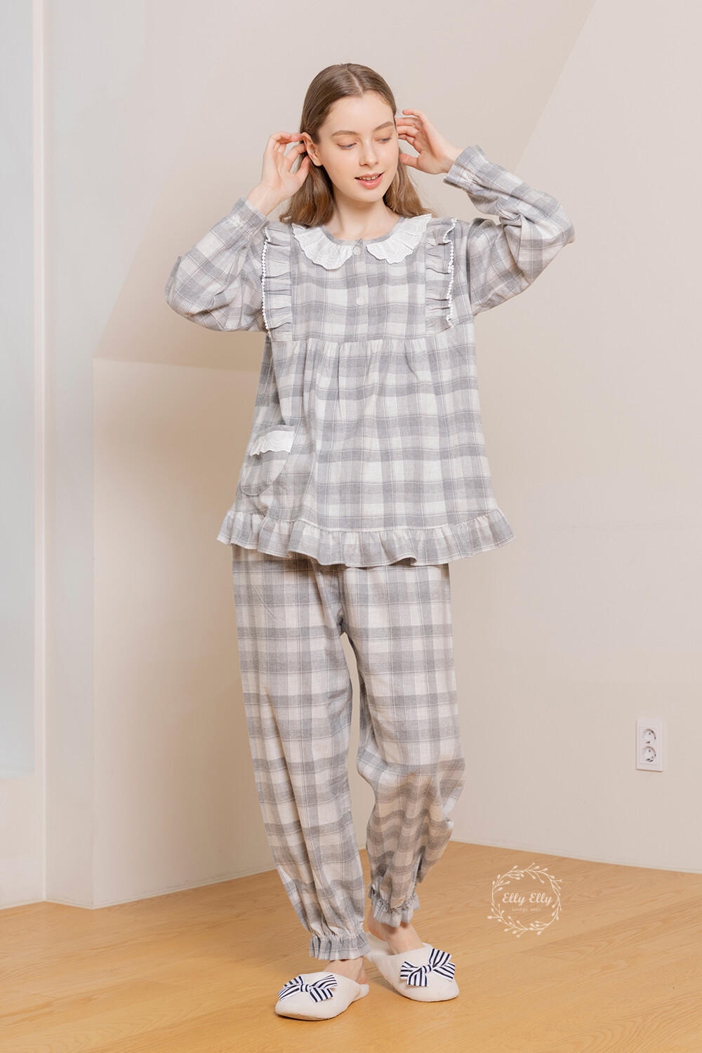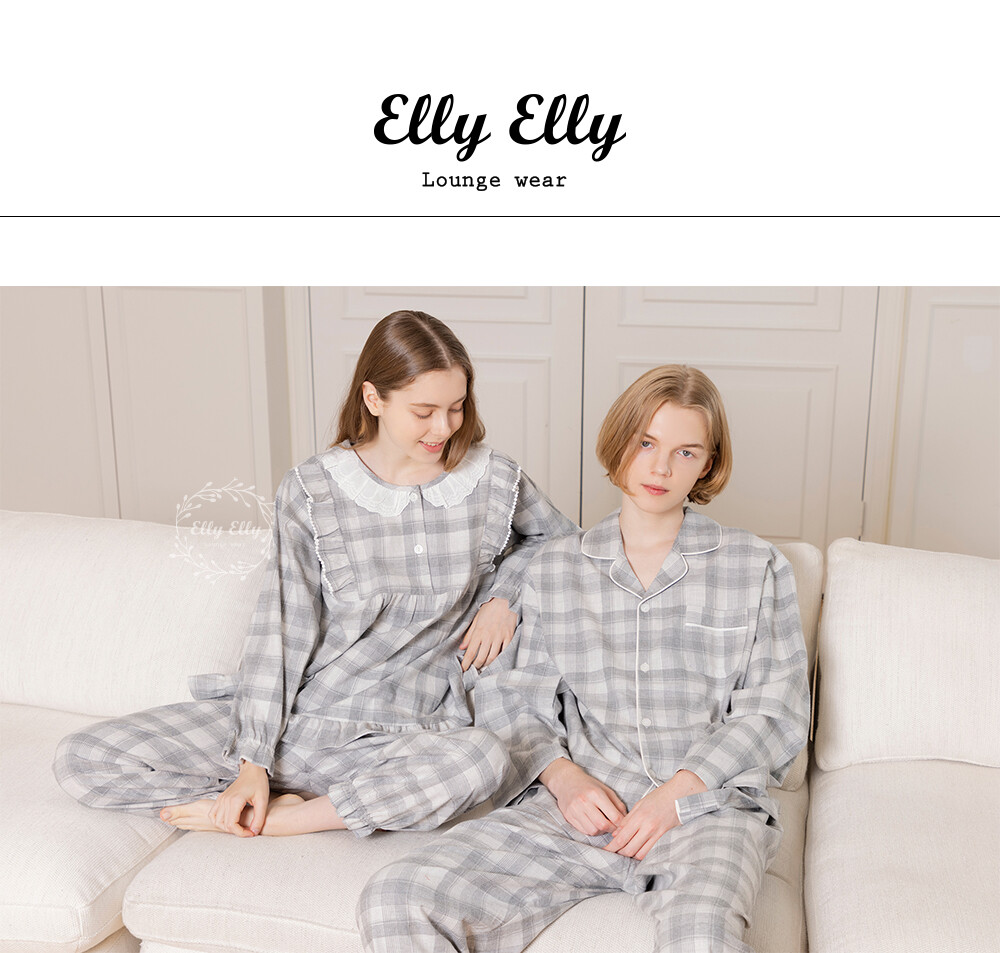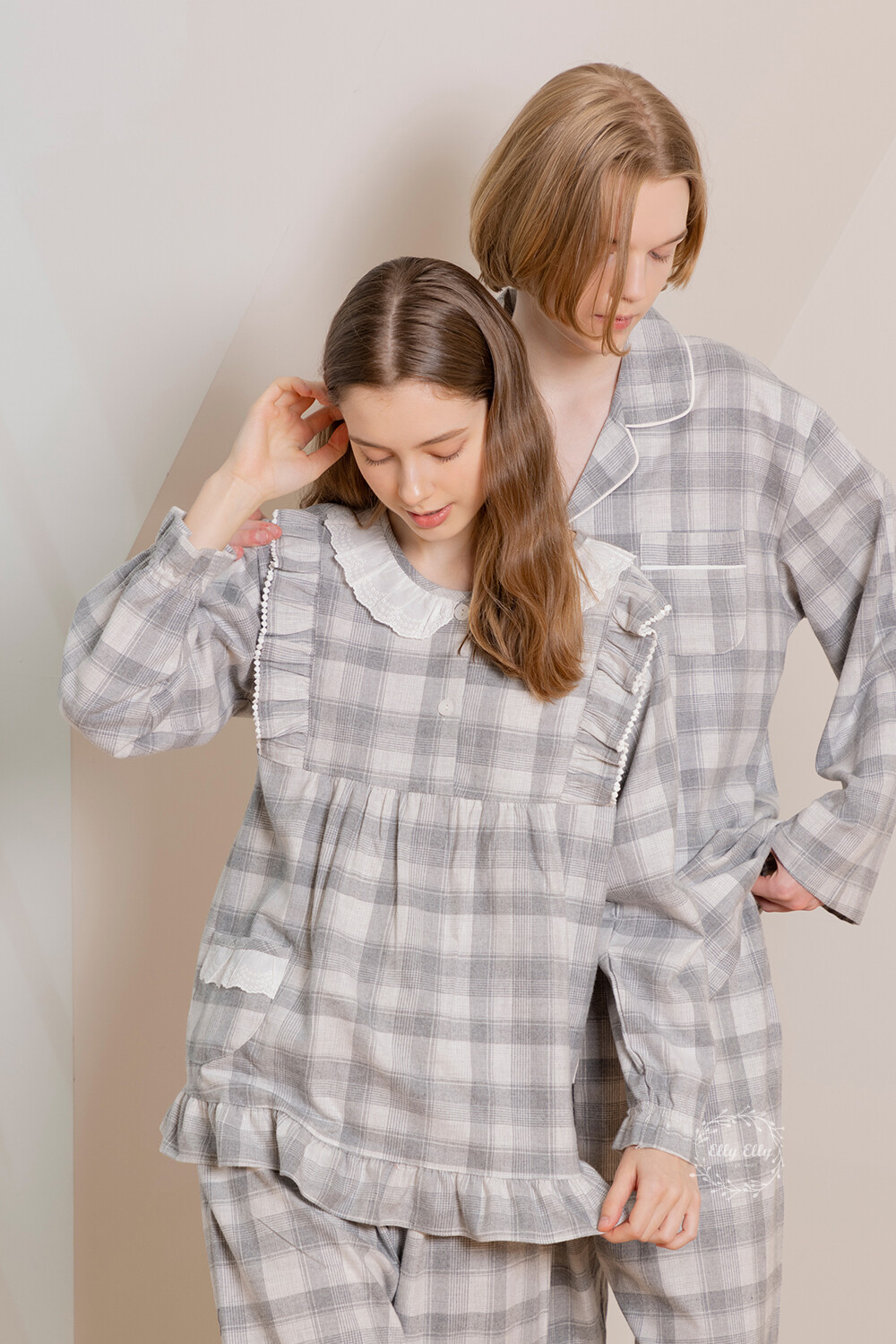 LL-630-629 체크패턴 긴팔 커플잠옷세트 그레이