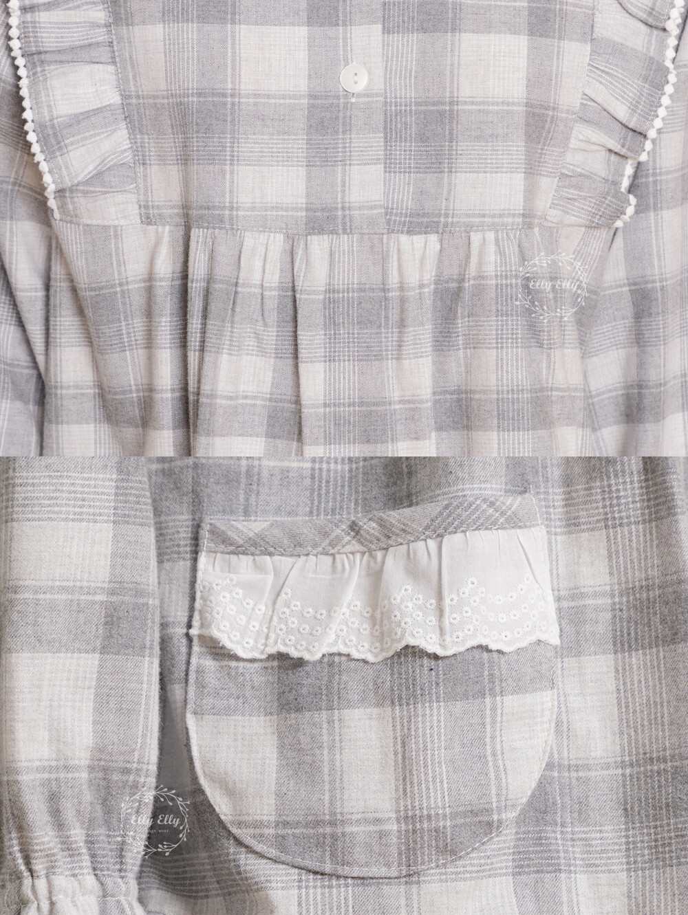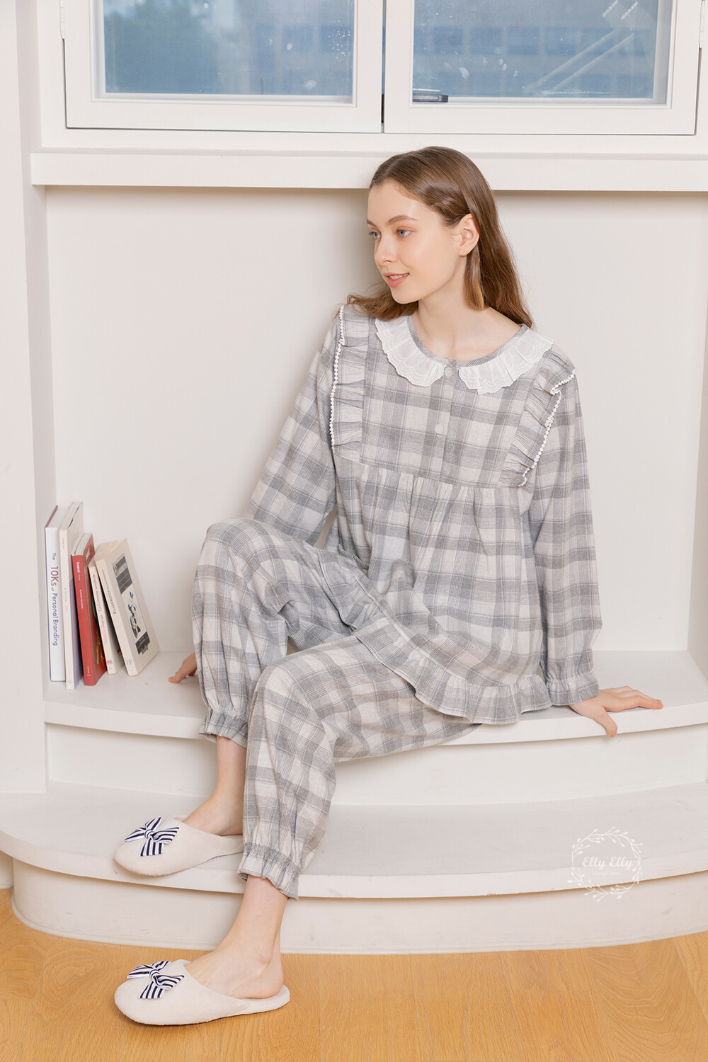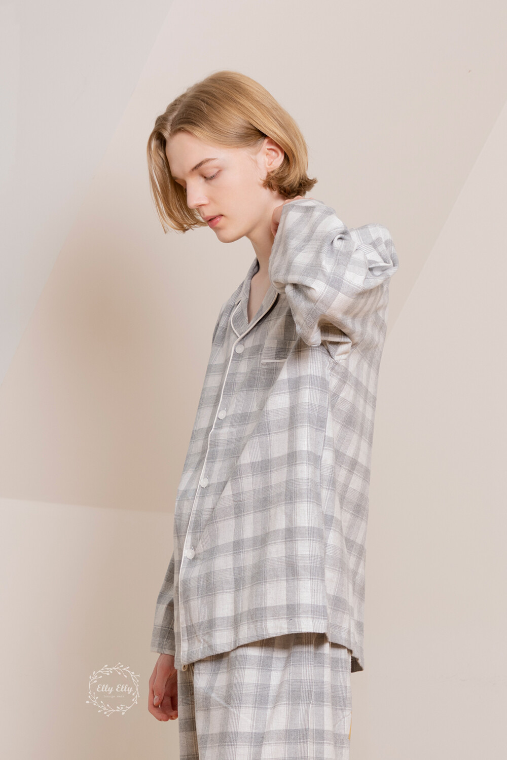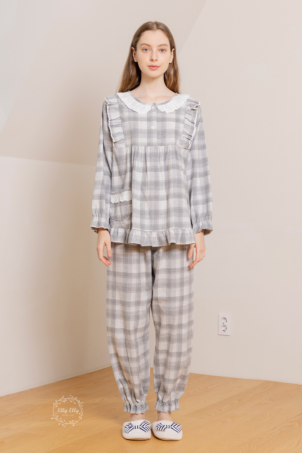 LL-630-629 체크패턴 긴팔 커플잠옷세트 그레이