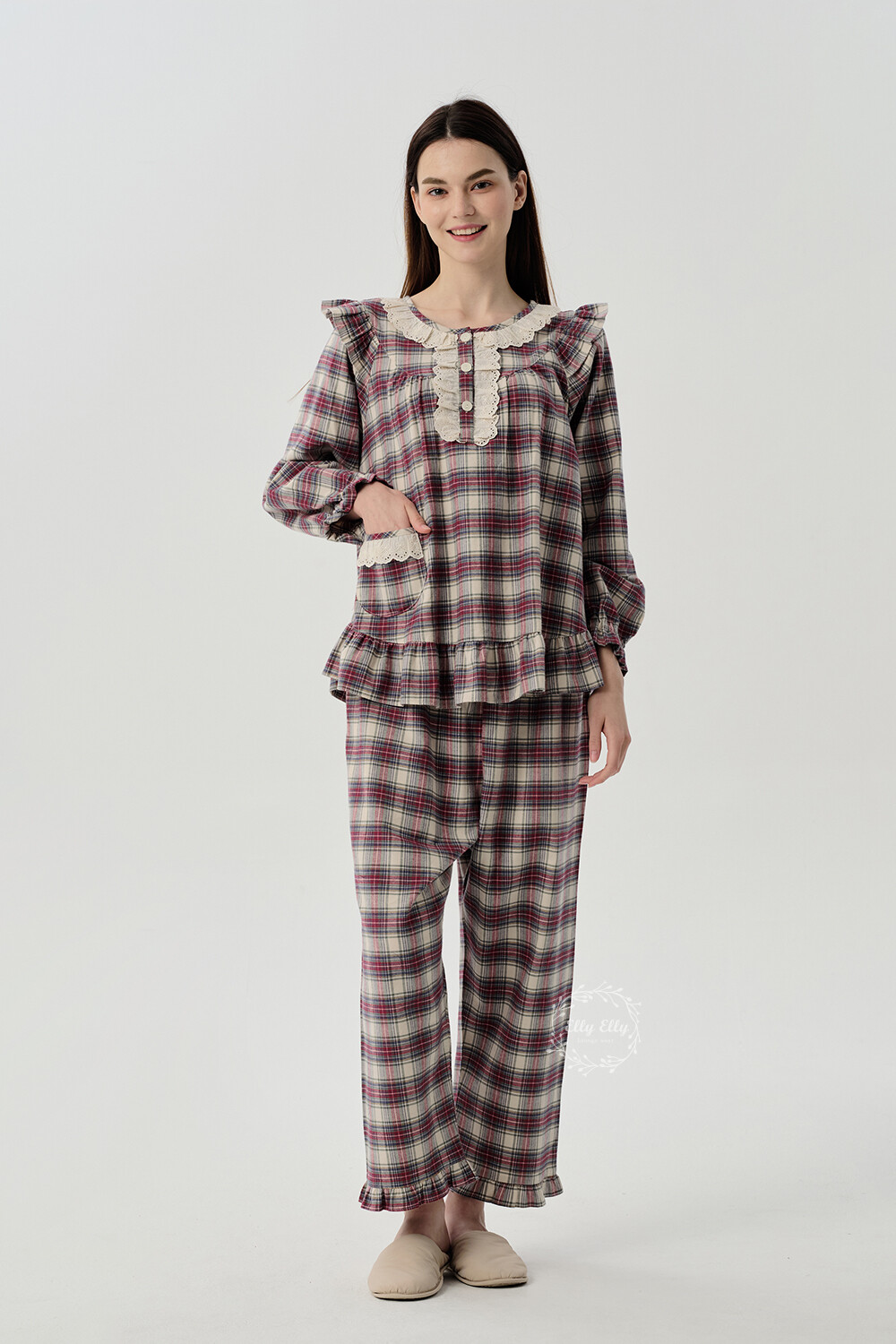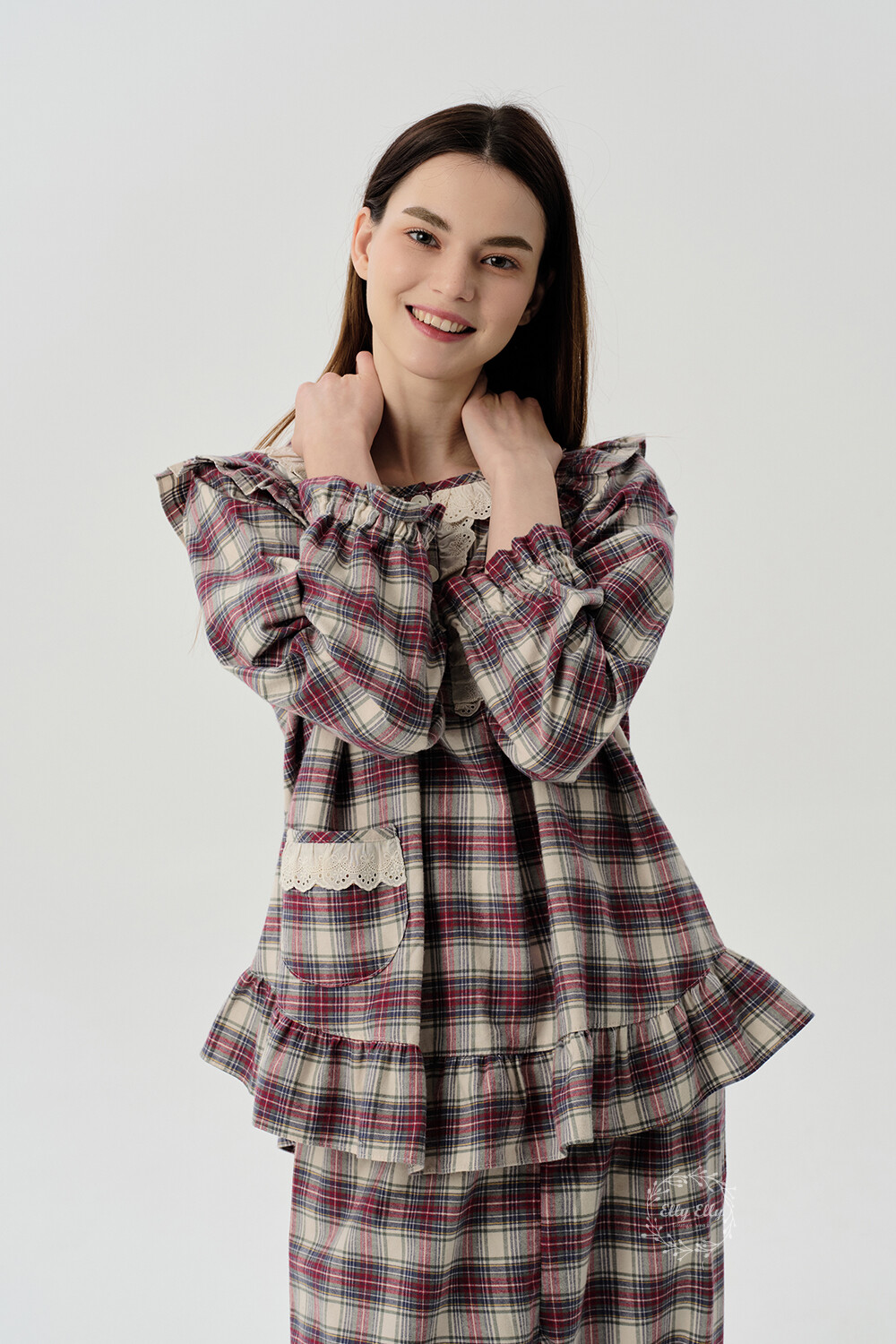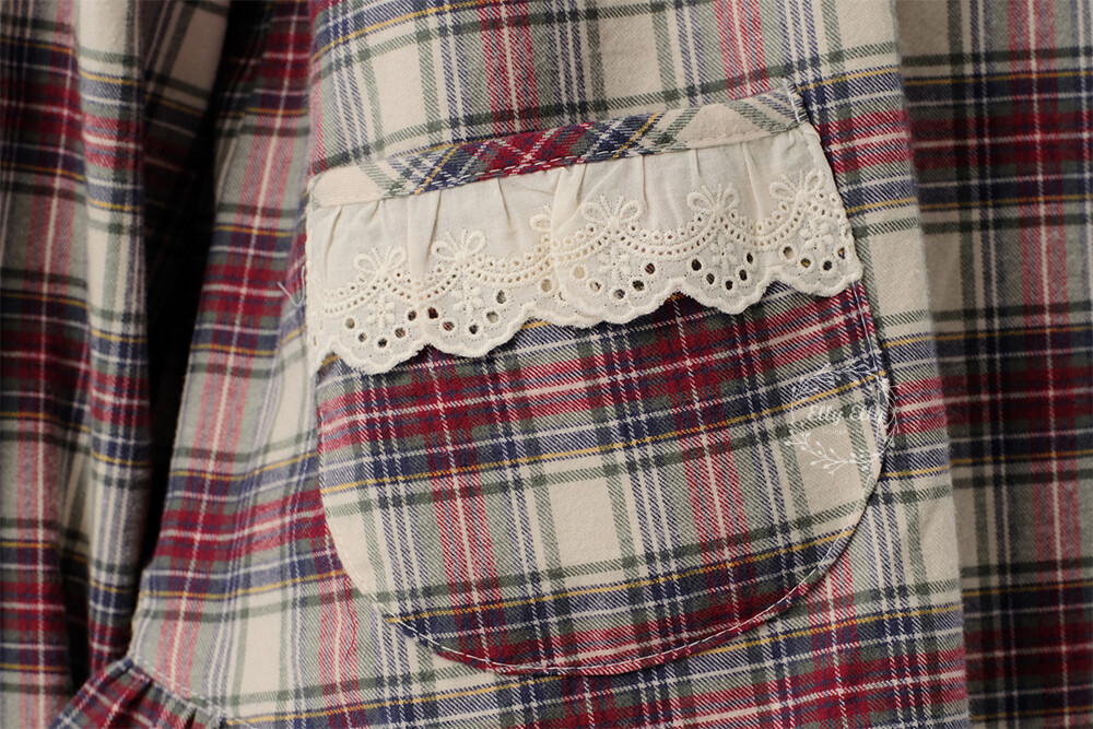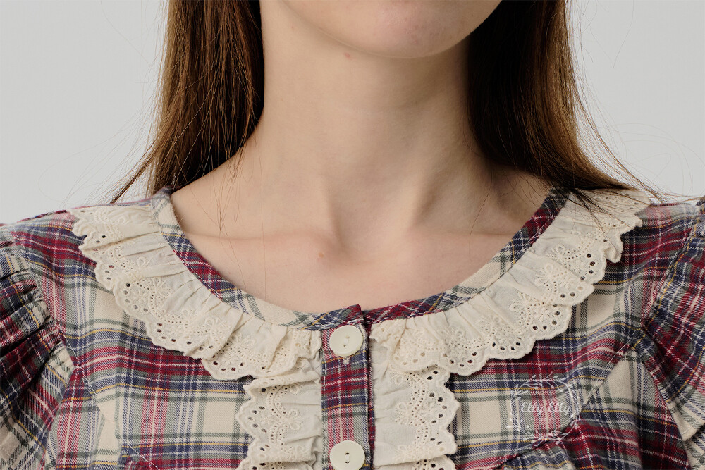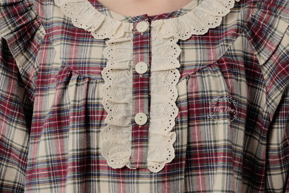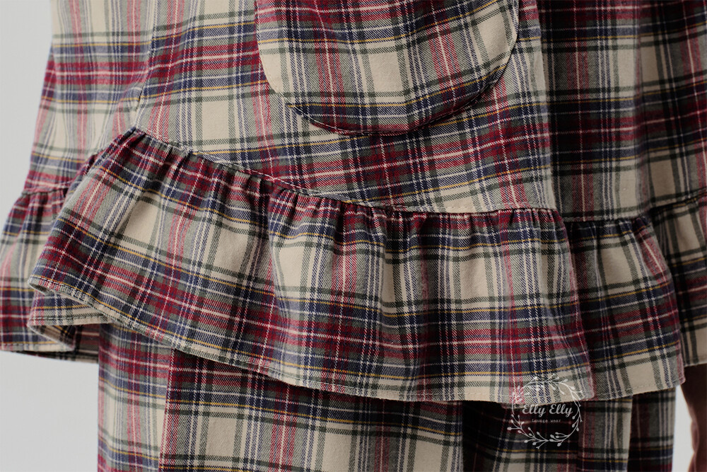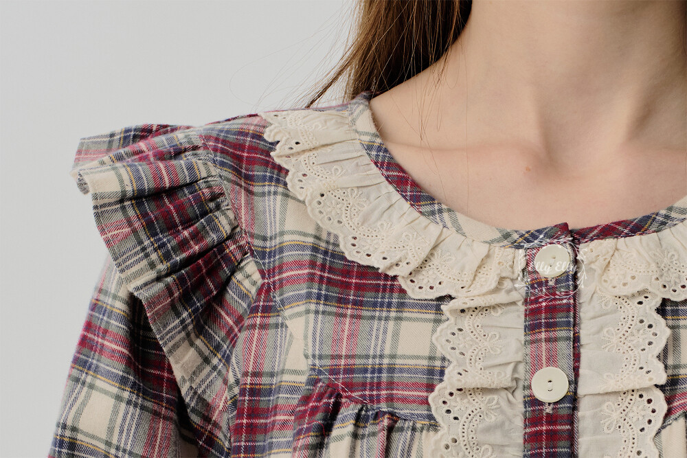 LL-686 프릴레이스 체크무늬 여성 기모 긴팔투피스