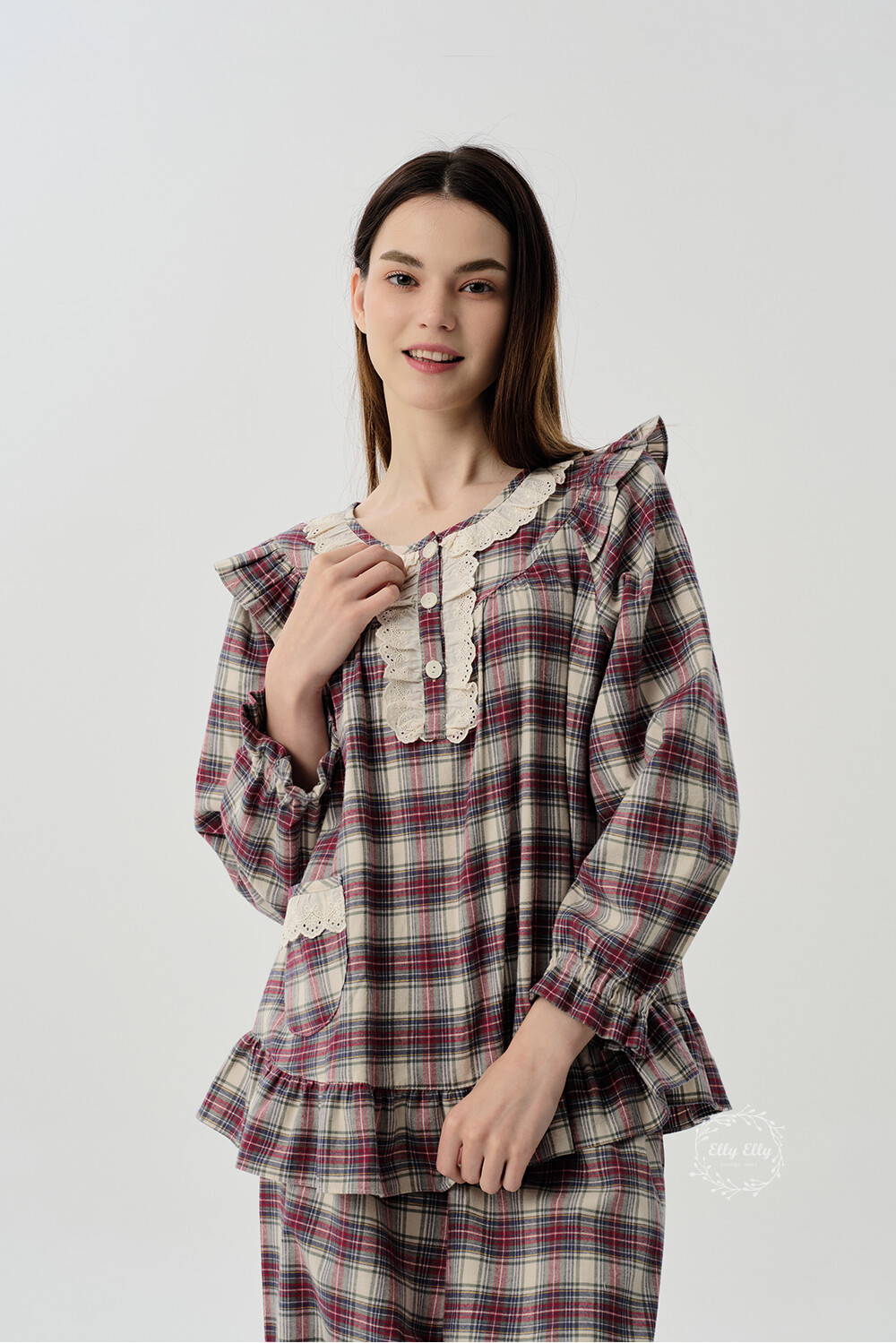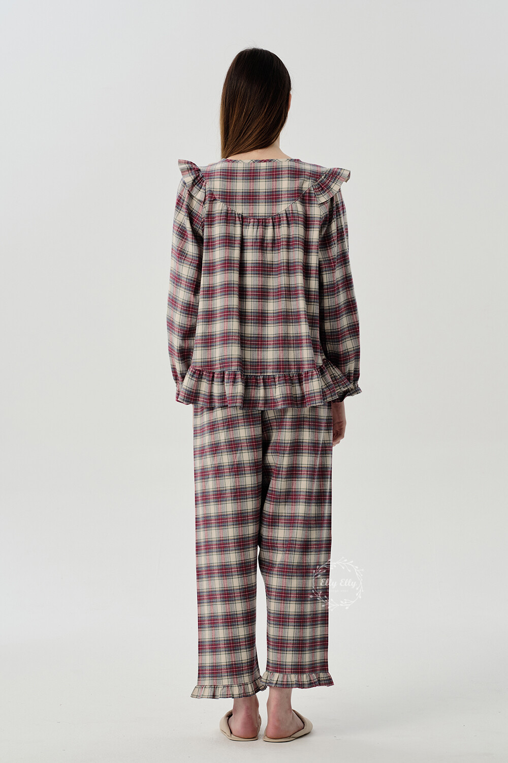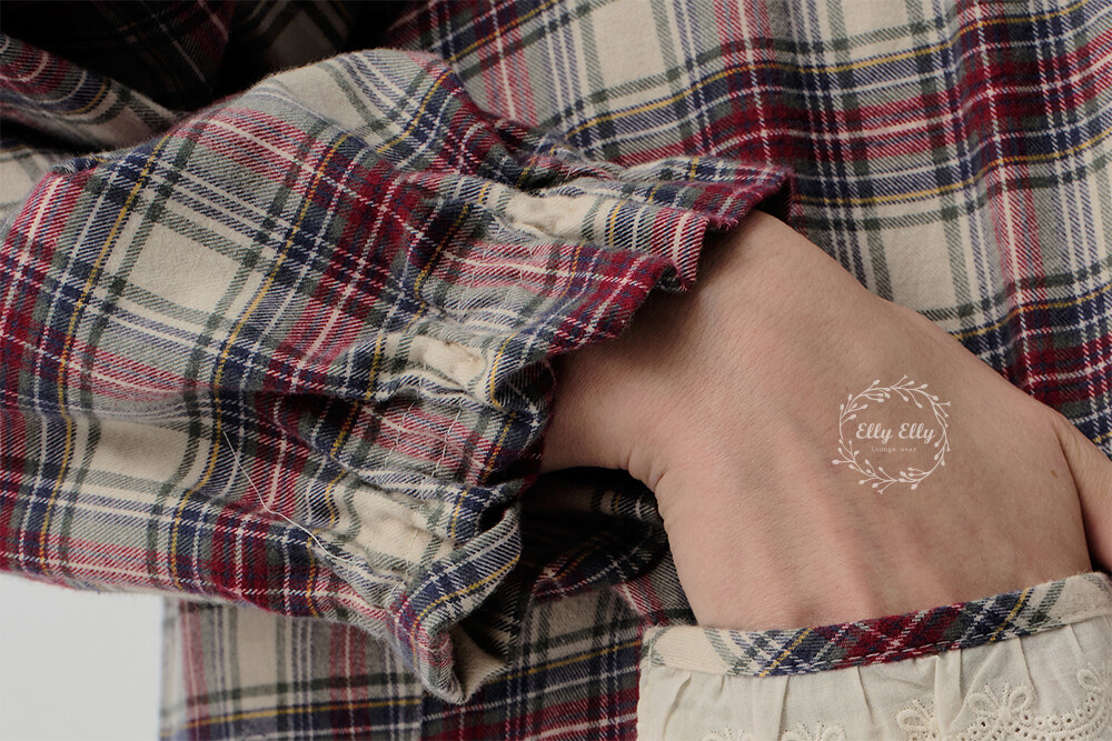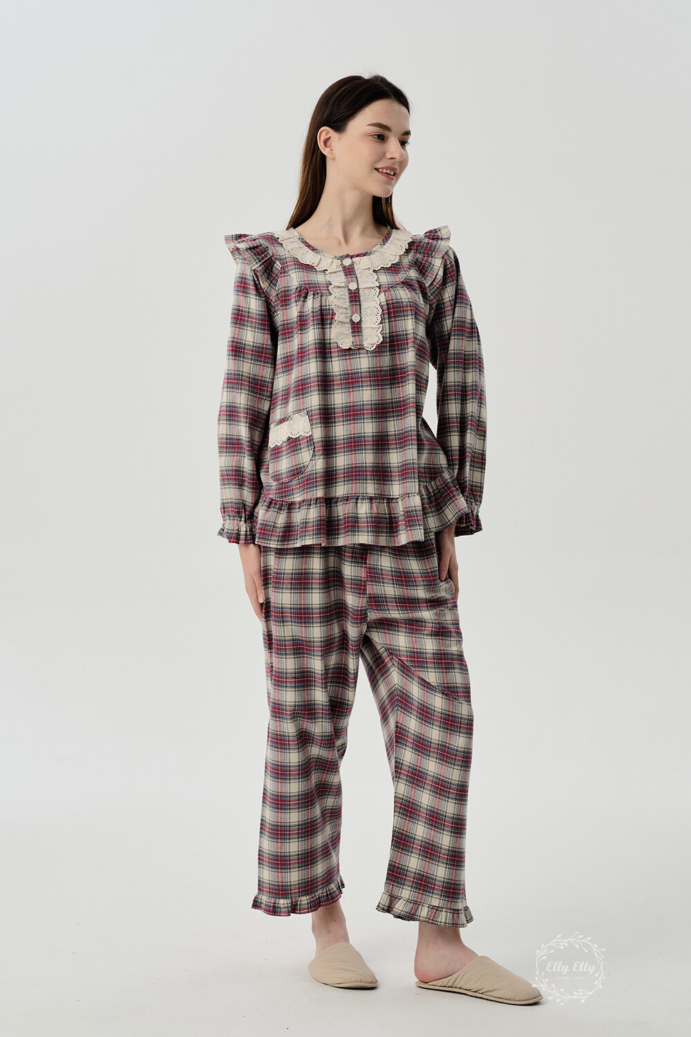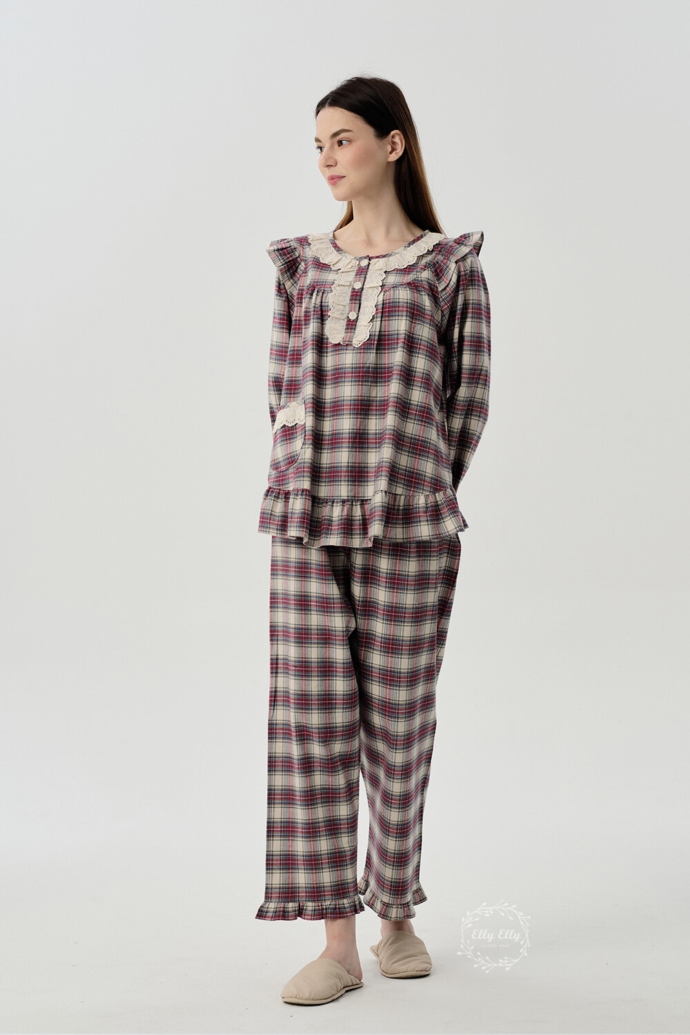 LL-686 프릴레이스 체크무늬 여성 기모 긴팔투피스