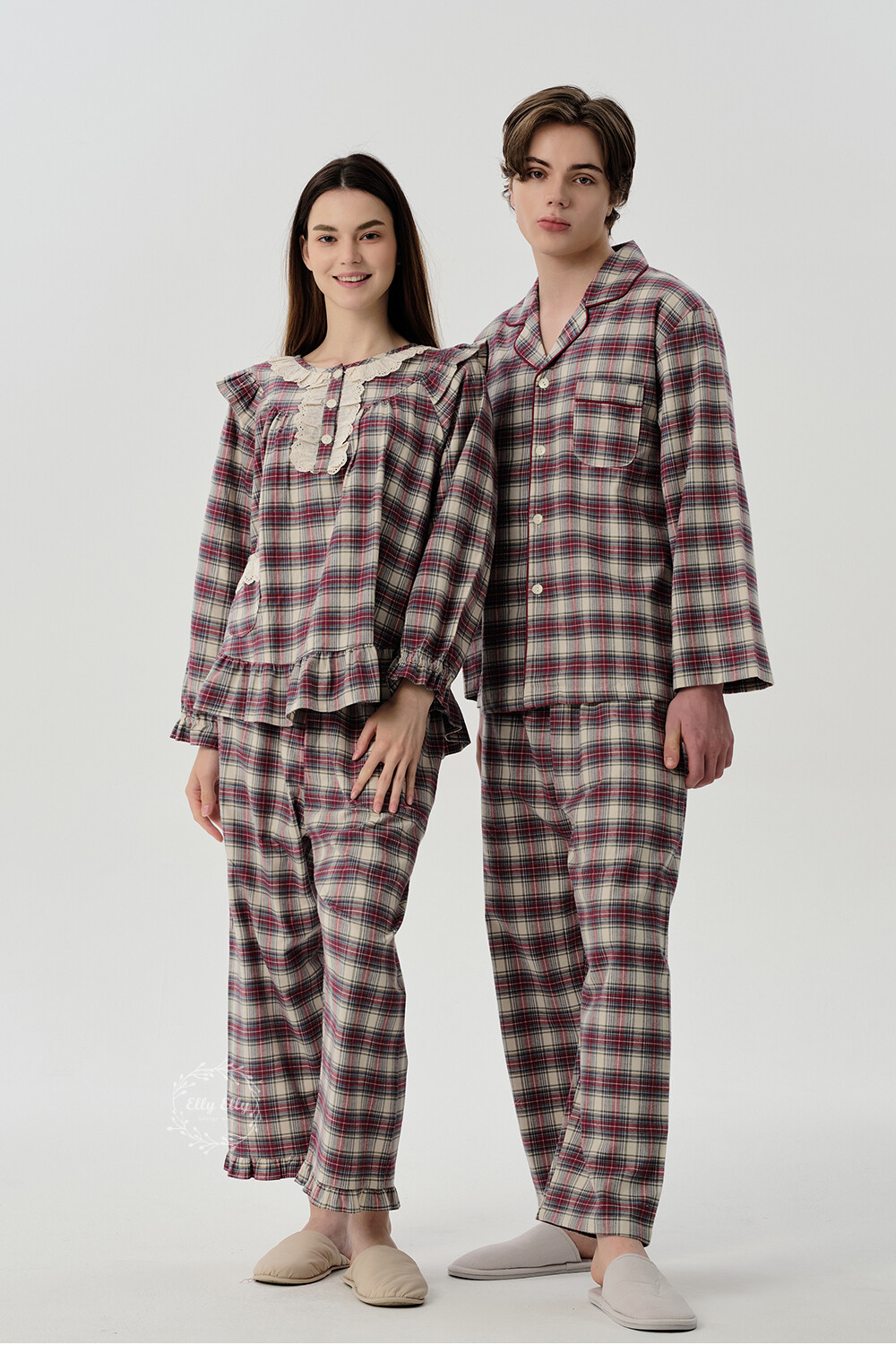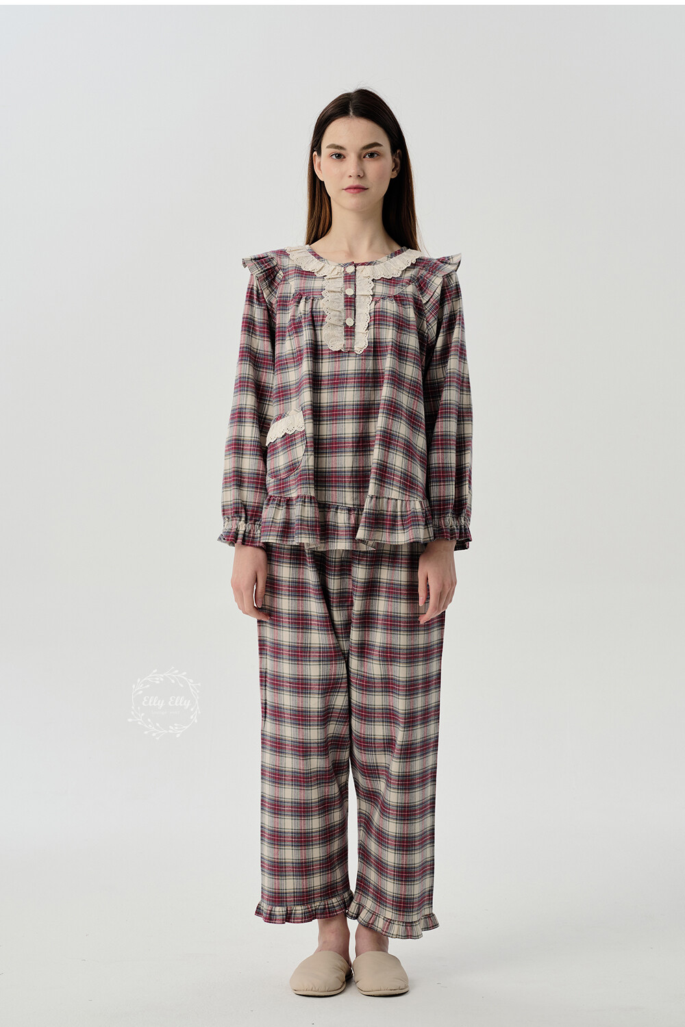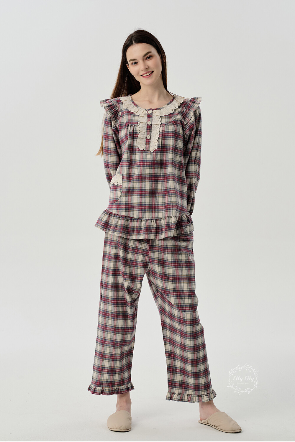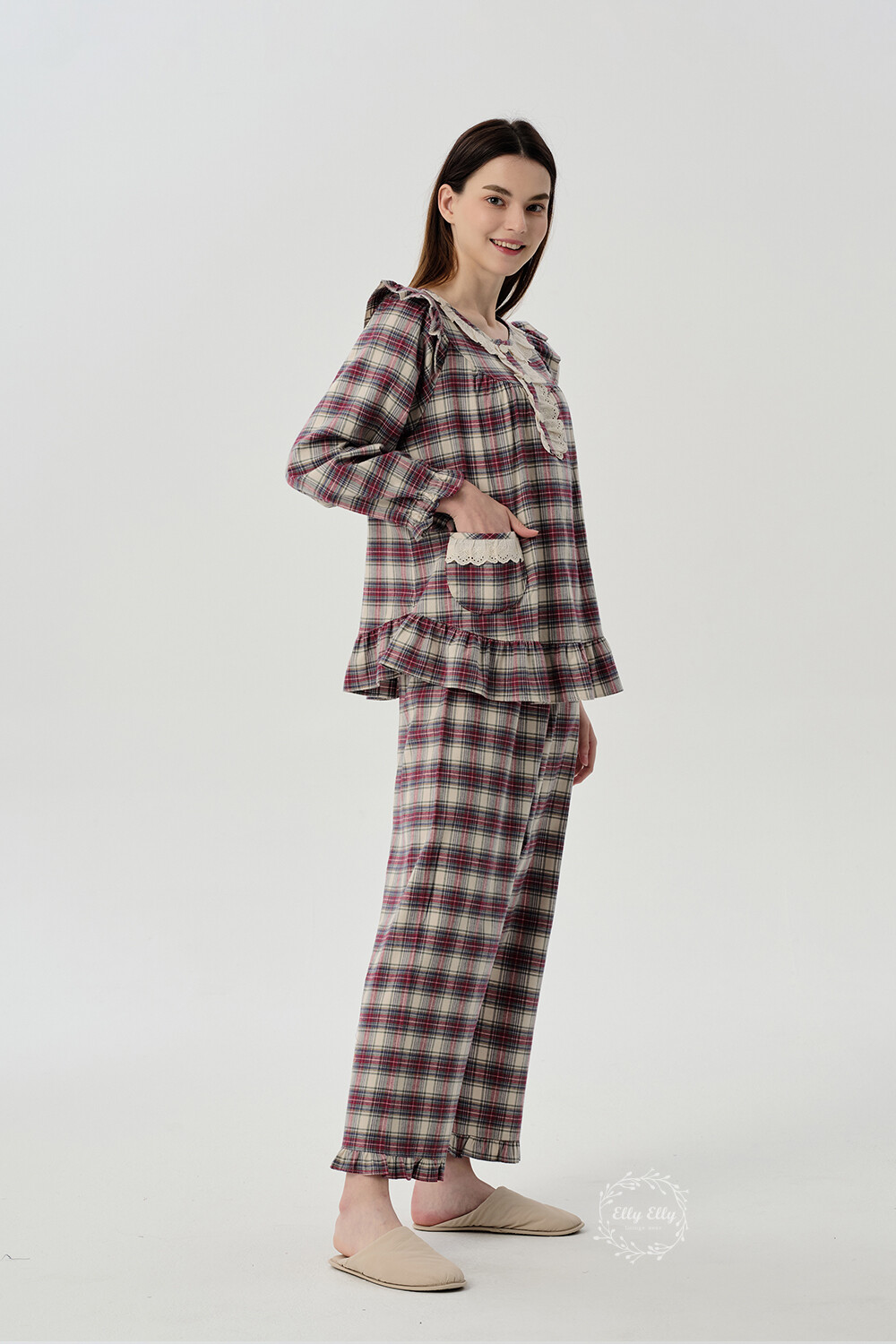 LL-686 프릴레이스 체크무늬 여성 기모 긴팔투피스
