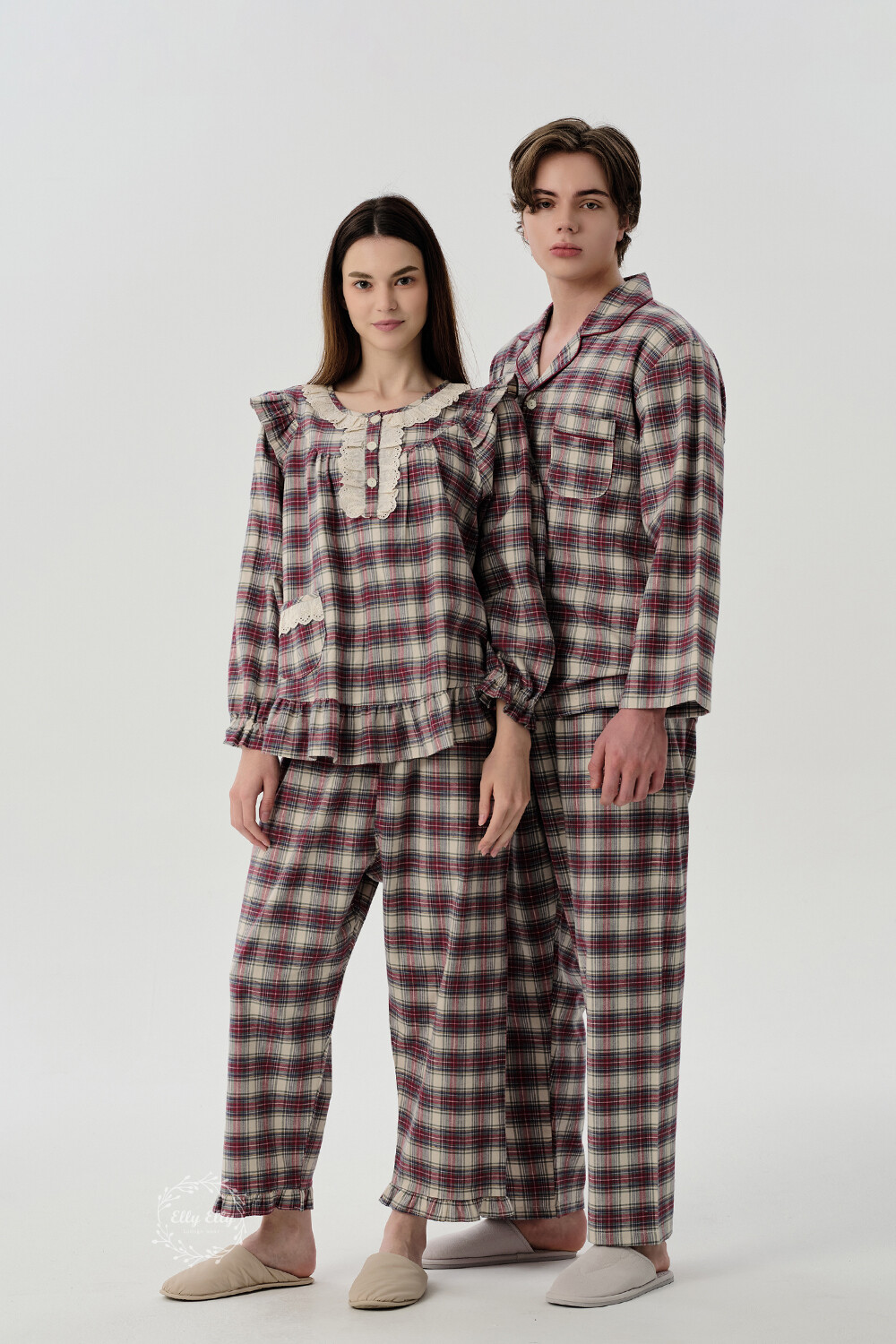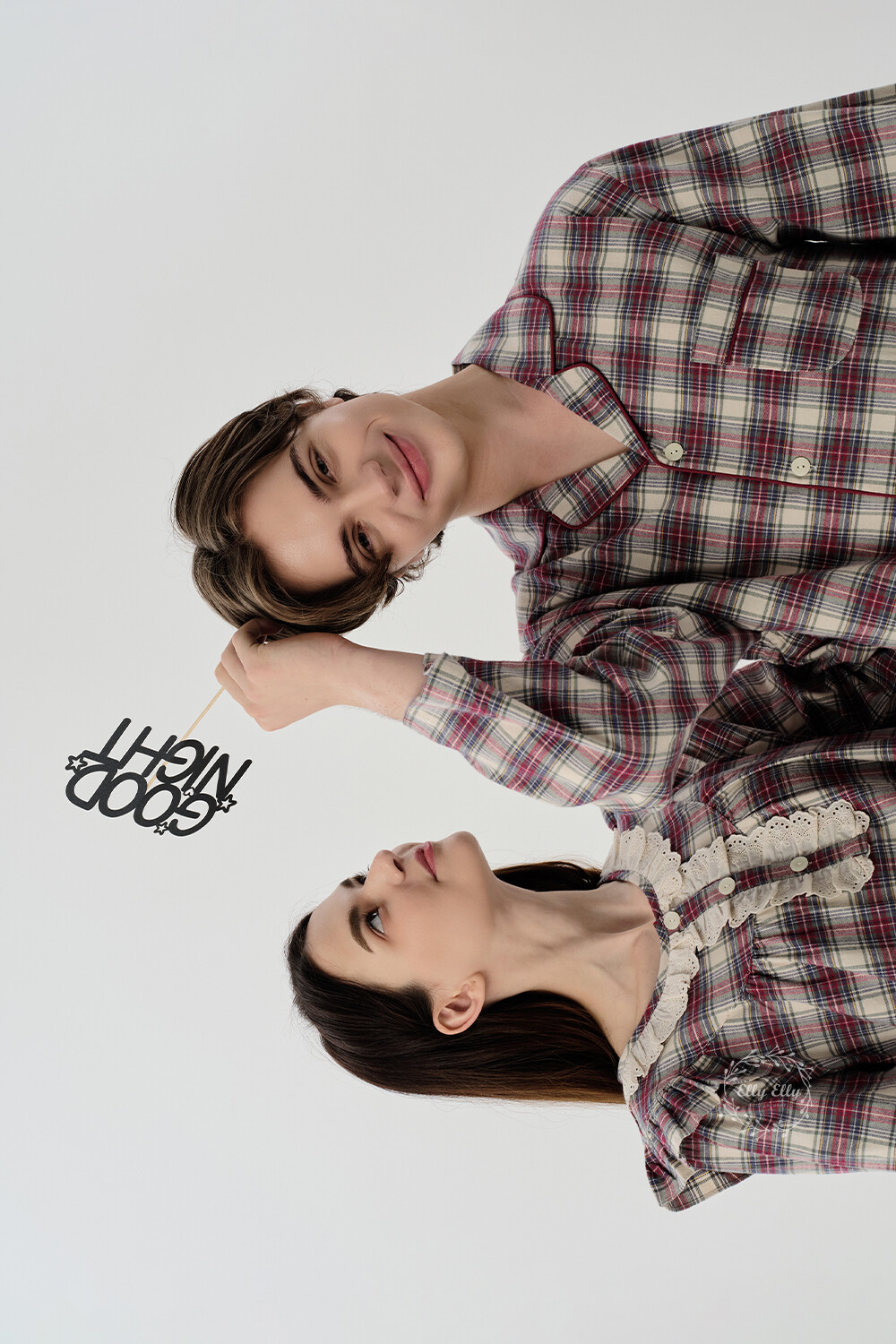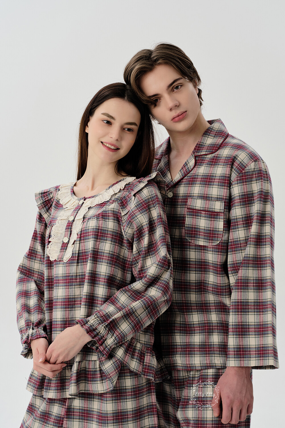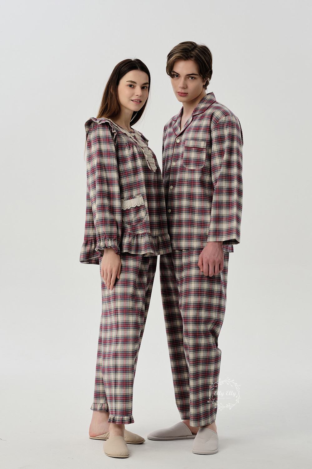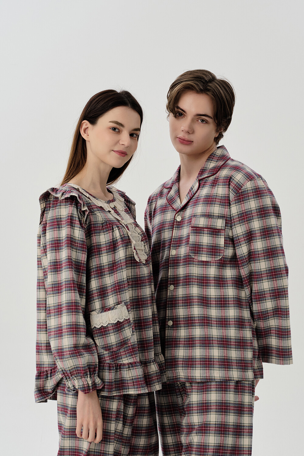 LL-686 프릴레이스 체크무늬 여성 기모 긴팔투피스