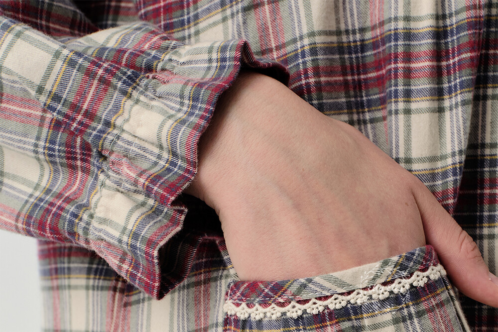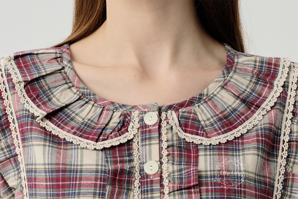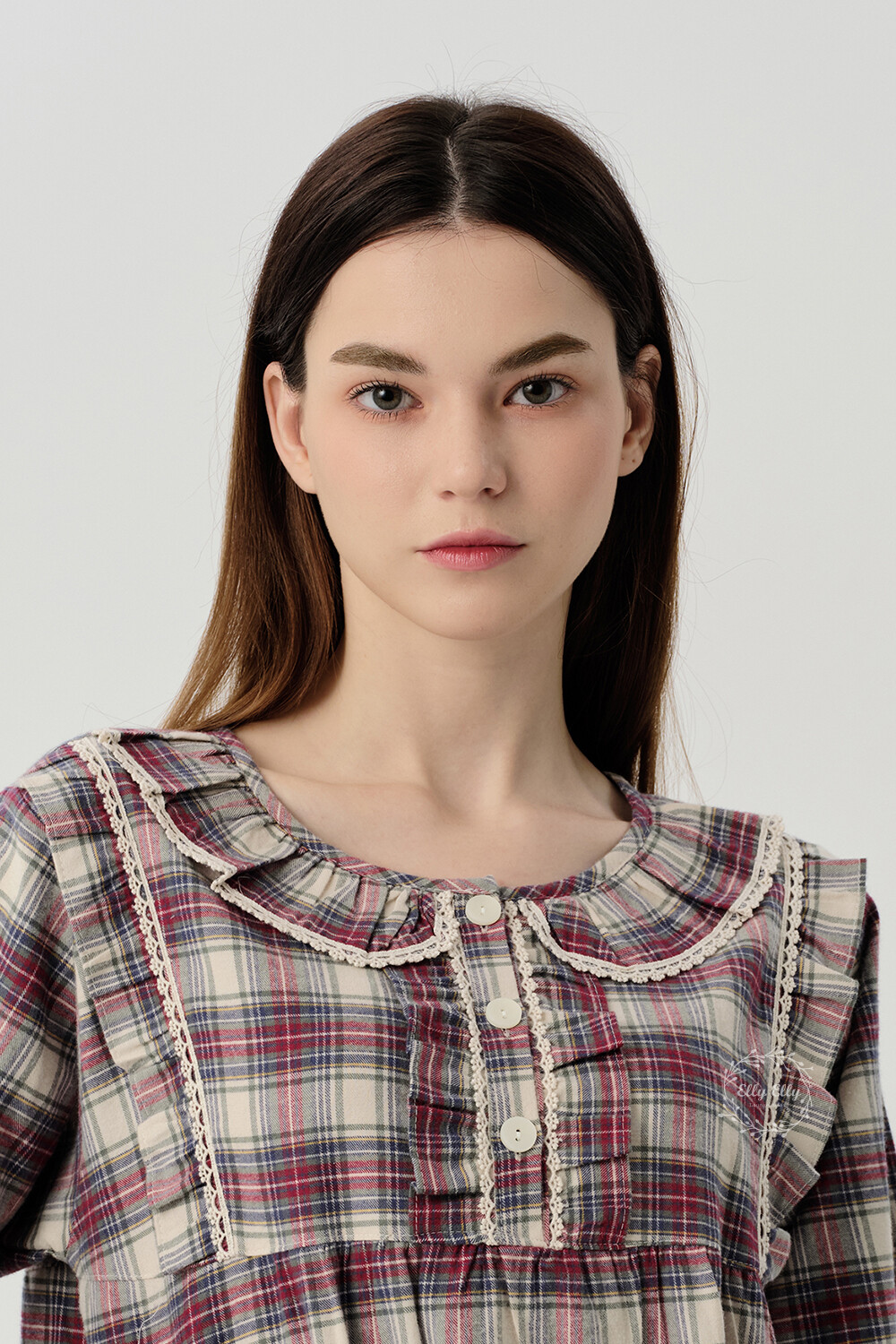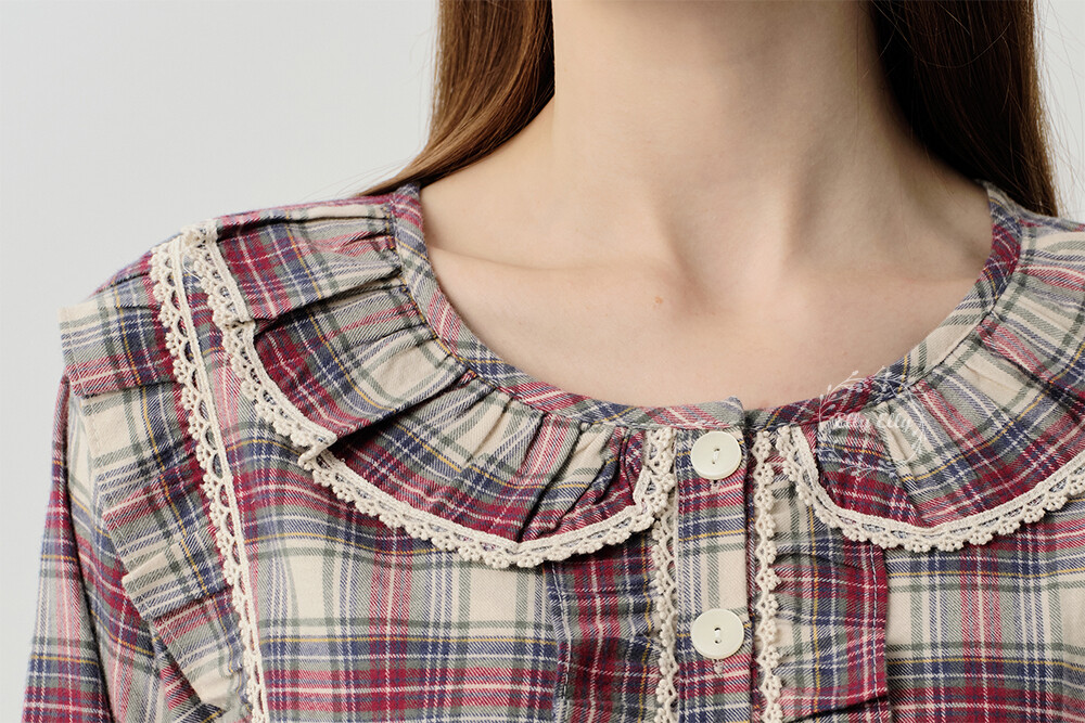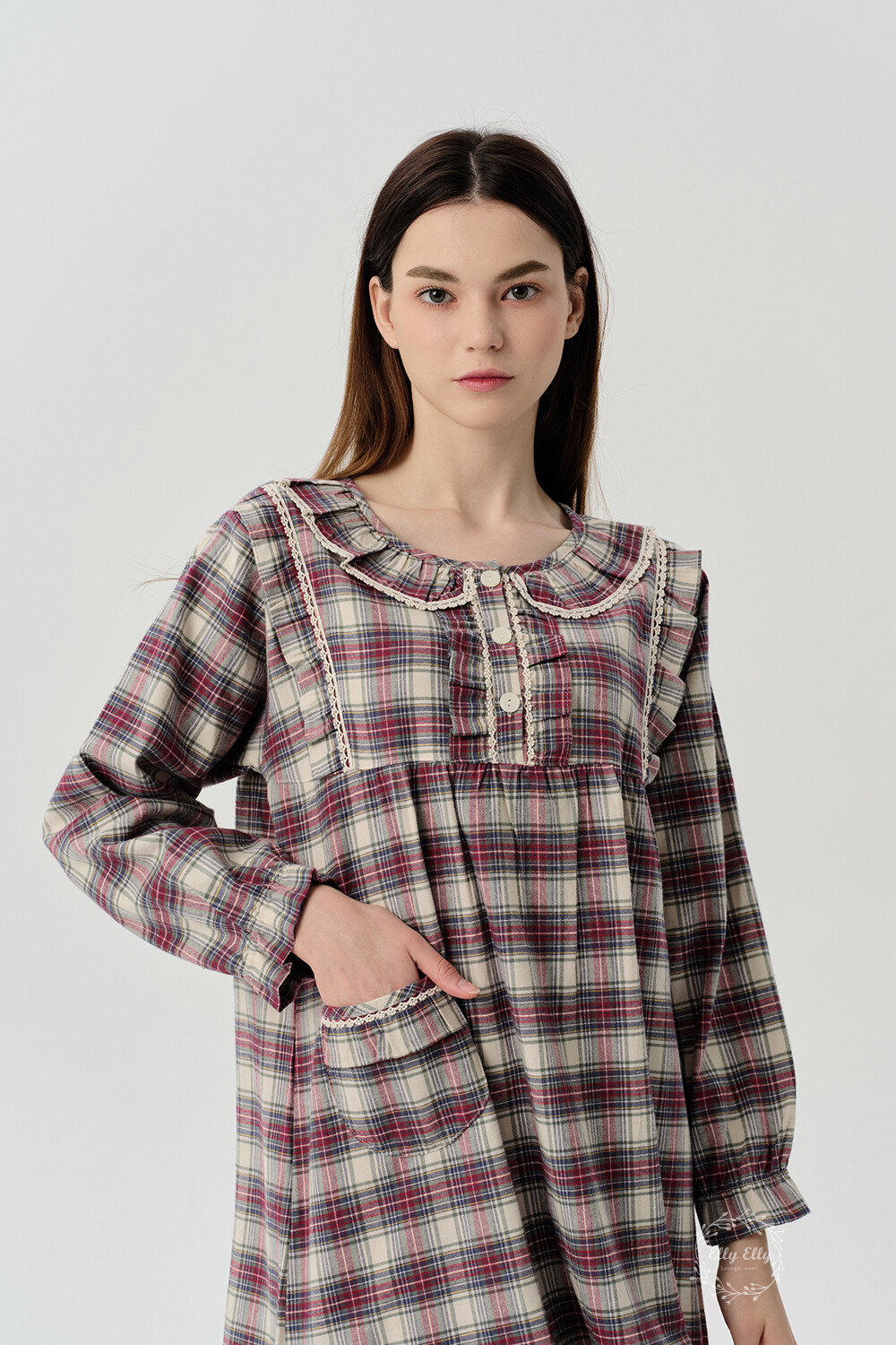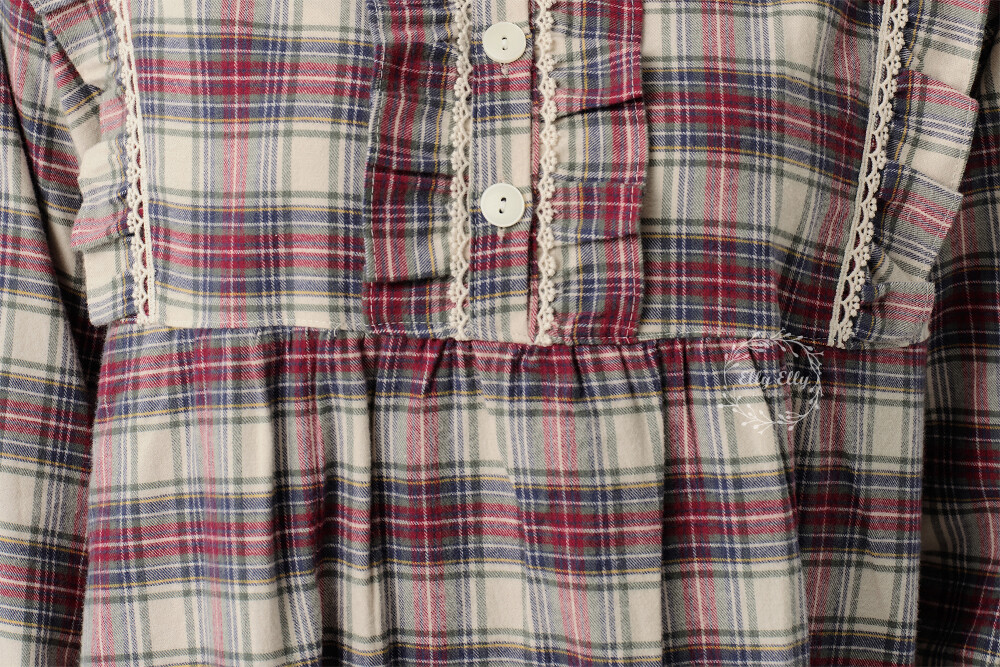 LL-687 엘리엘리 프릴레이스 체크무늬 여성 긴팔드레스 원피스
