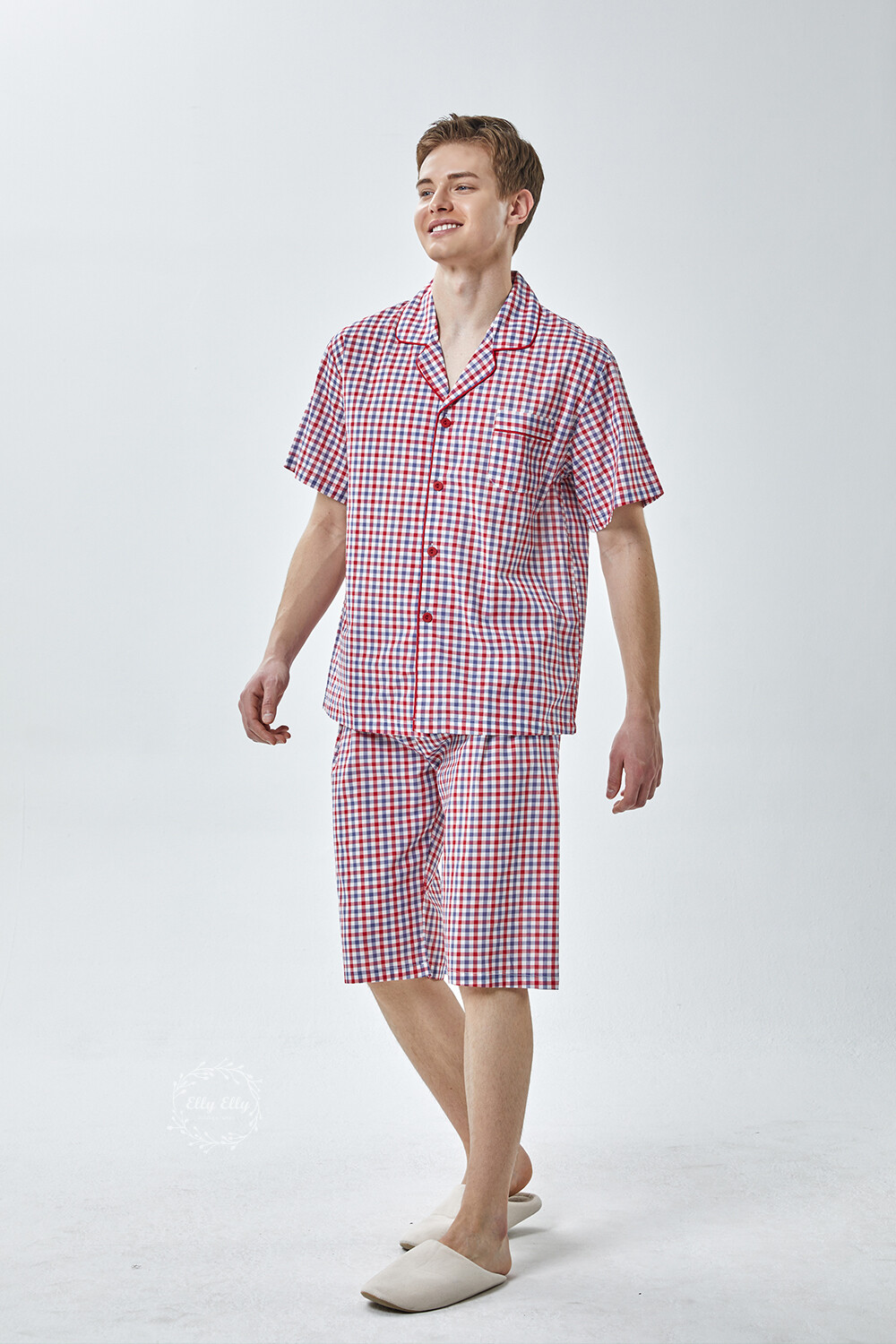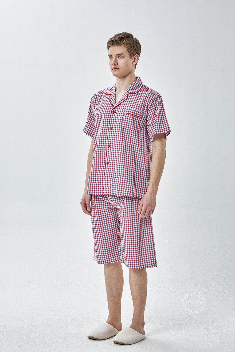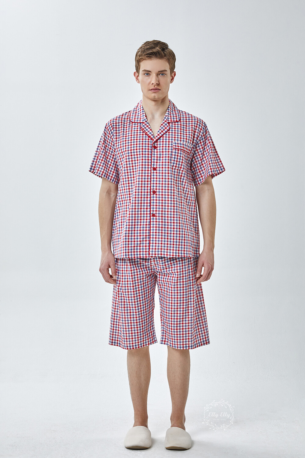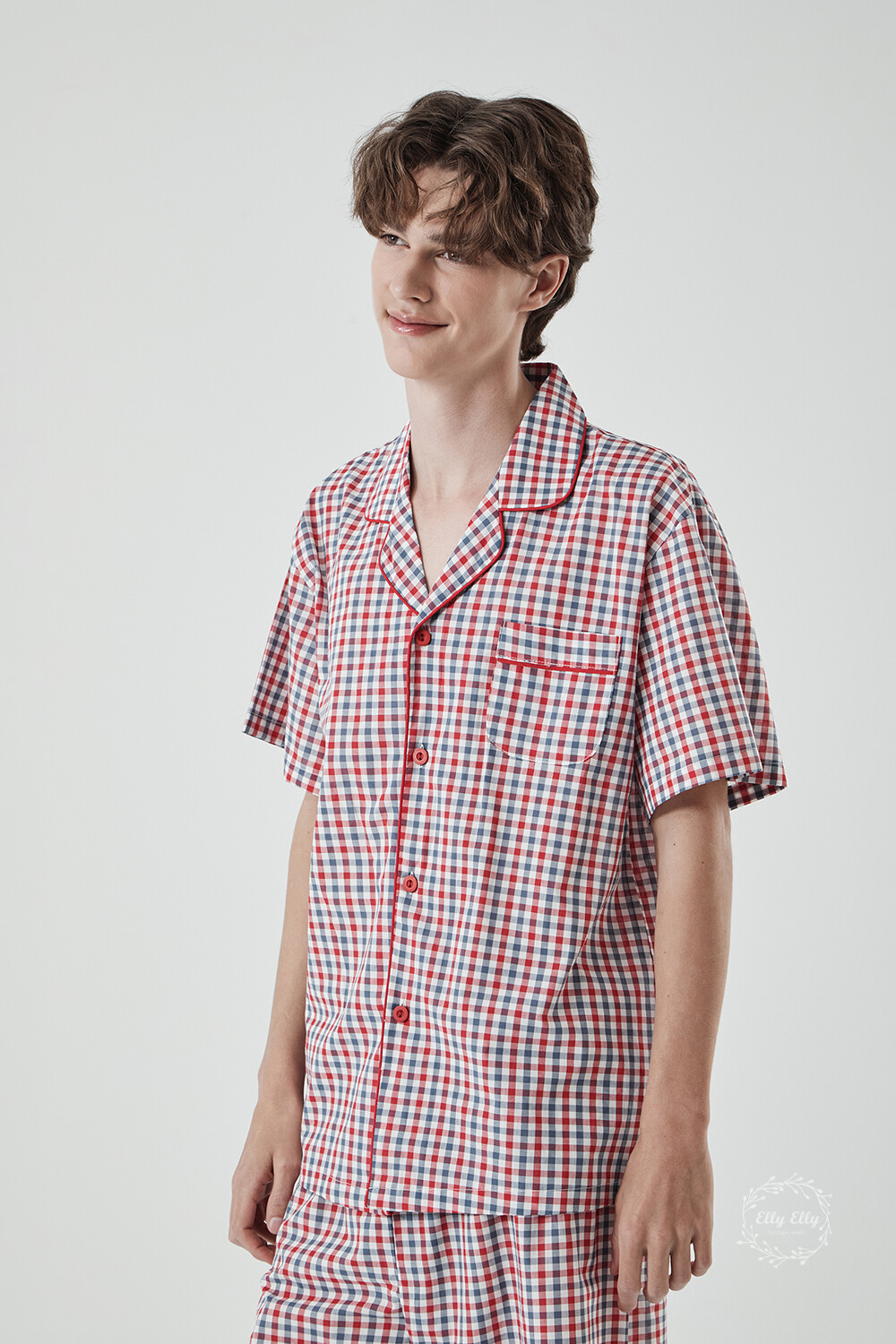 LL-704 엘리엘리 파이핑 체크무늬 남성 반팔상하