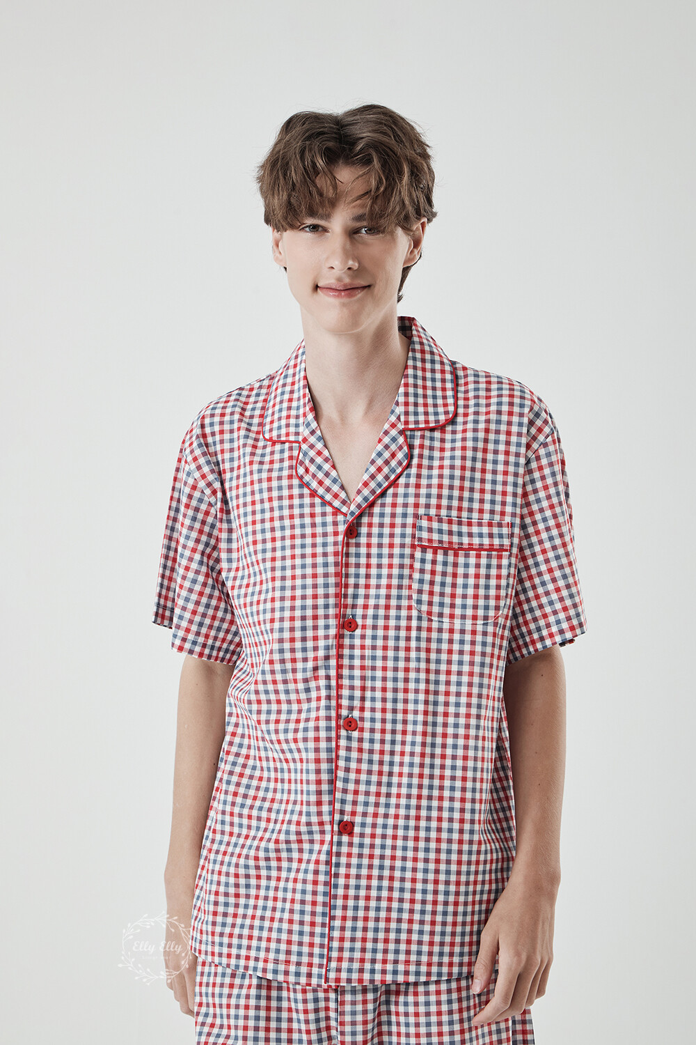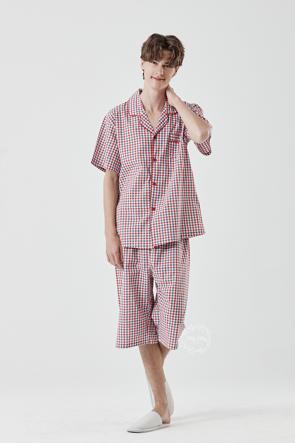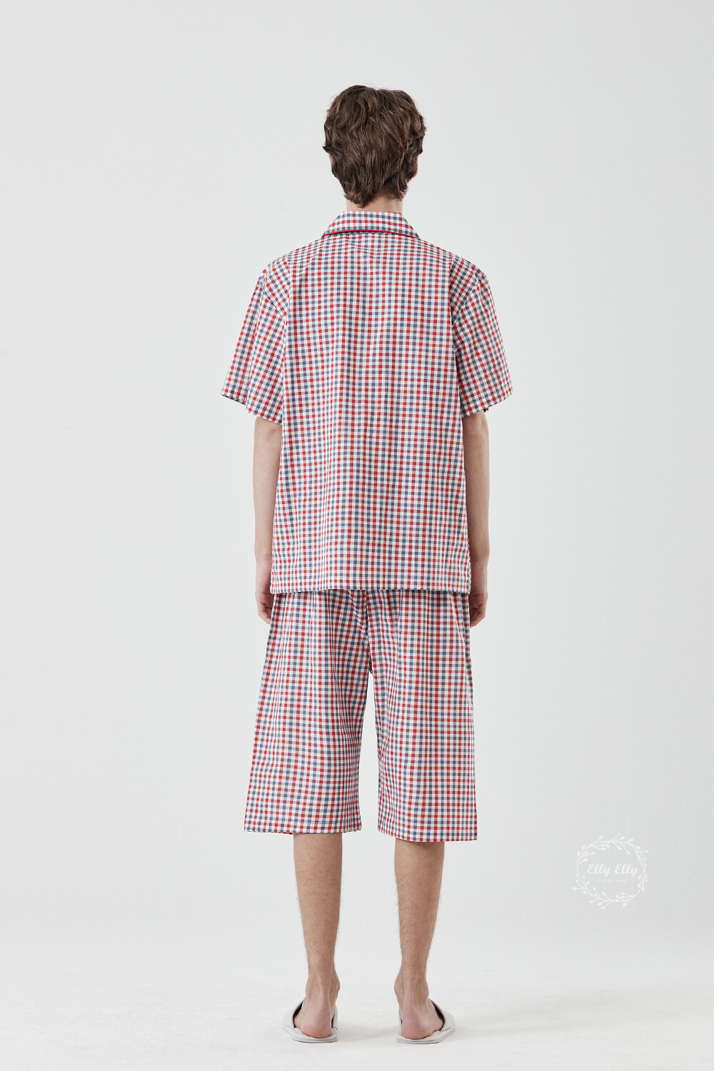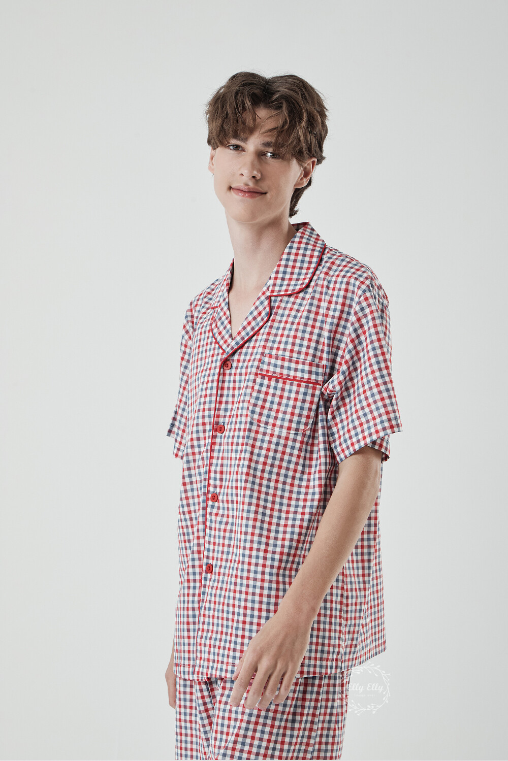 LL-704 엘리엘리 파이핑 체크무늬 남성 반팔상하