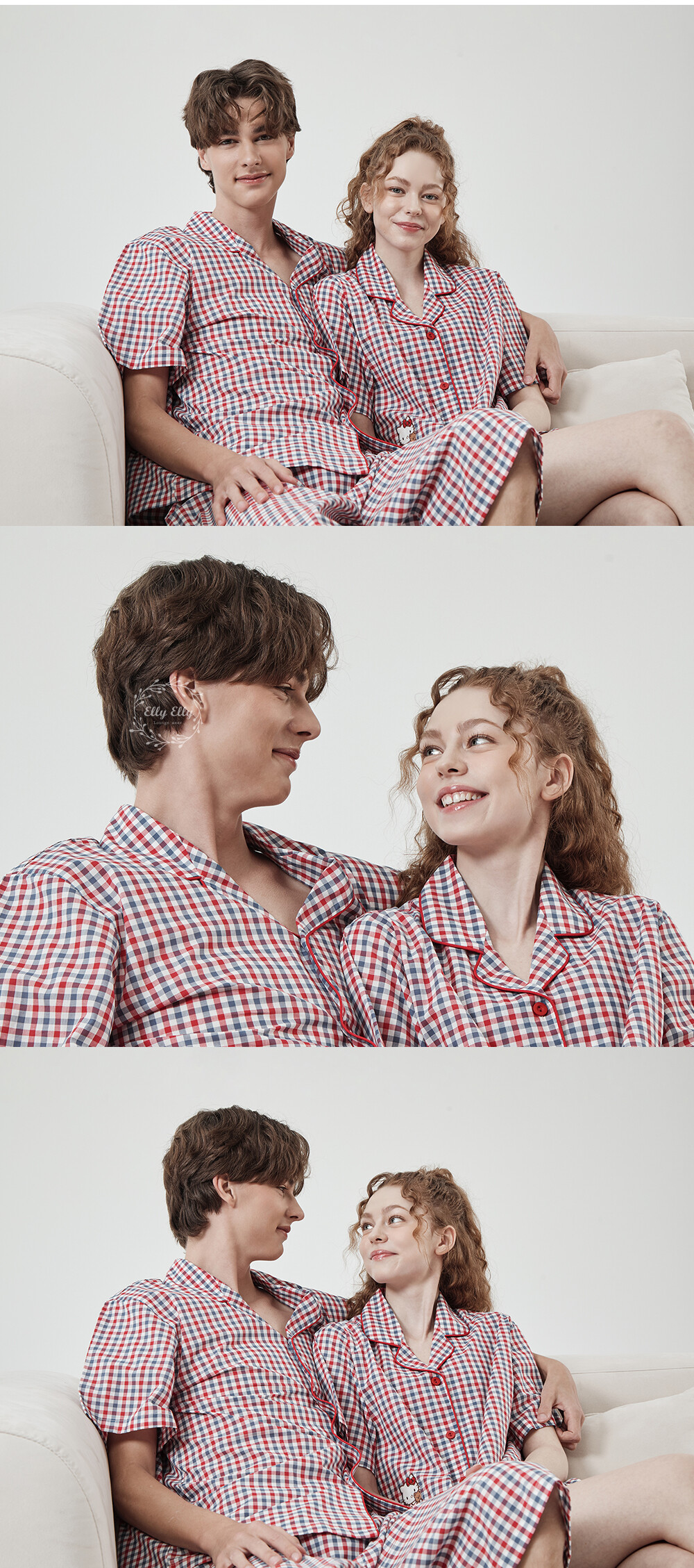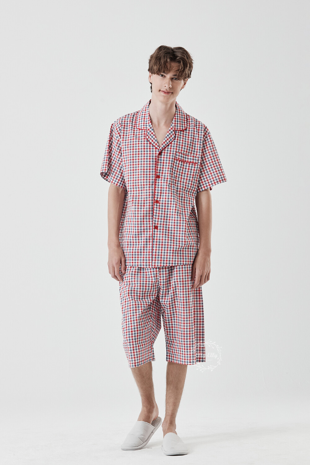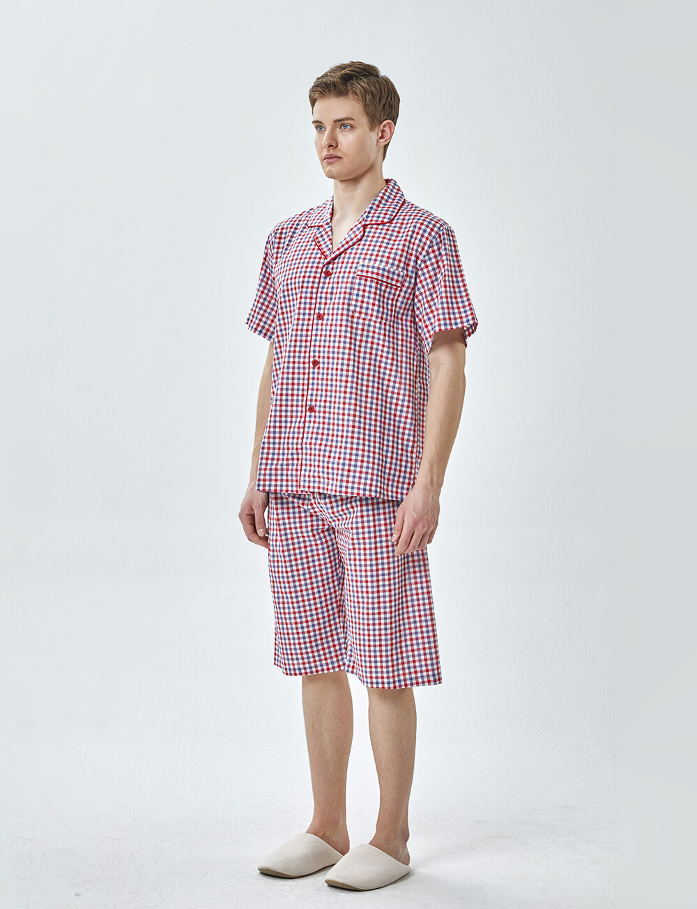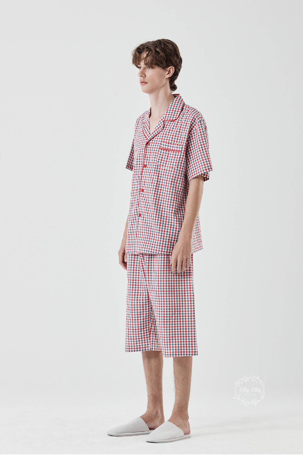 LL-704 엘리엘리 파이핑 체크무늬 남성 반팔상하
