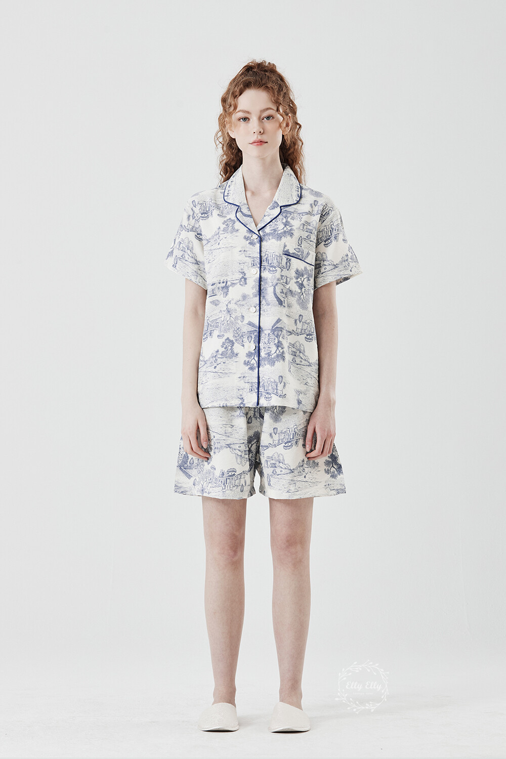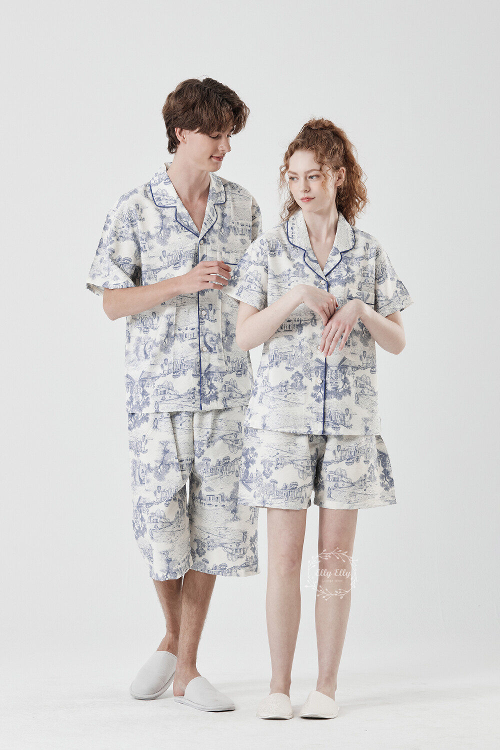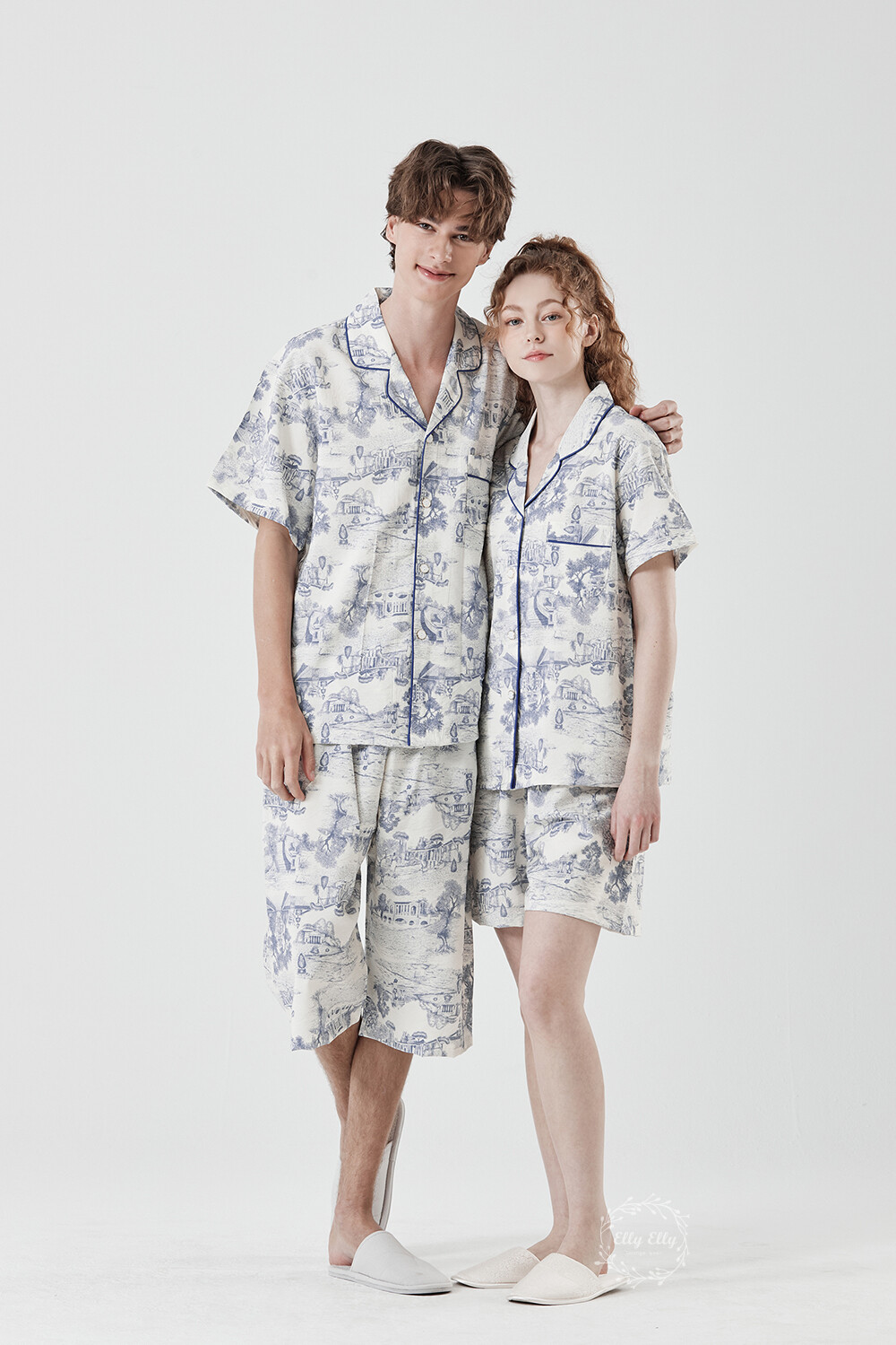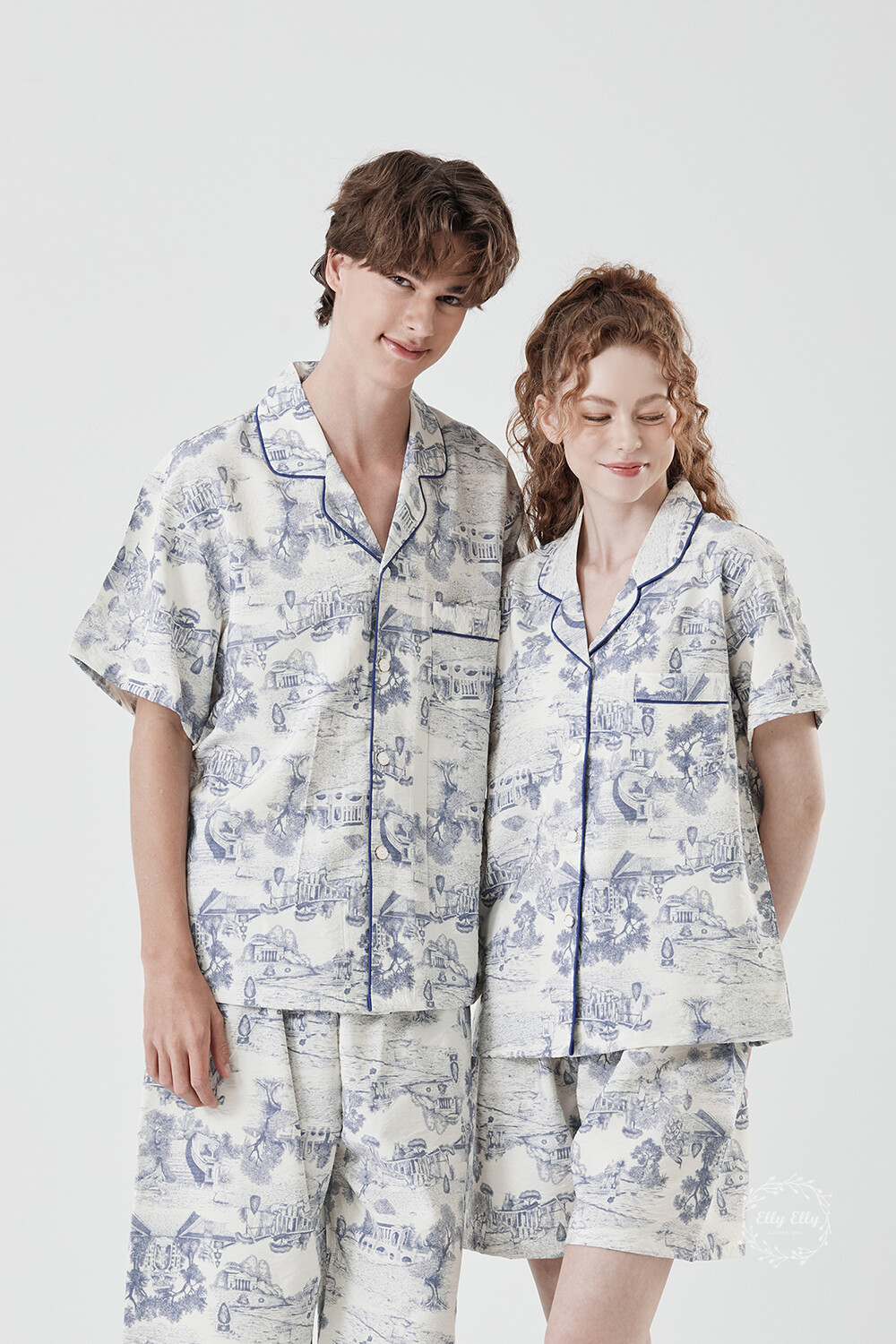 LL-706 엘리엘리 와이카라 파이핑 커플잠옷세트 반팔상하 네이비