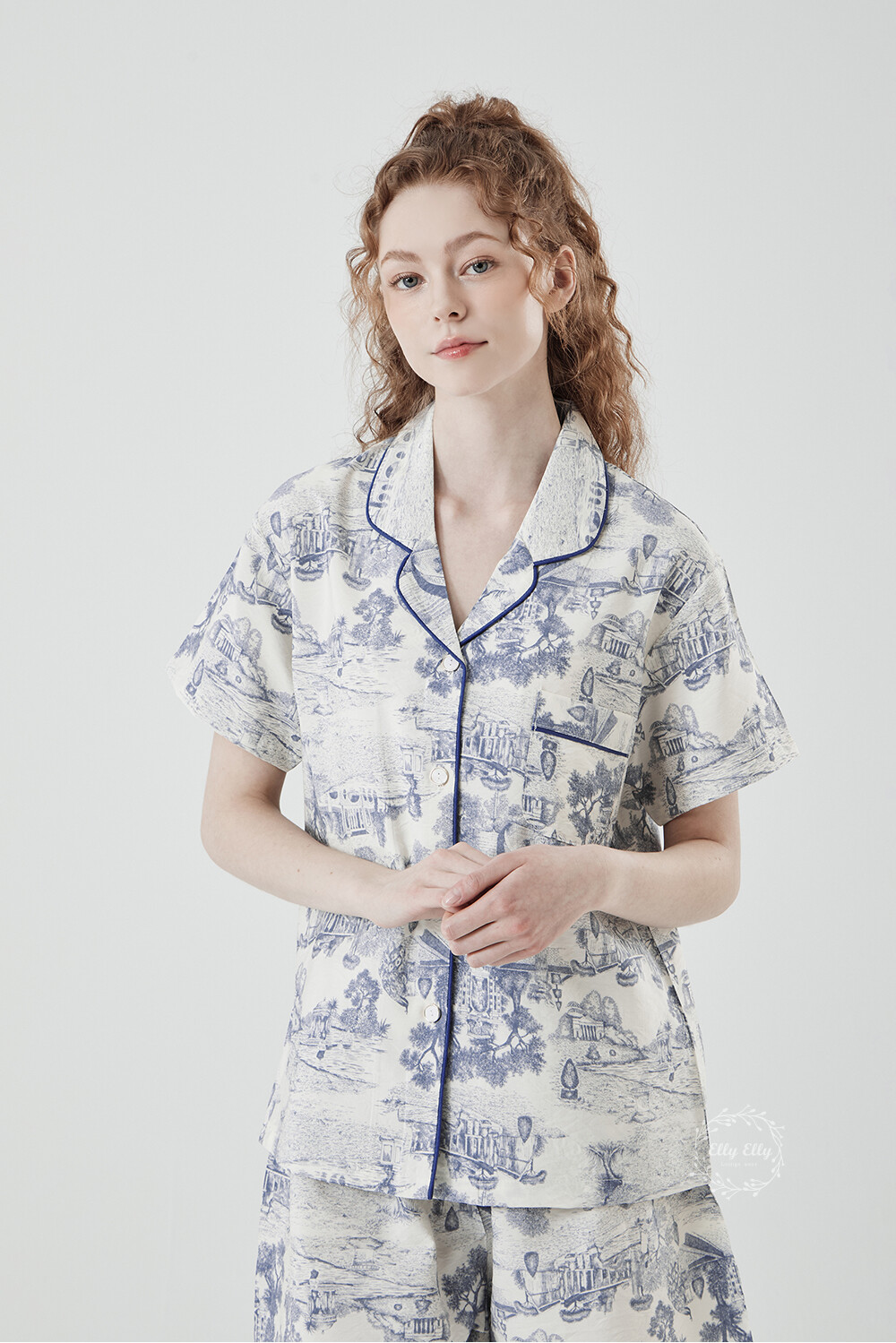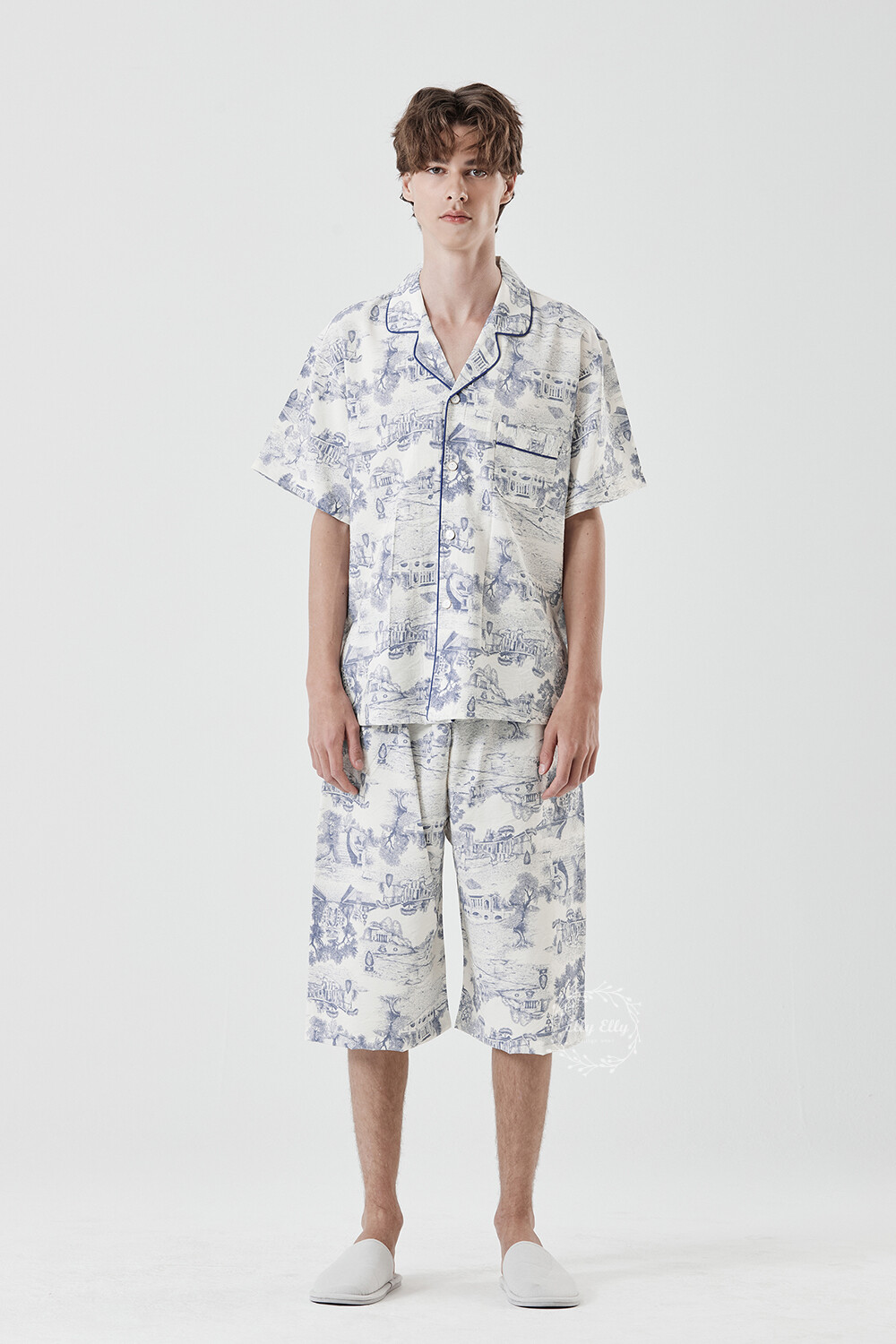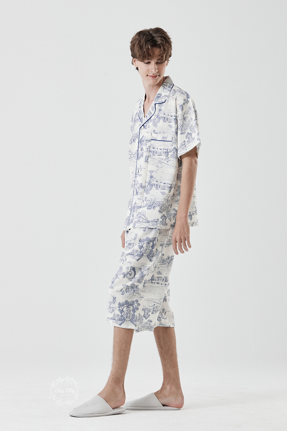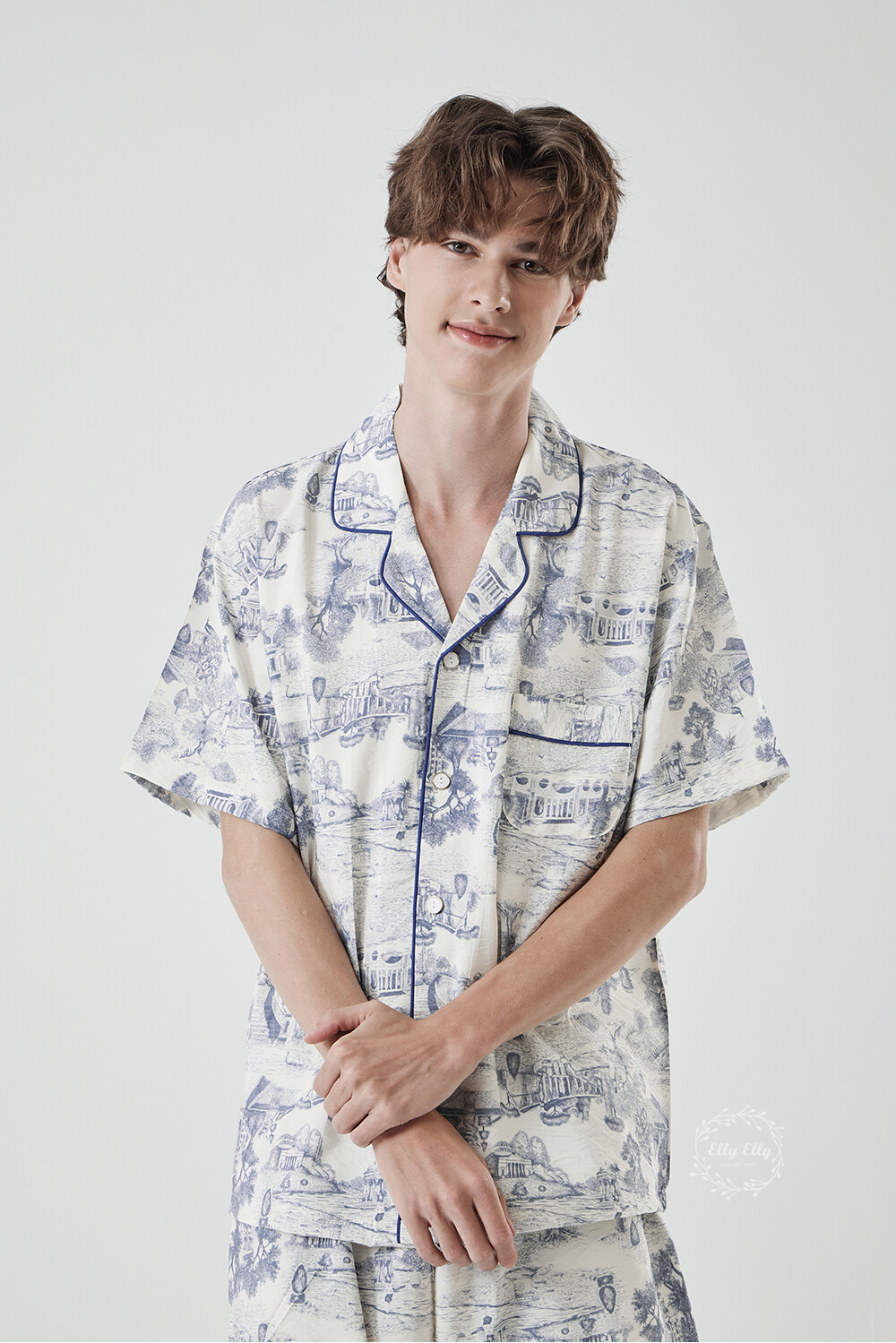 LL-706 엘리엘리 와이카라 파이핑 커플잠옷세트 반팔상하 네이비