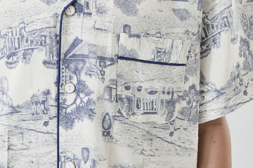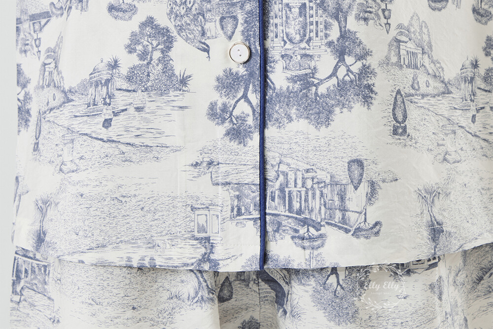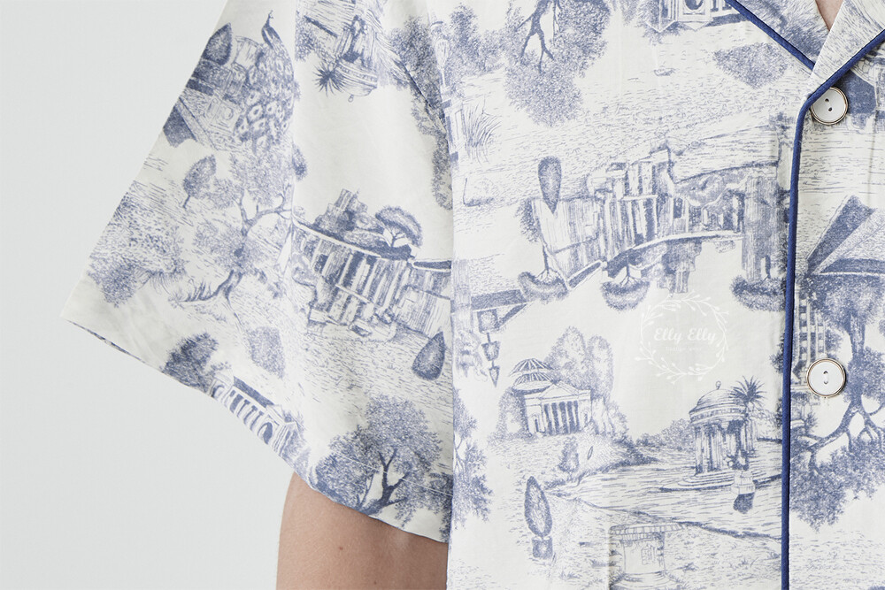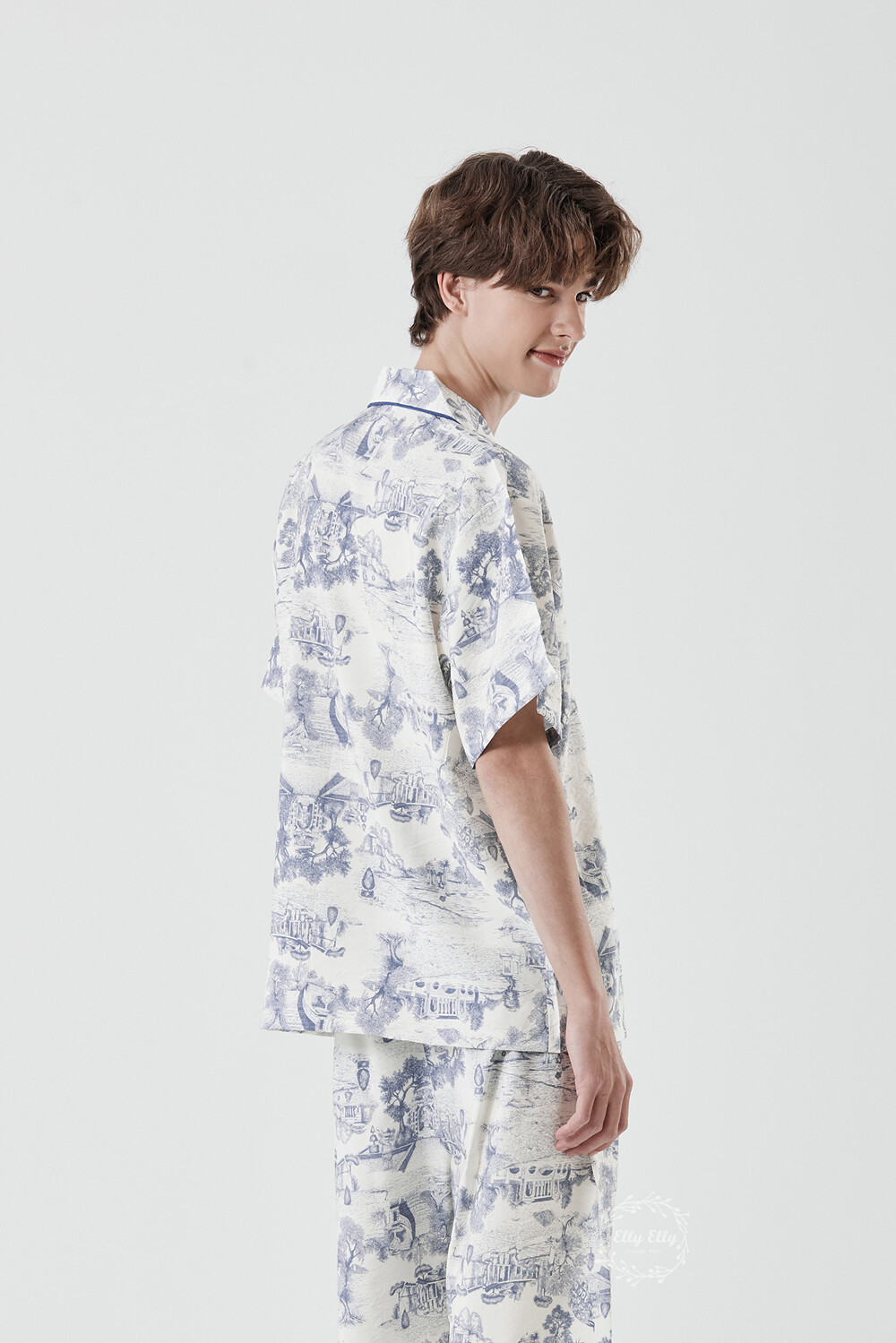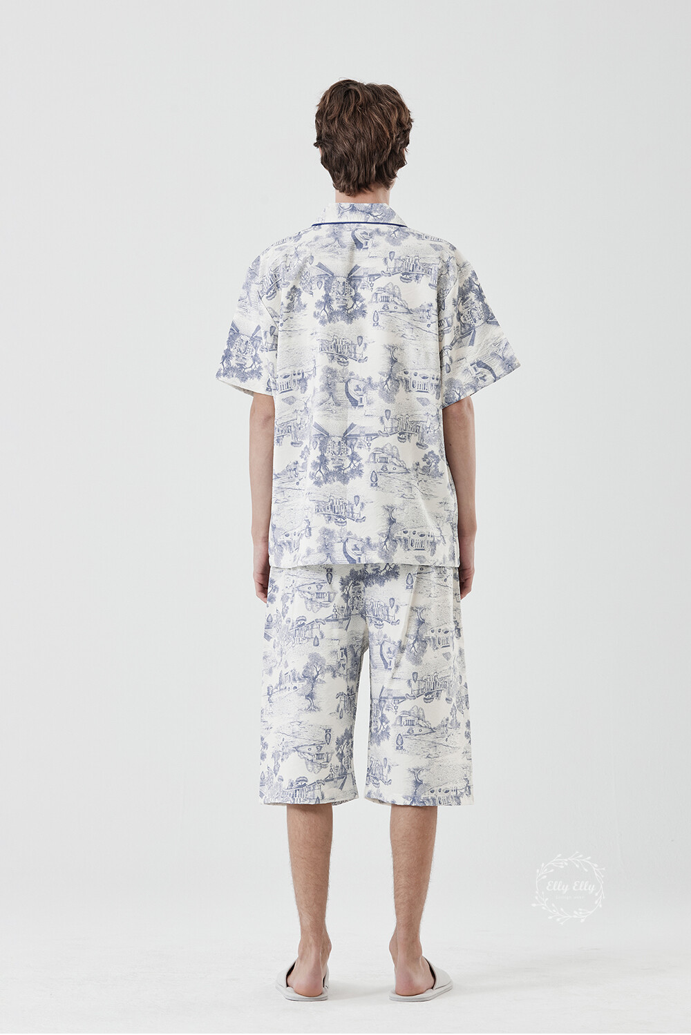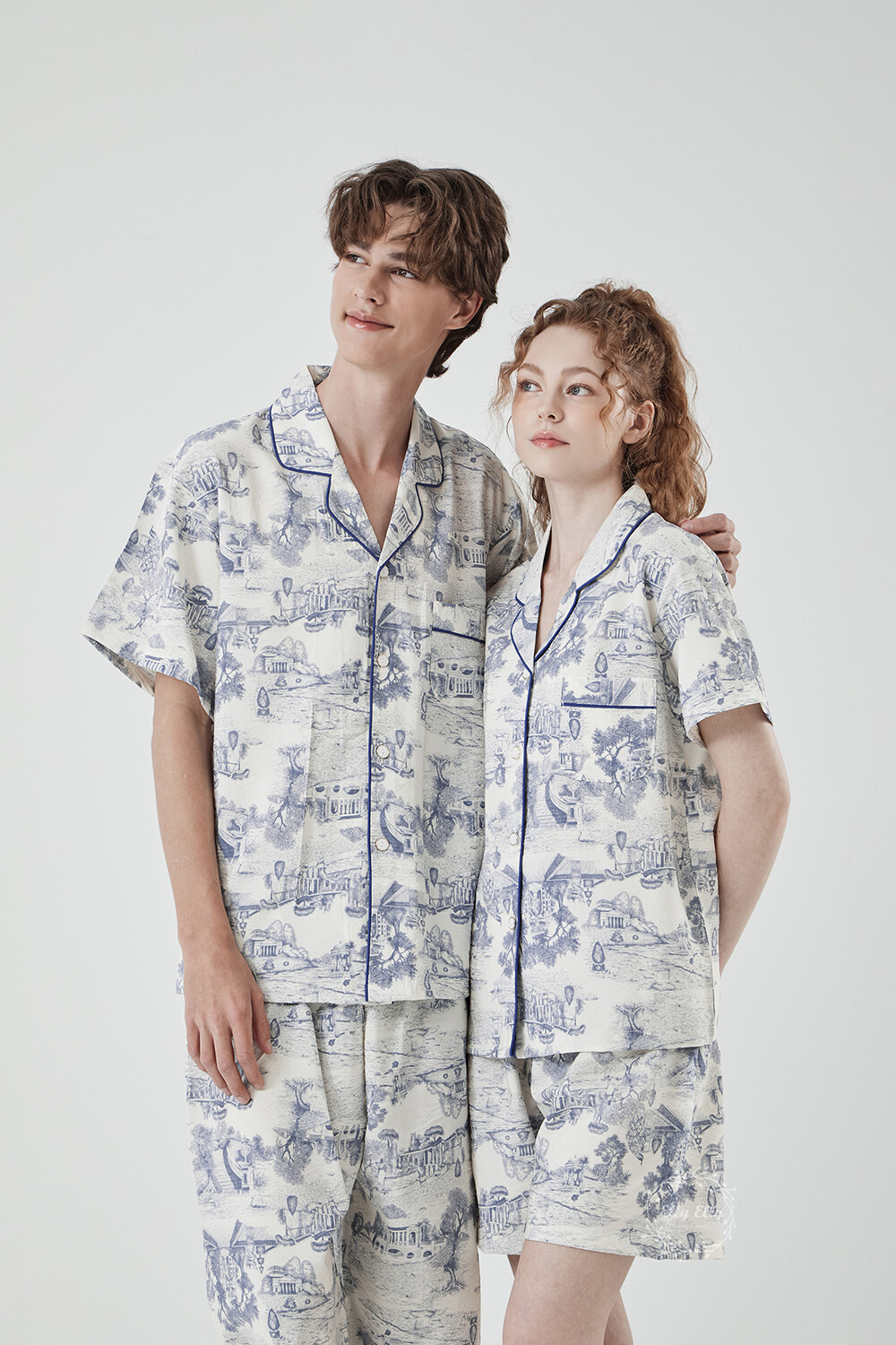 LL-706 엘리엘리 와이카라 파이핑 커플잠옷세트 반팔상하 네이비