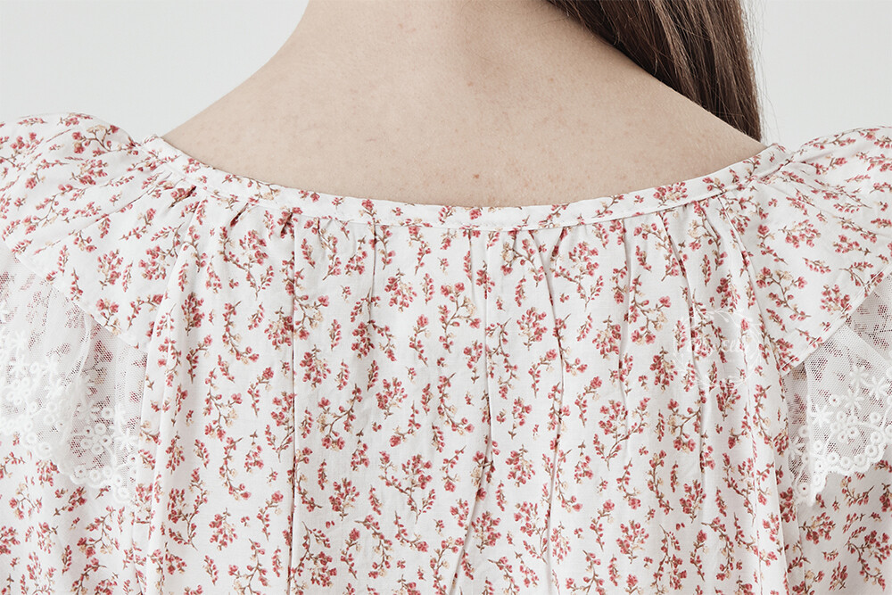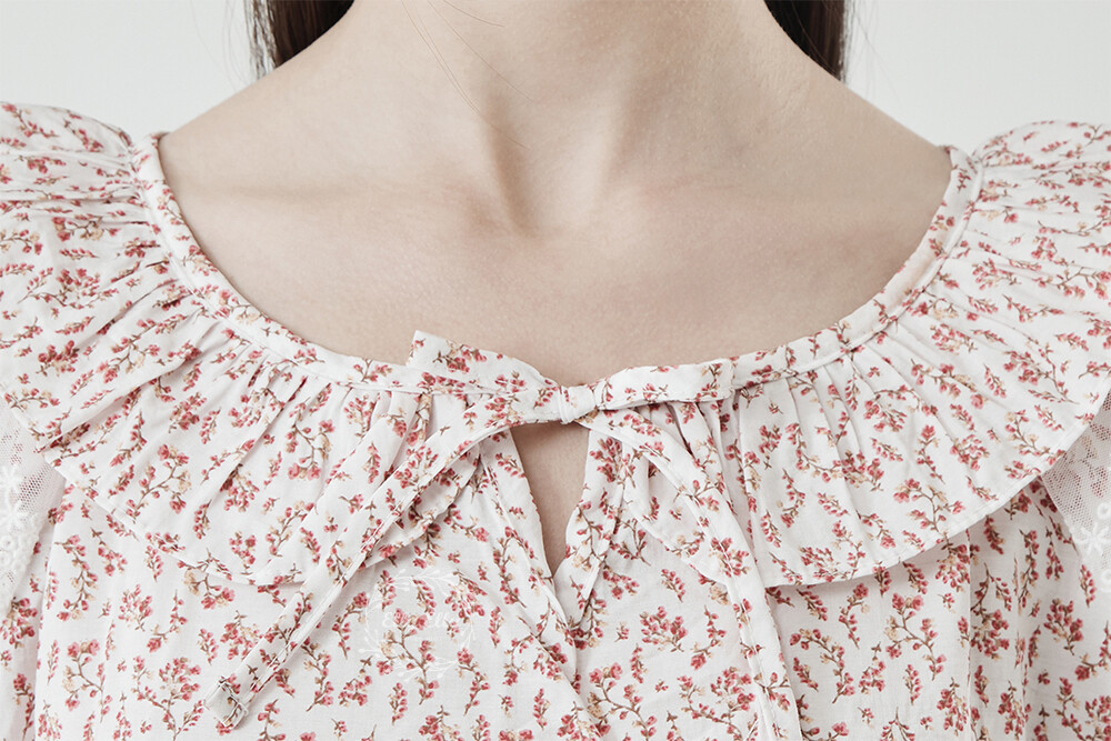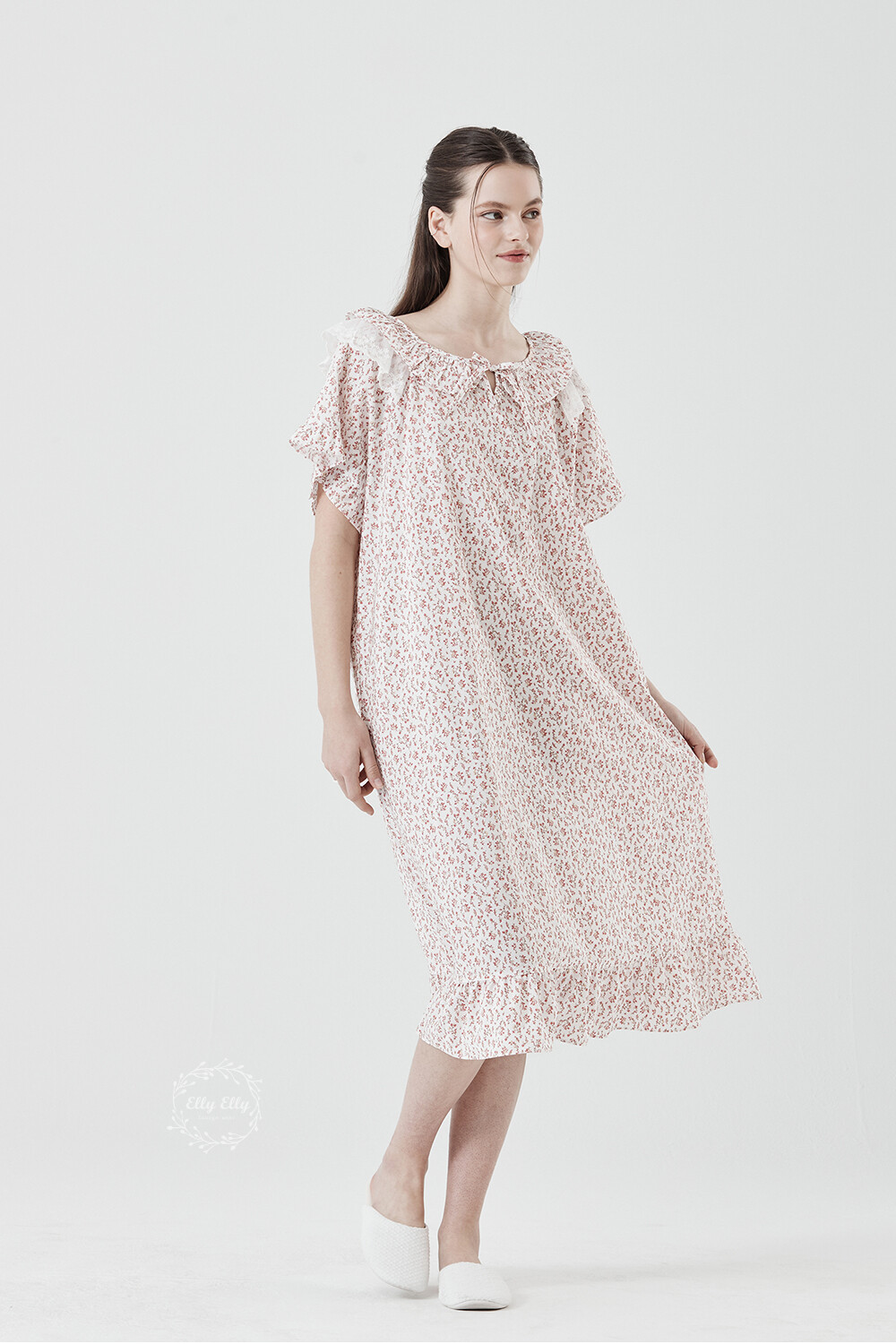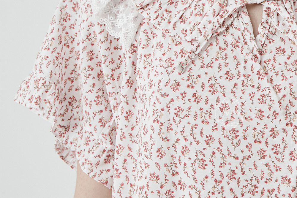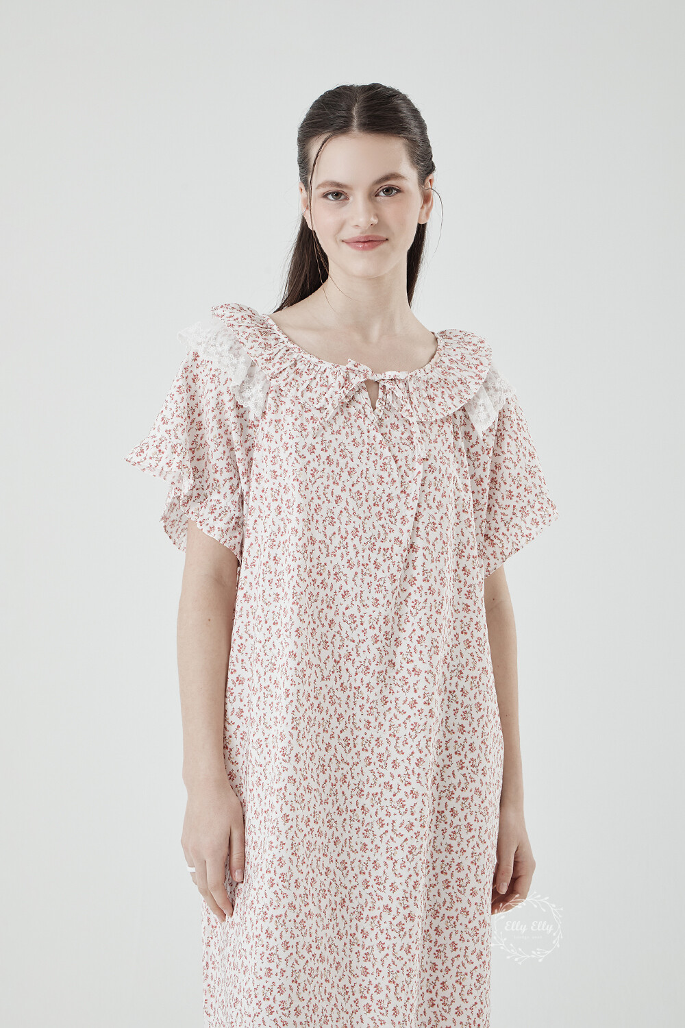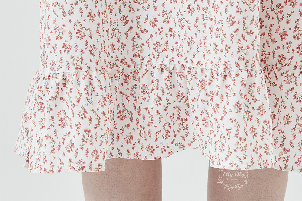 LL-716 엘리엘리 정품 잔꽃 프릴레이스 여성 반팔드레스 레드