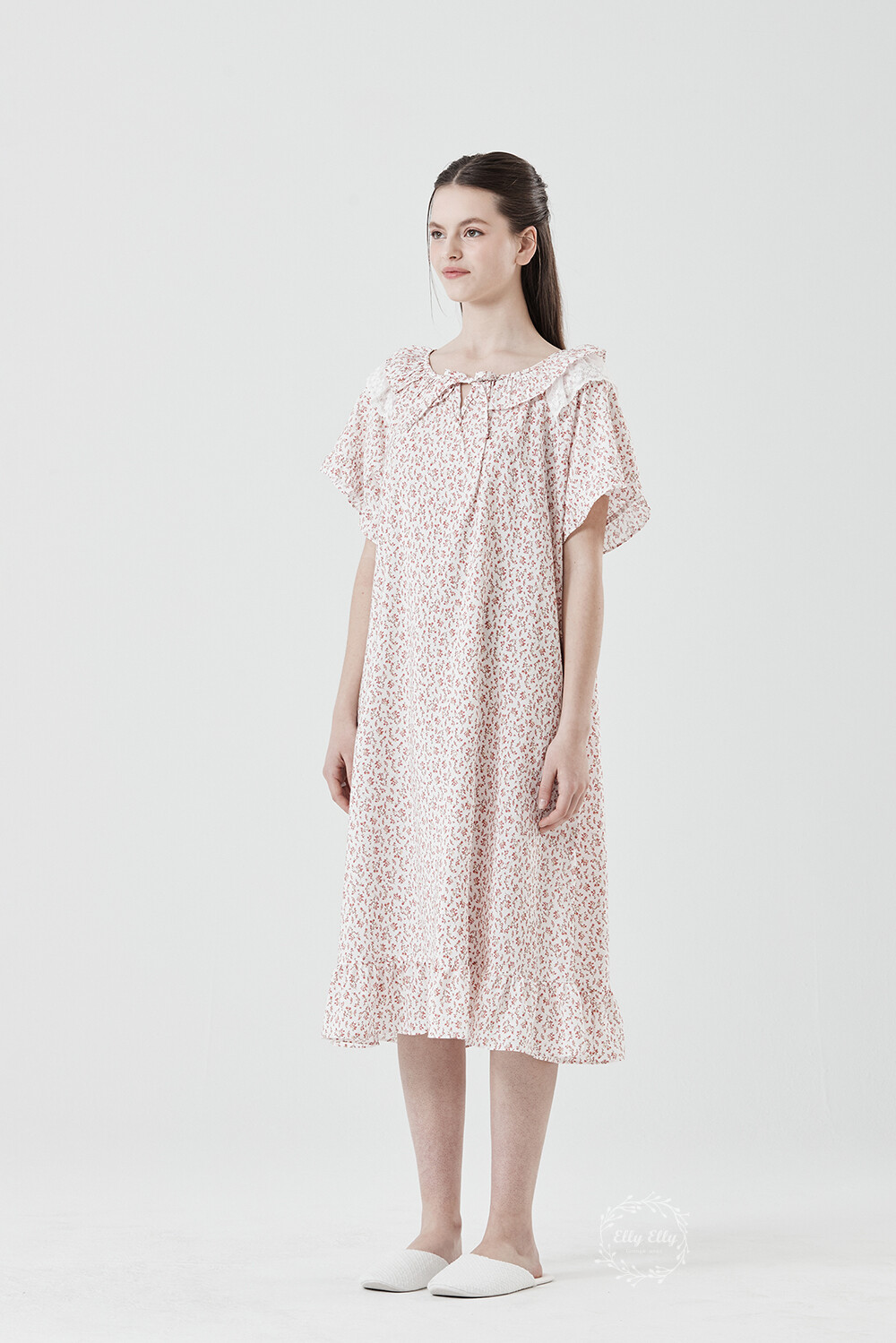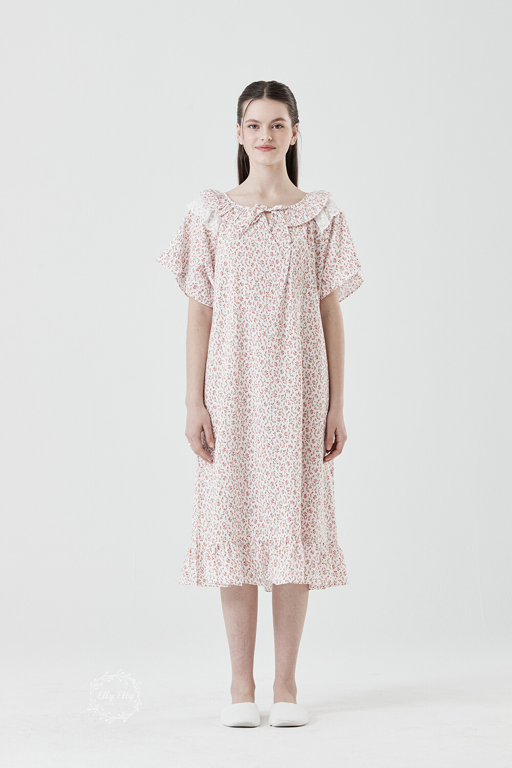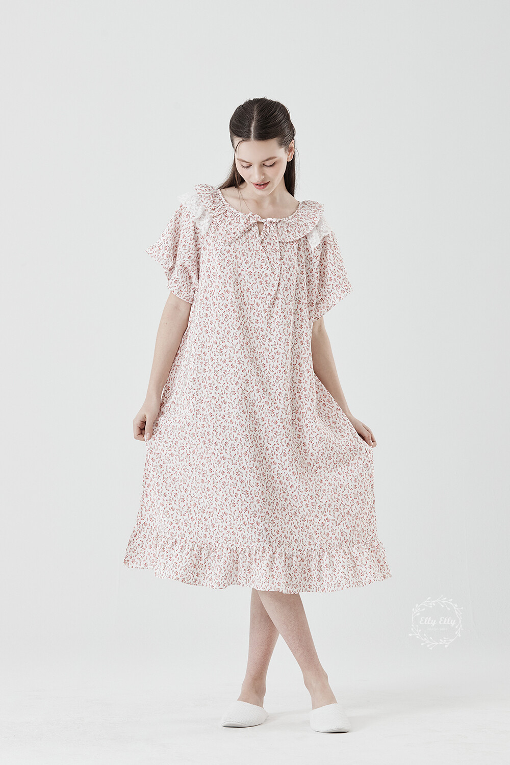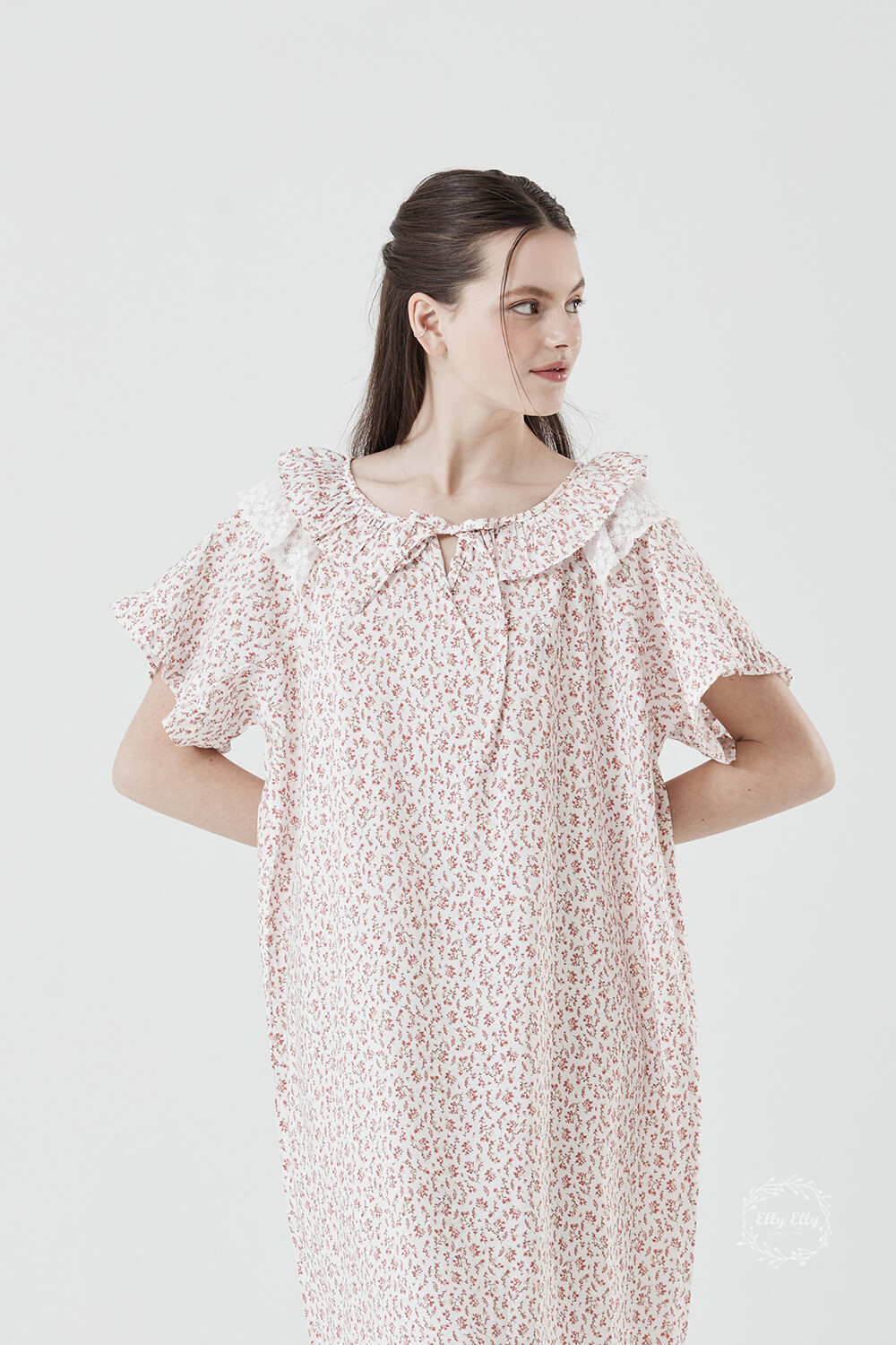 LL-716 엘리엘리 정품 잔꽃 프릴레이스 여성 반팔드레스 레드