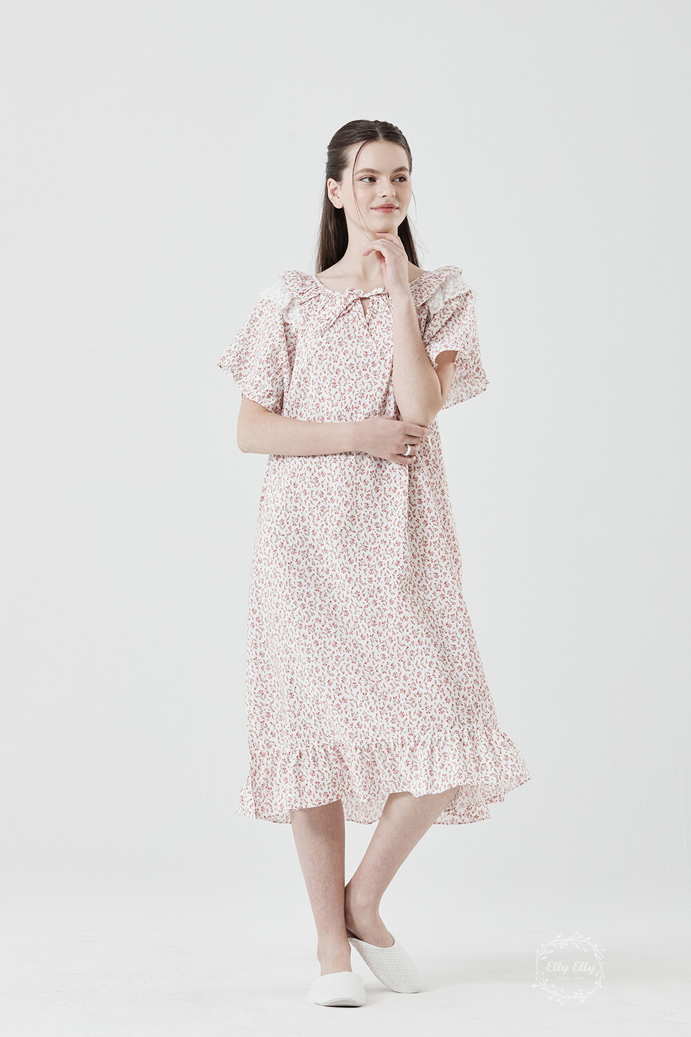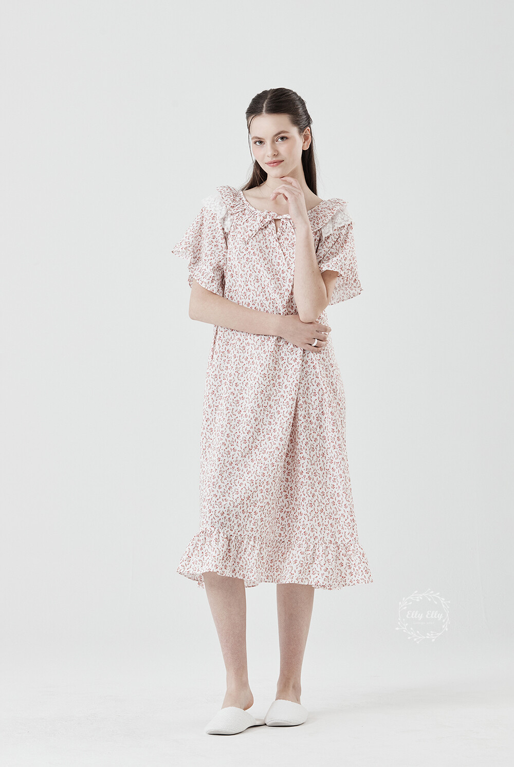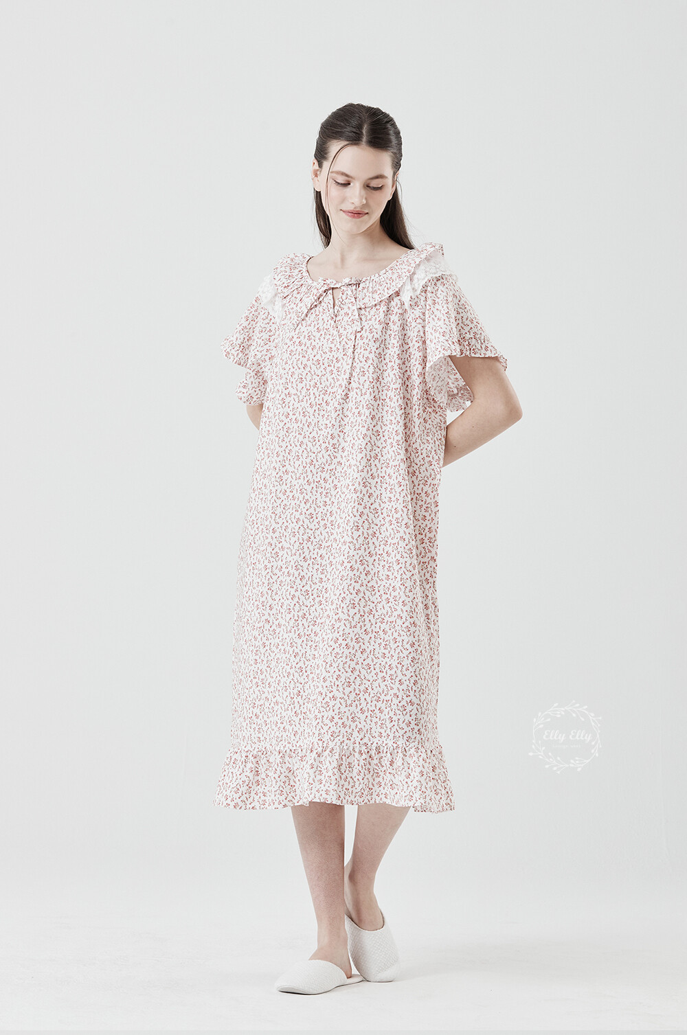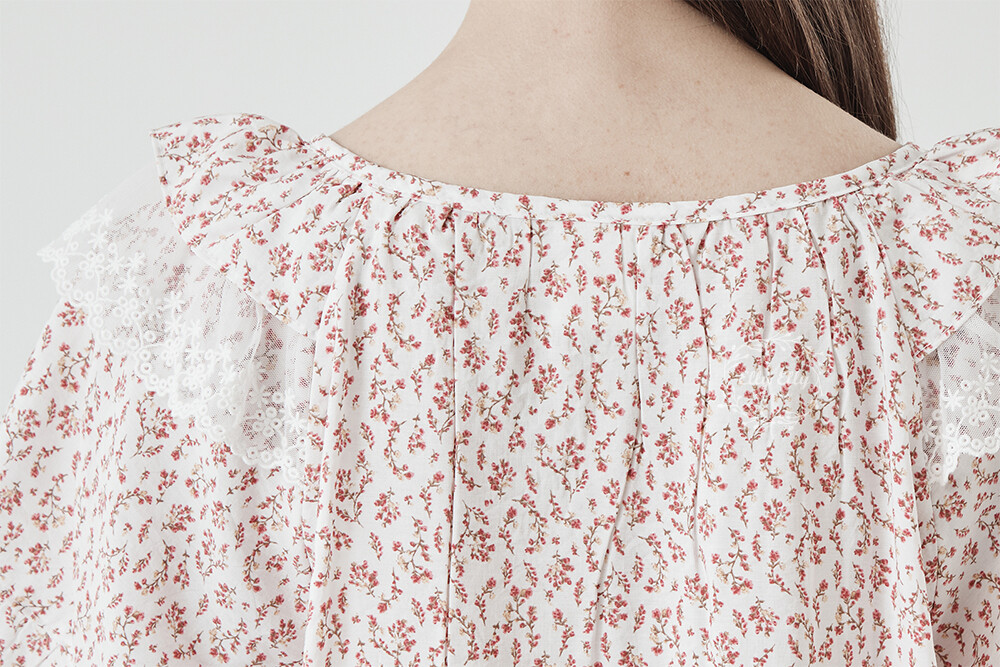 LL-716 엘리엘리 정품 잔꽃 프릴레이스 여성 반팔드레스 레드