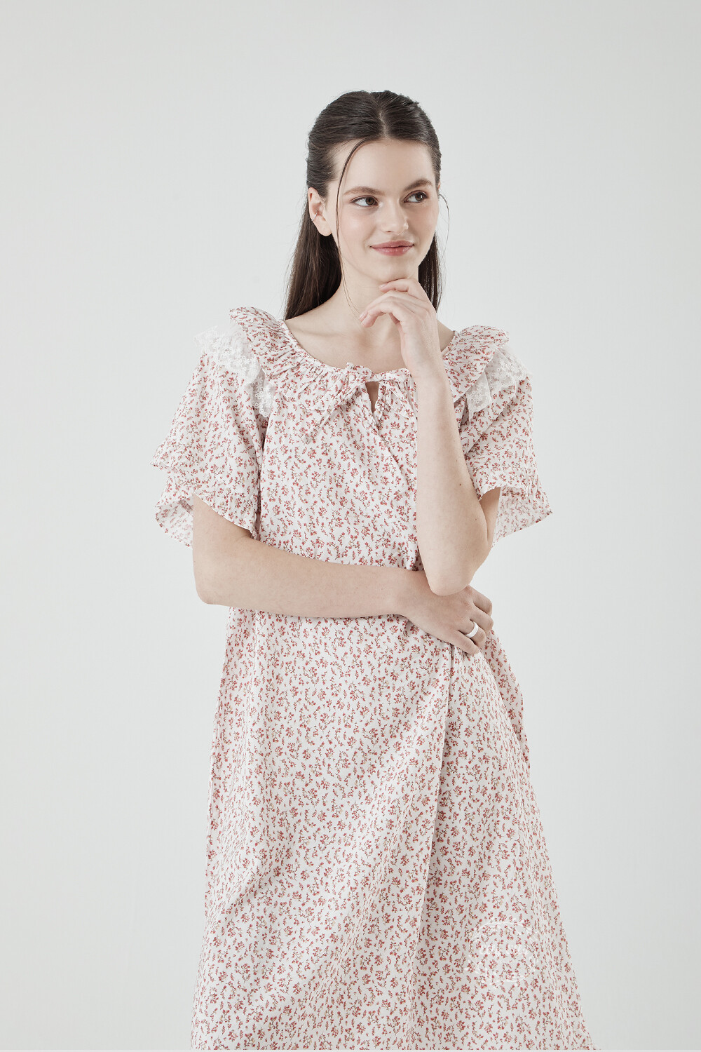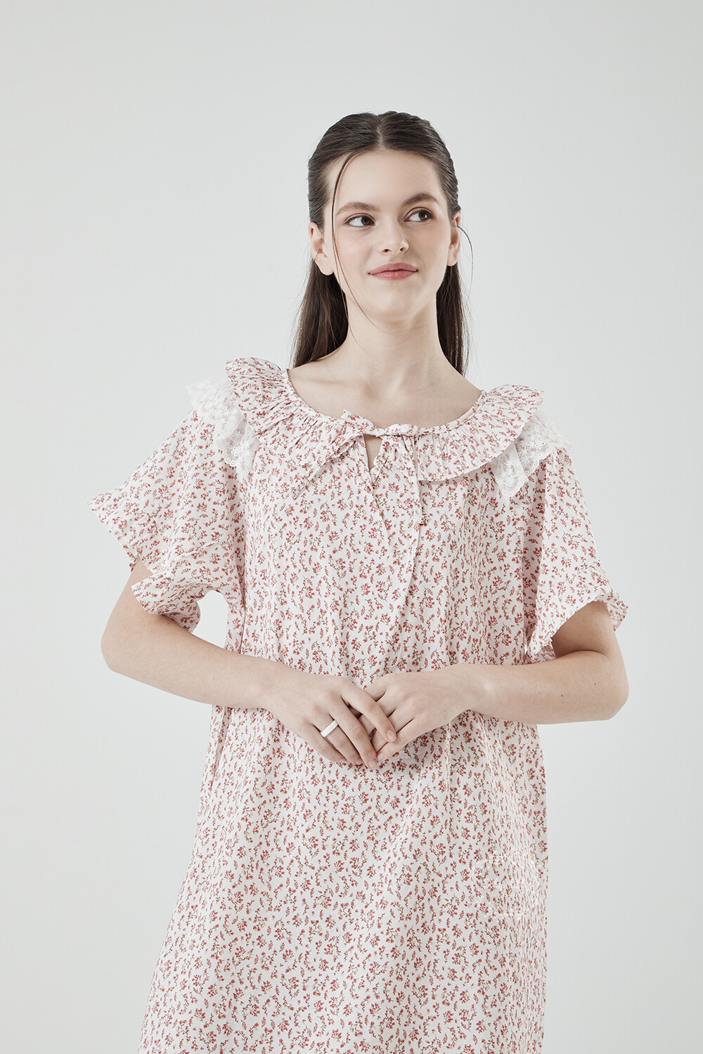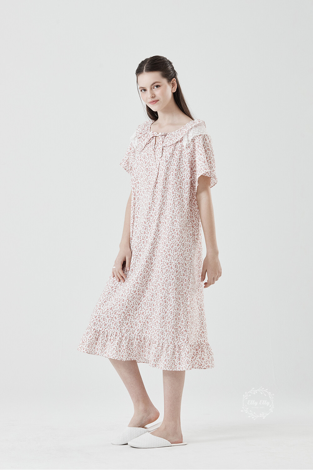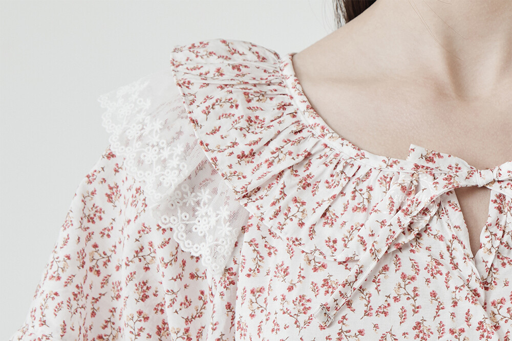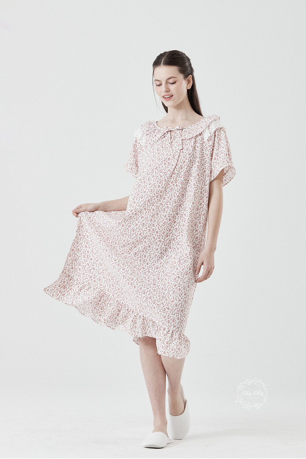 LL-716 엘리엘리 정품 잔꽃 프릴레이스 여성 반팔드레스 레드