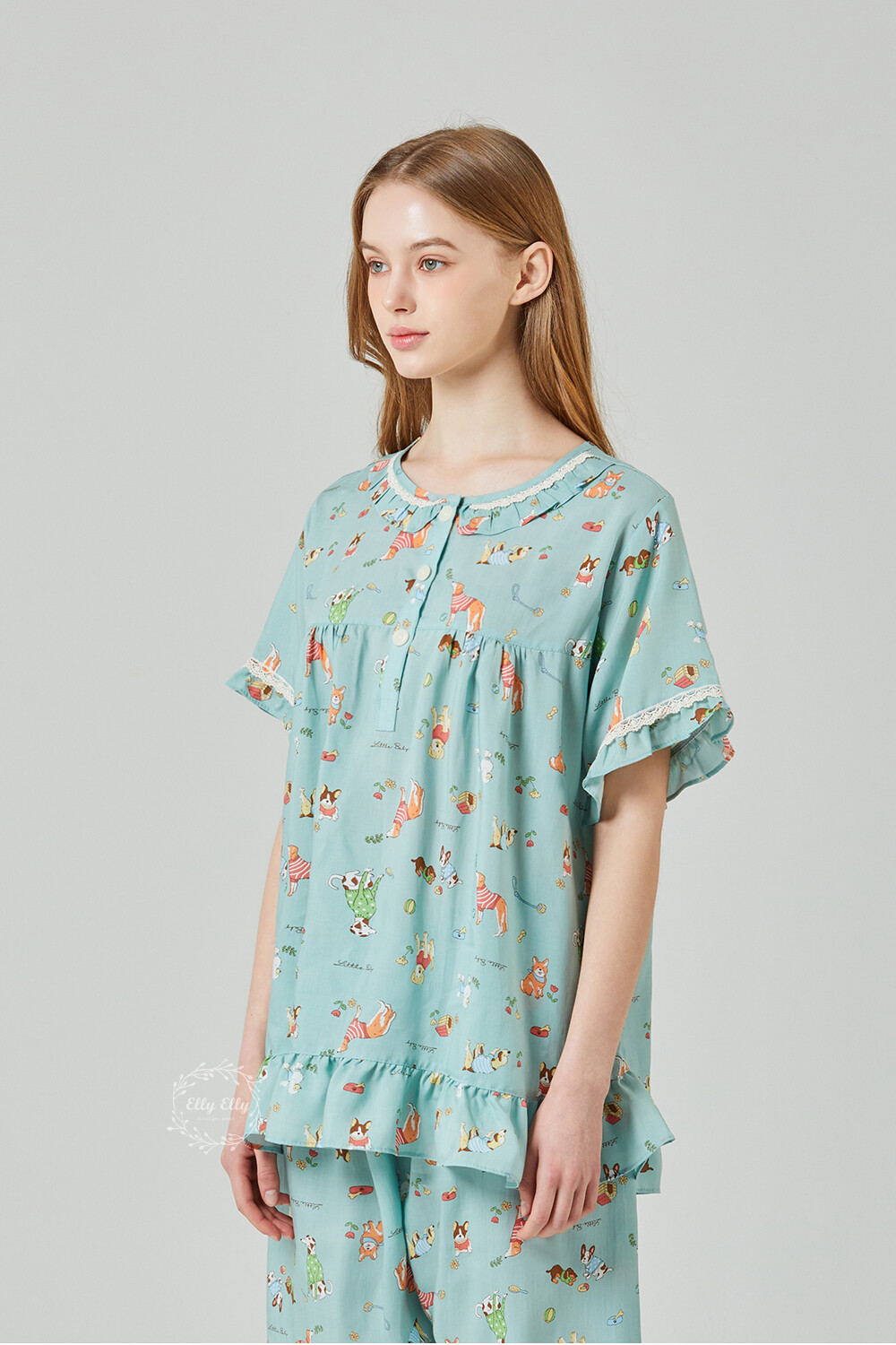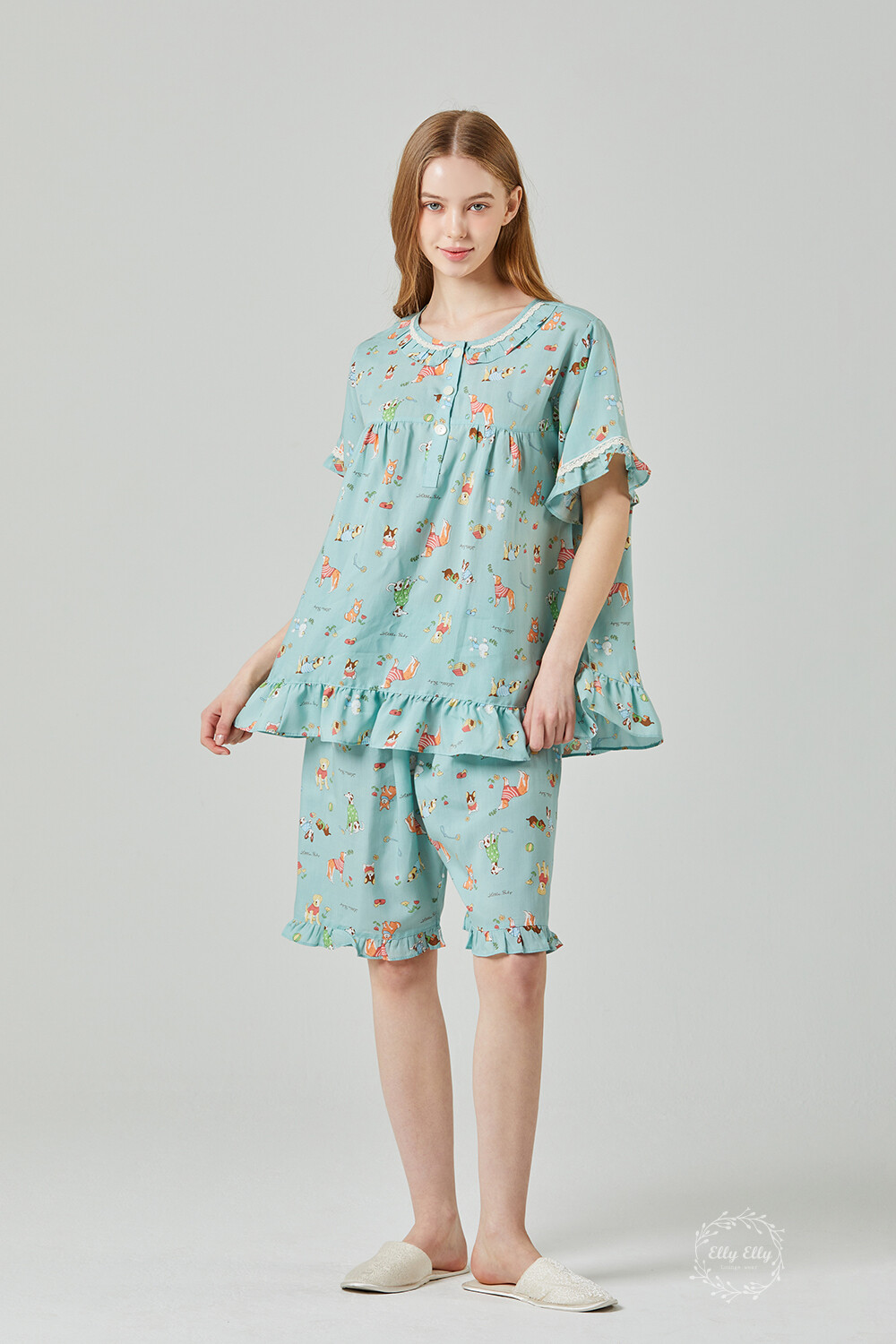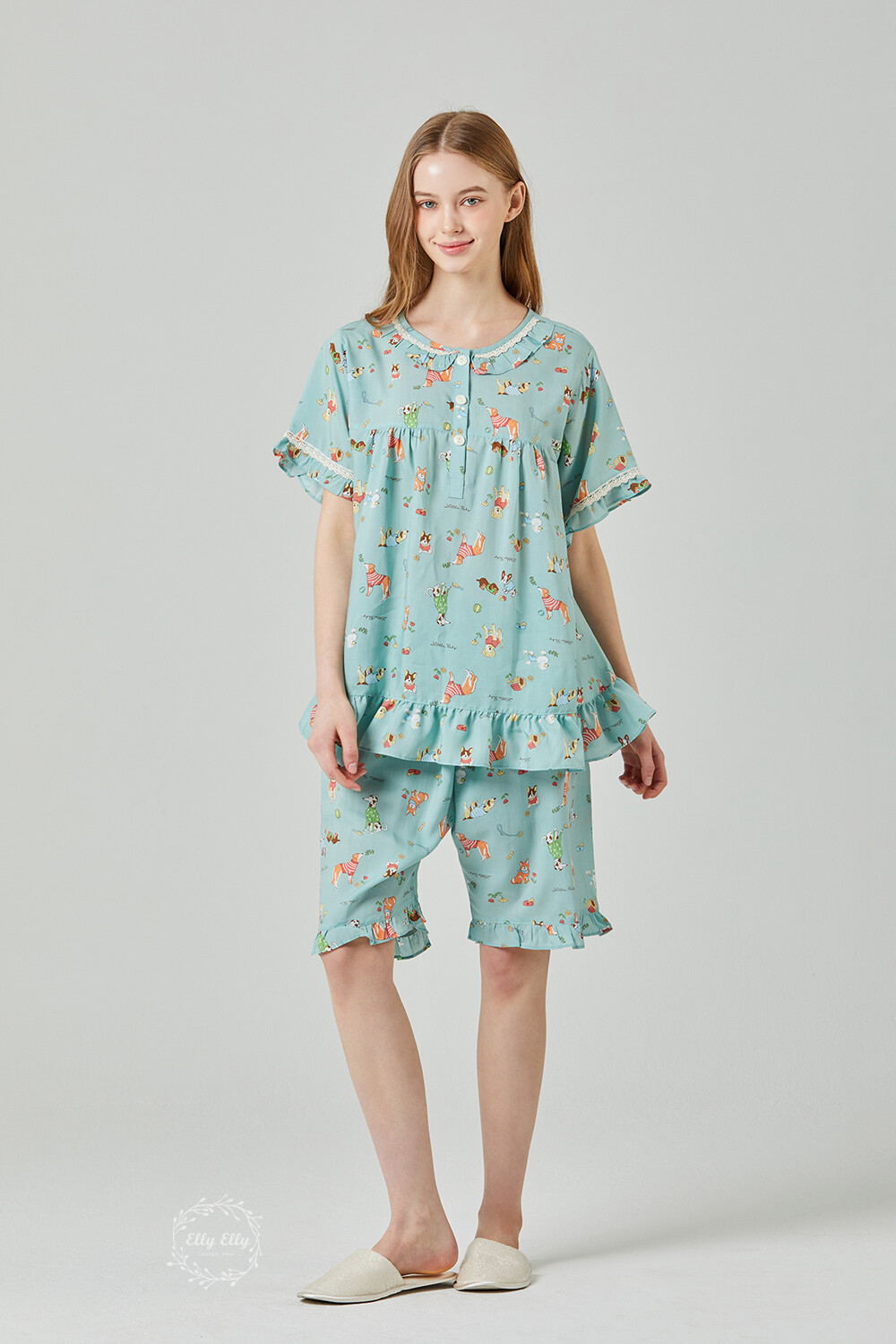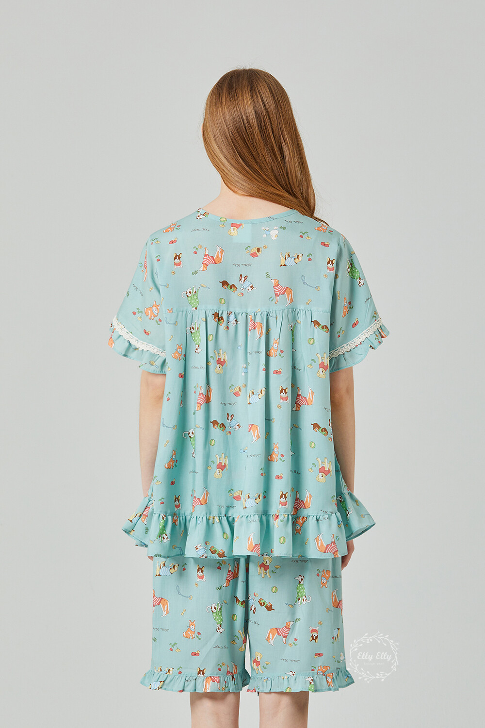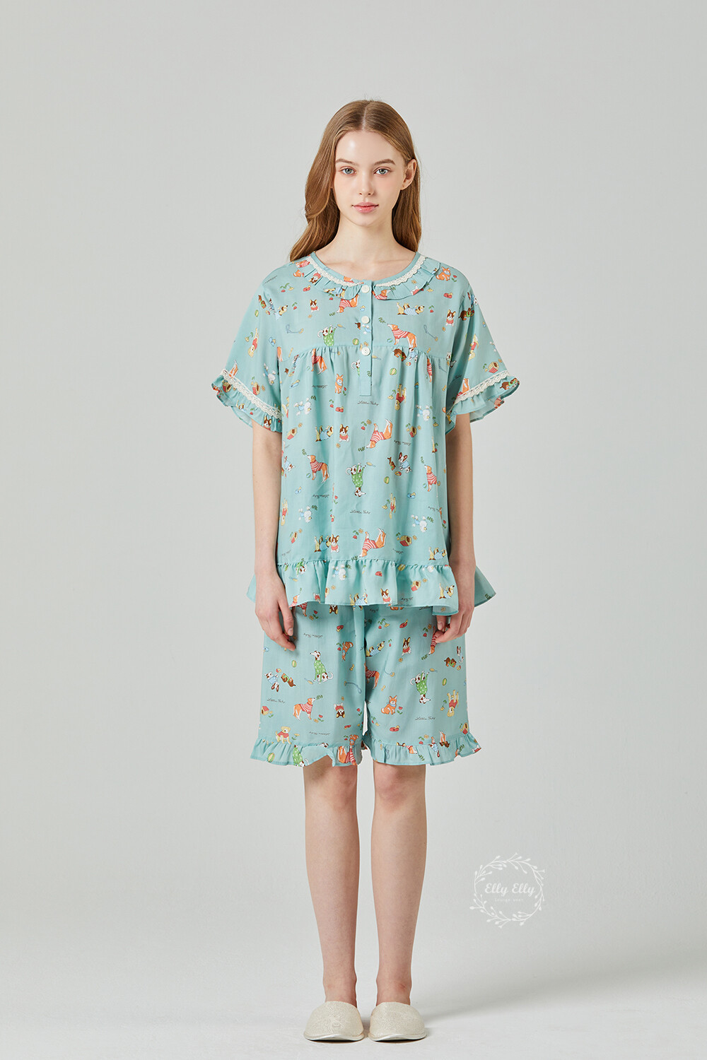 LL-803 엘리엘리 정품 프릴레이스 반팔상하 민트