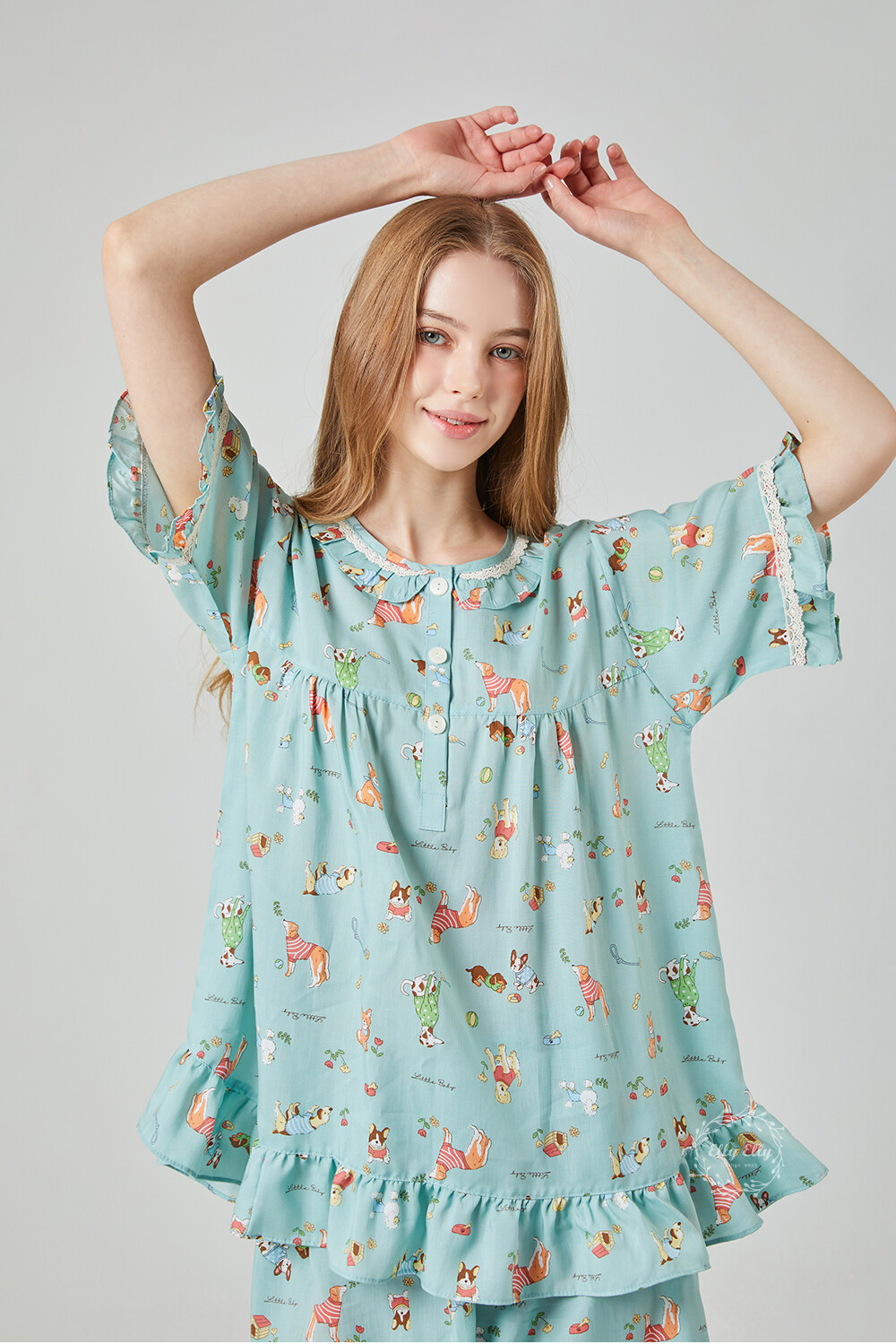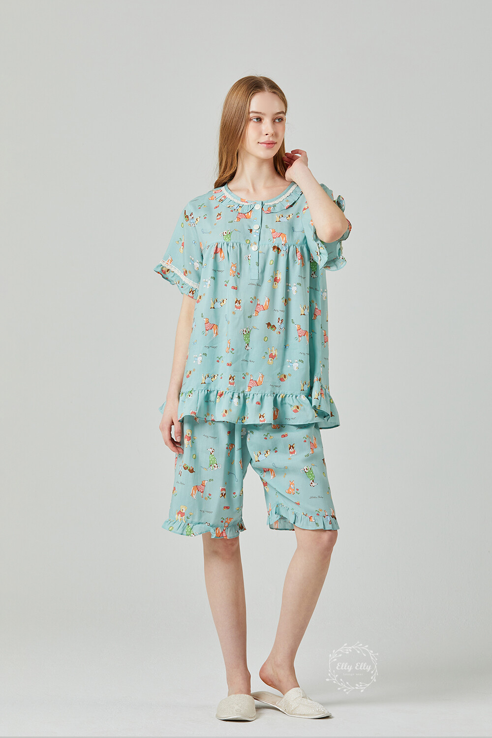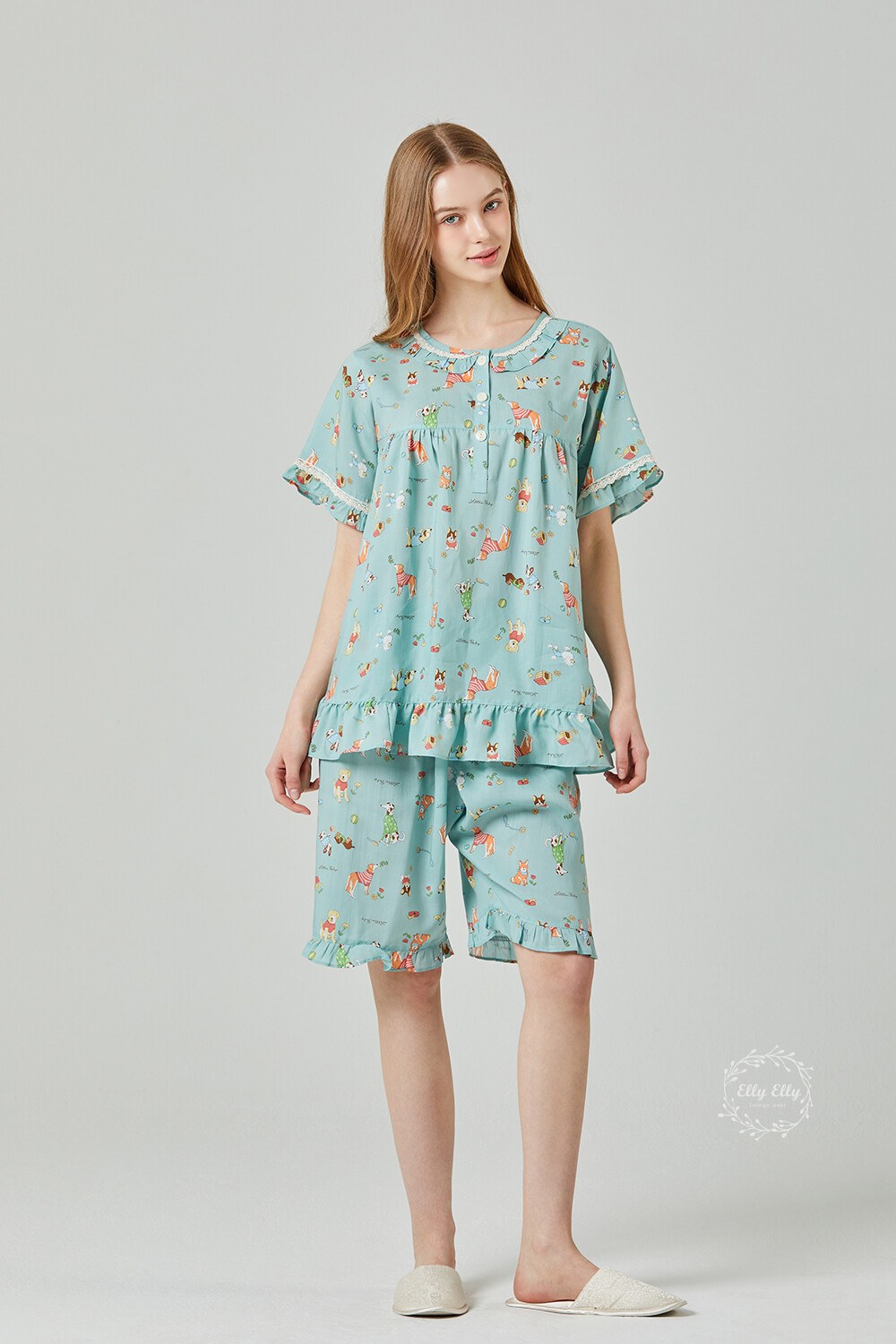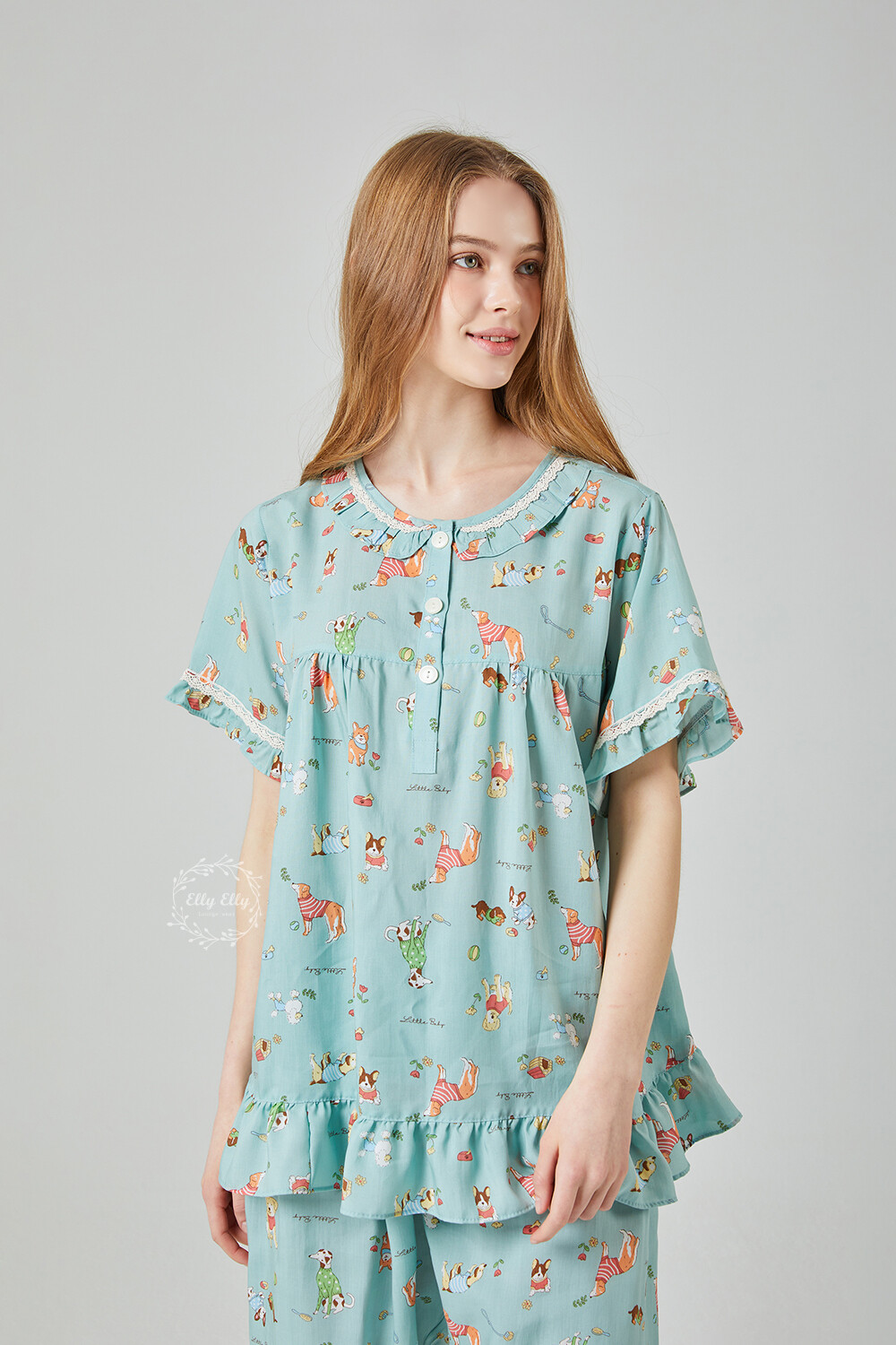 LL-803 엘리엘리 정품 프릴레이스 반팔상하 민트
