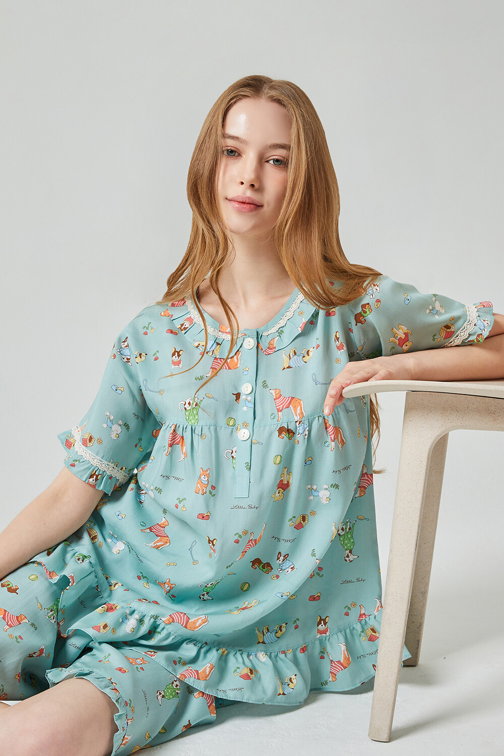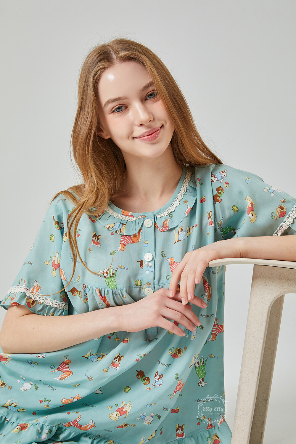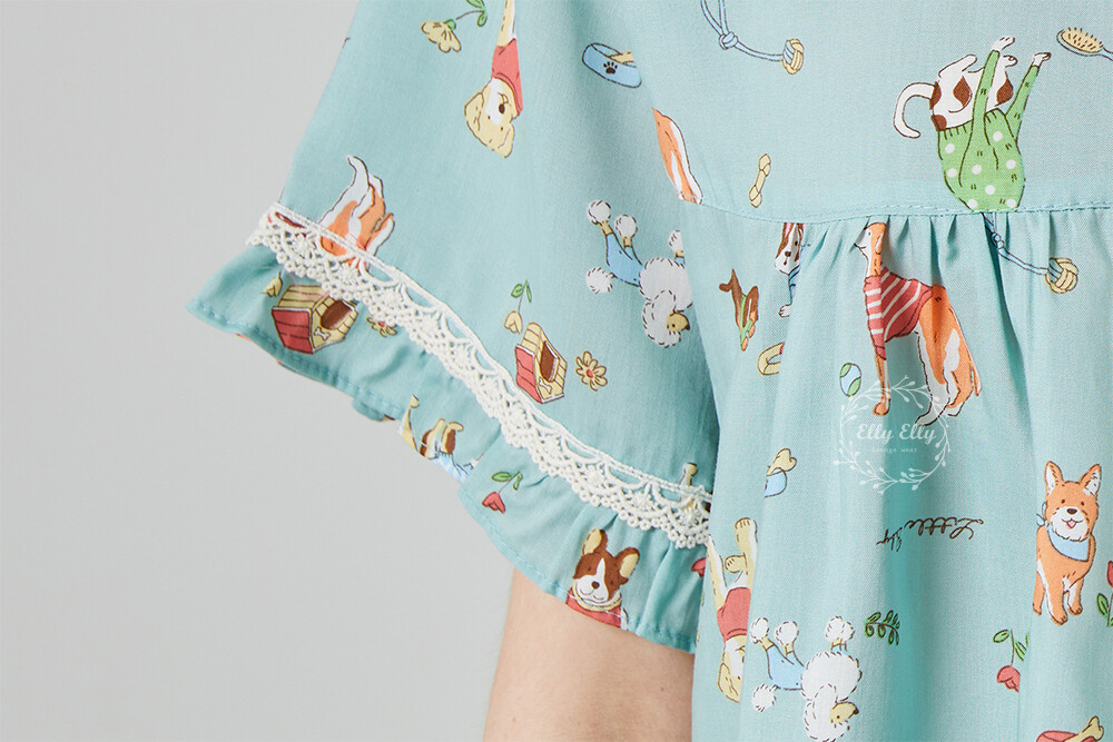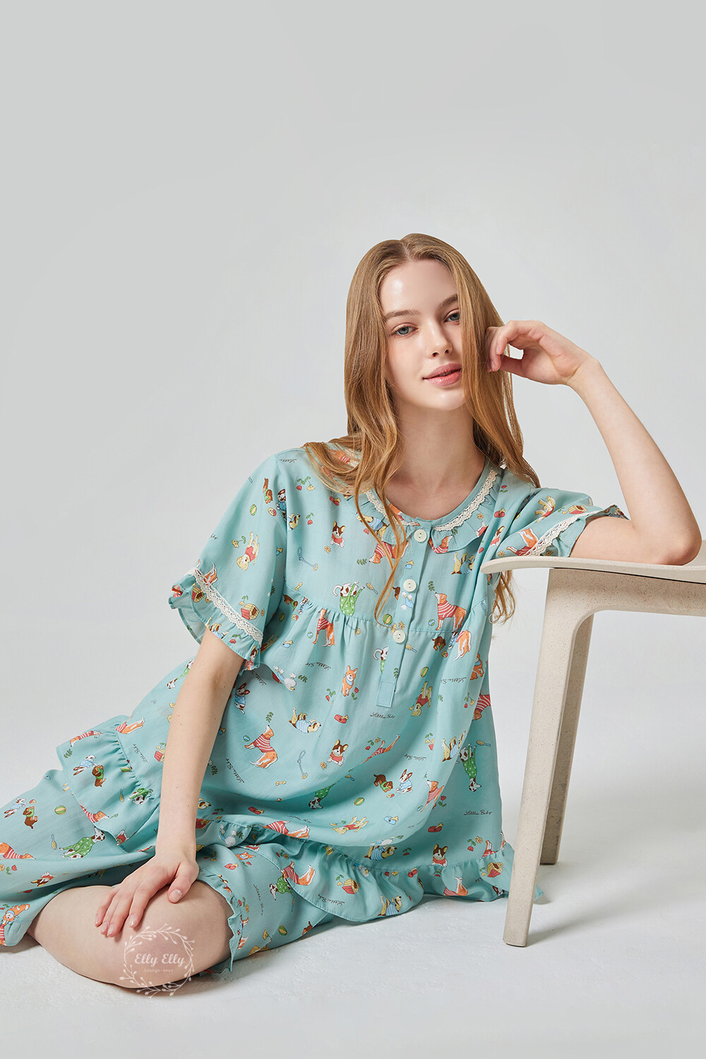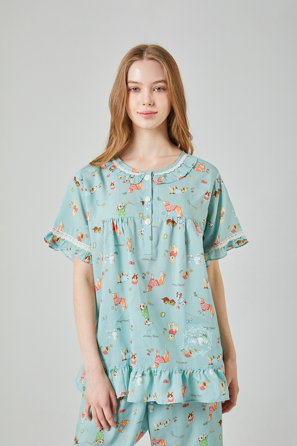 LL-803 엘리엘리 정품 프릴레이스 반팔상하 민트