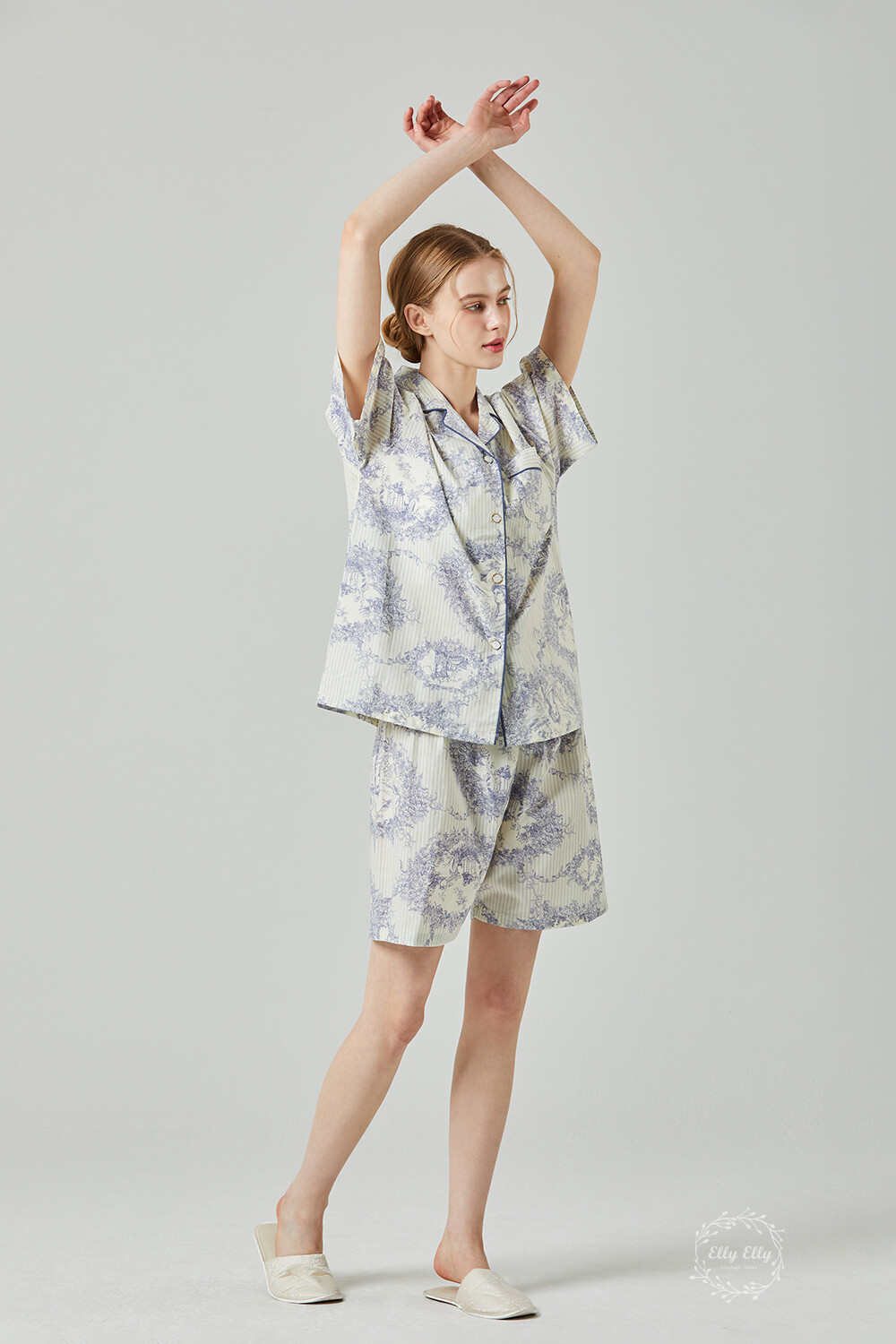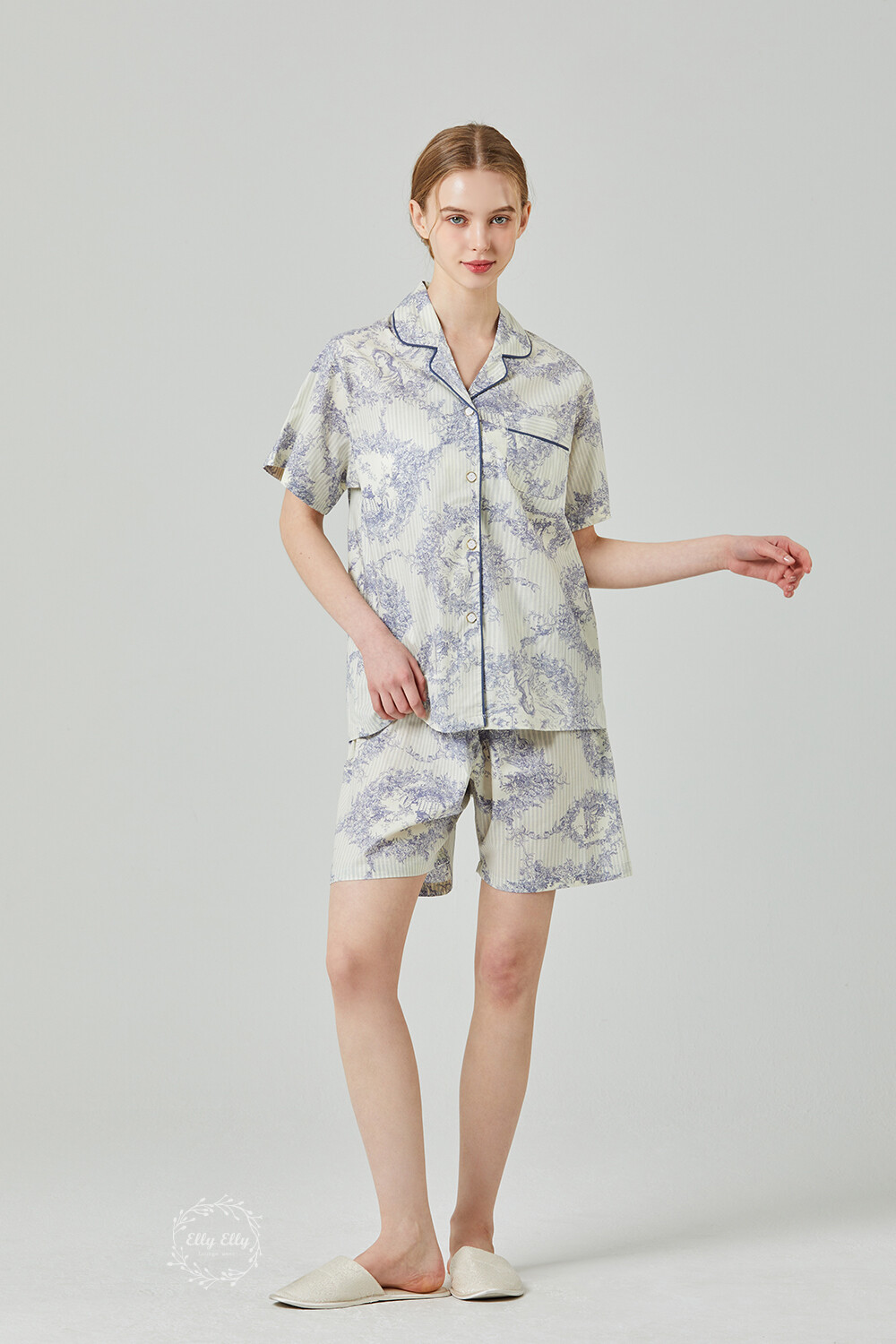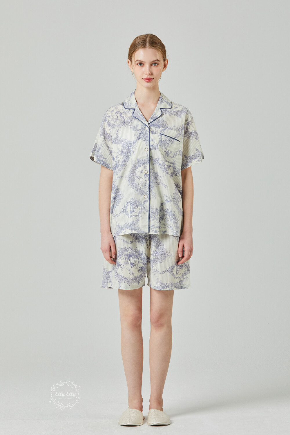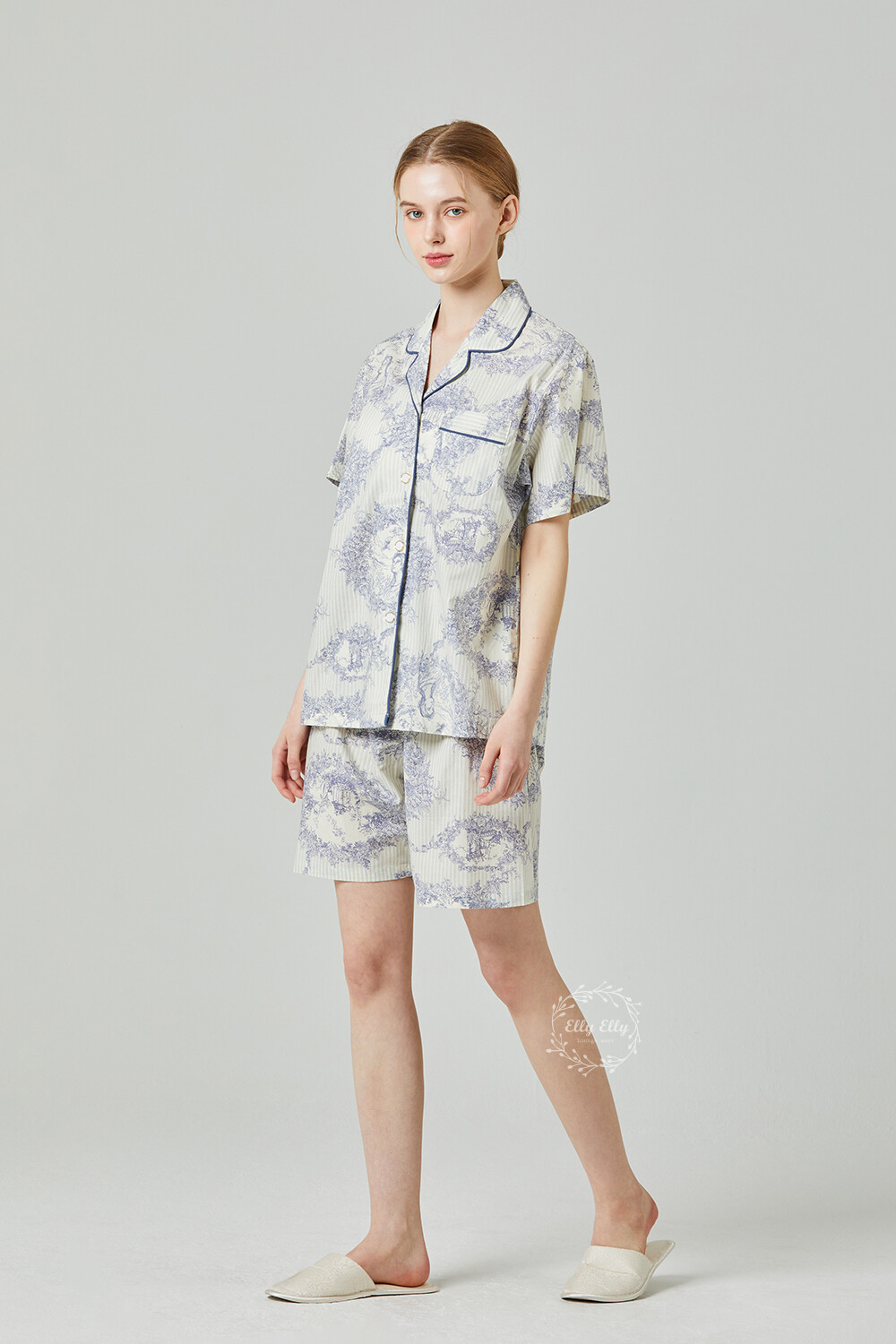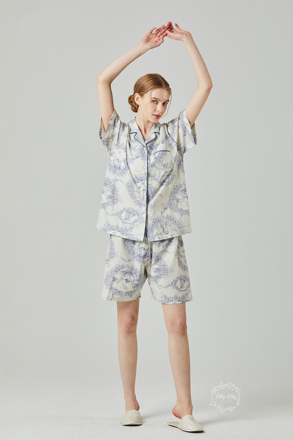 LL-804 엘리엘리 정품 명화그림 와이카라 여성 반팔상하 네이비