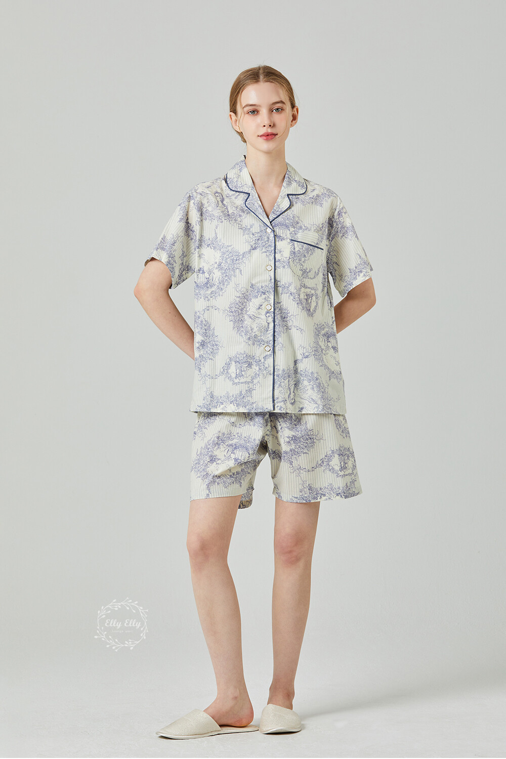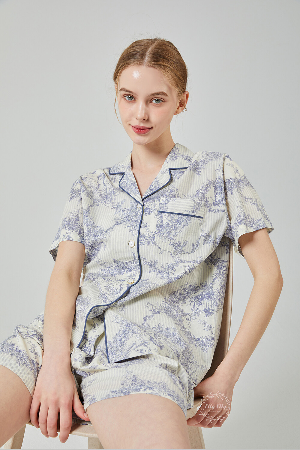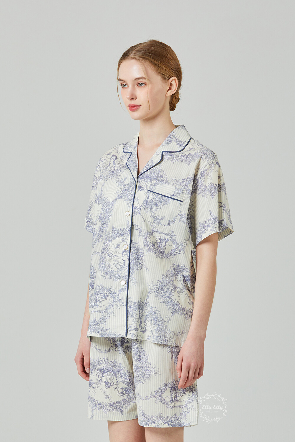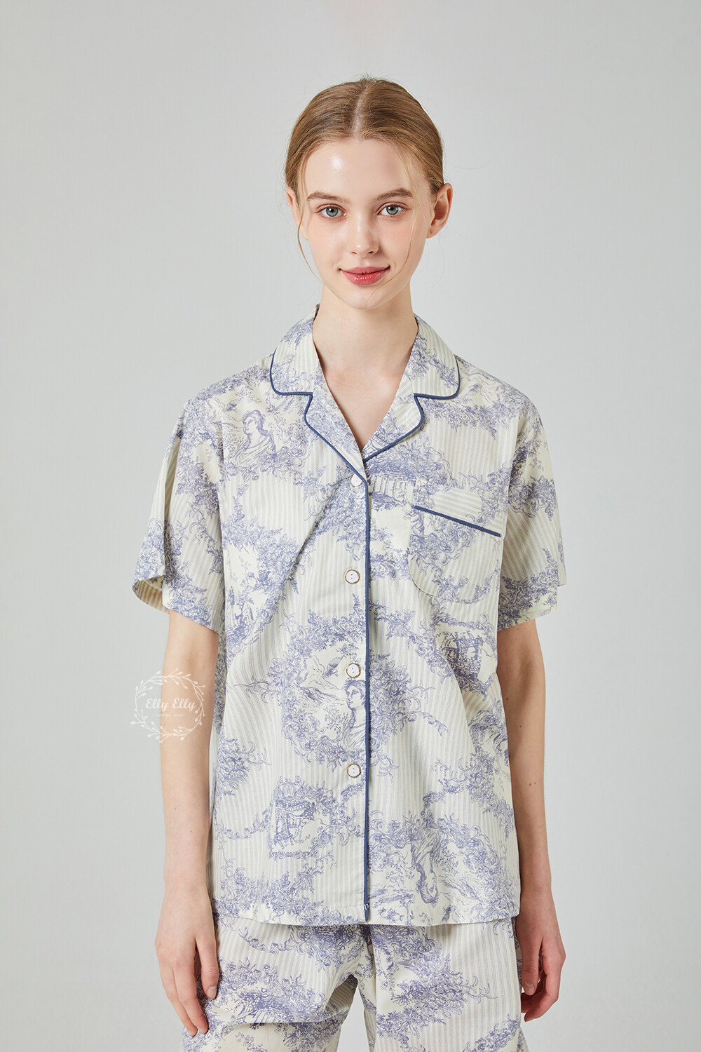 LL-804 엘리엘리 정품 명화그림 와이카라 여성 반팔상하 네이비