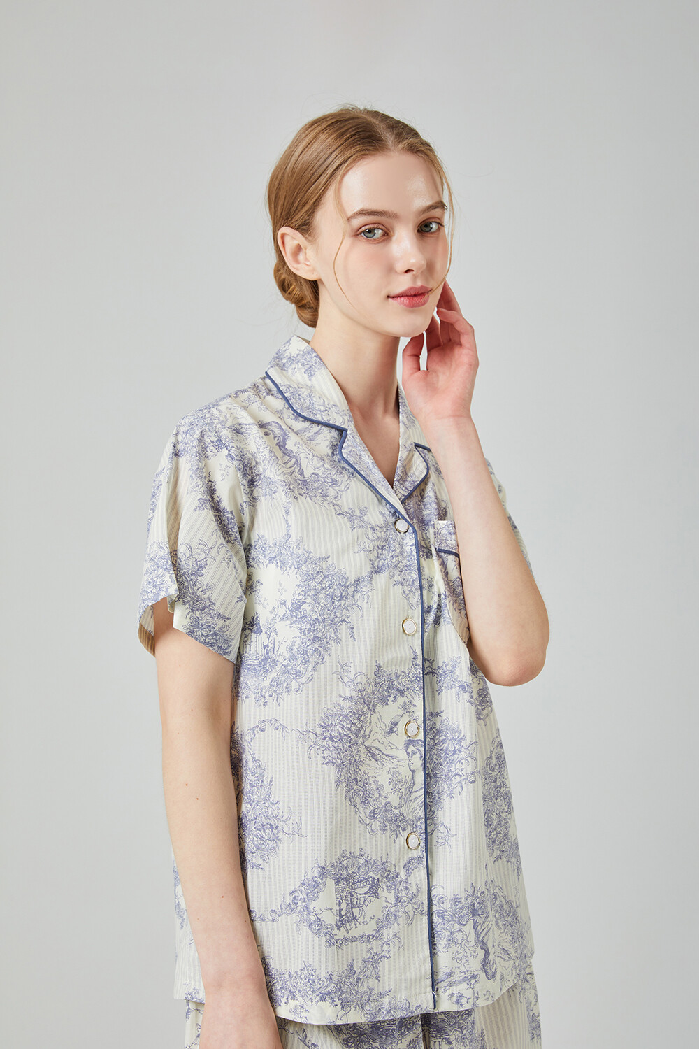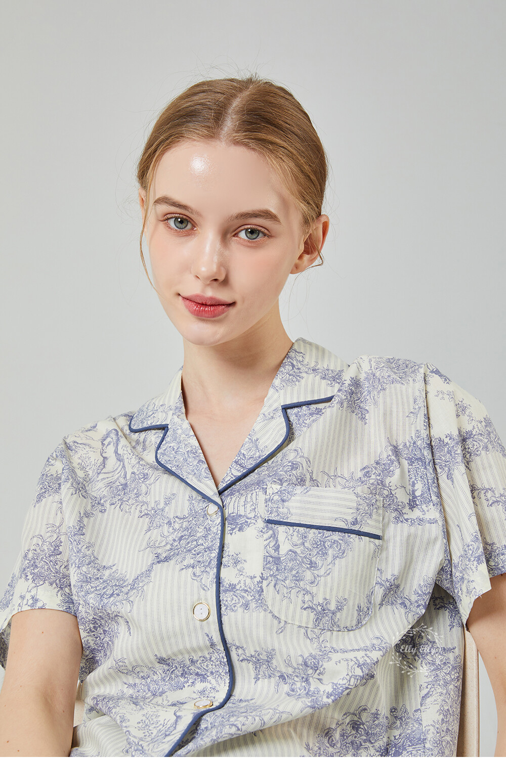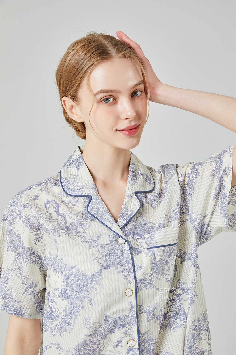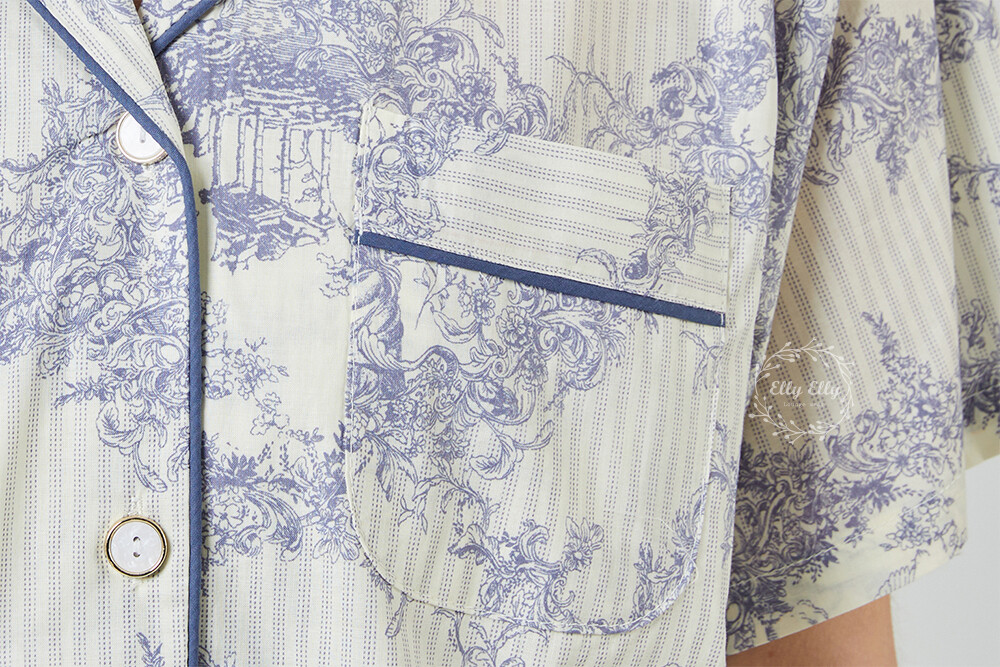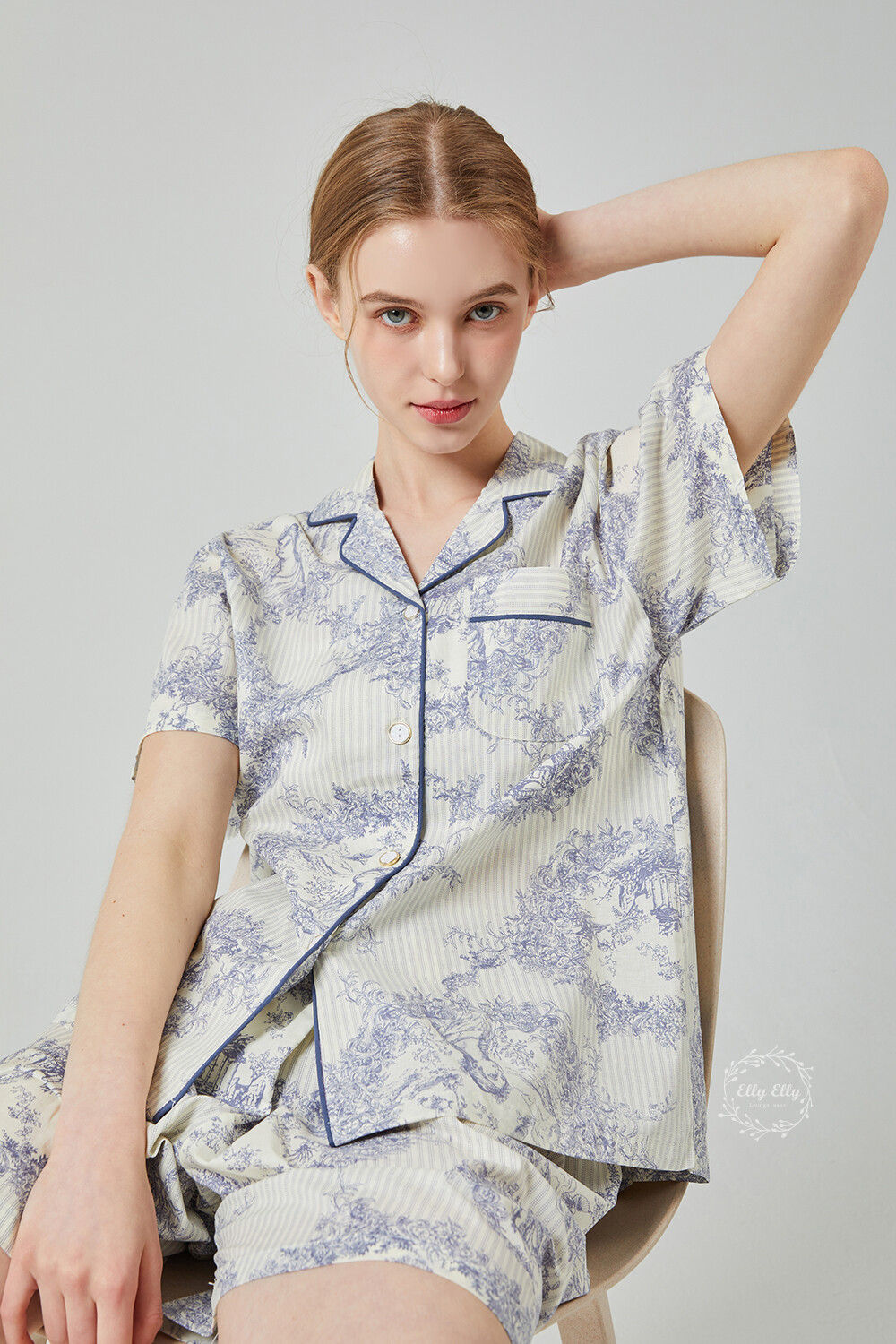 LL-804 엘리엘리 정품 명화그림 와이카라 여성 반팔상하 네이비
