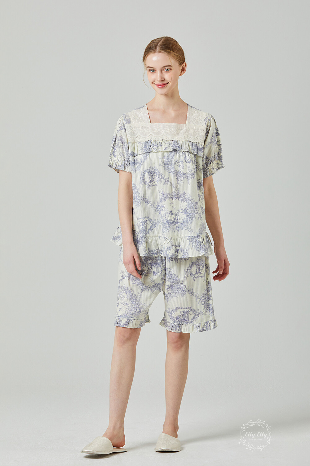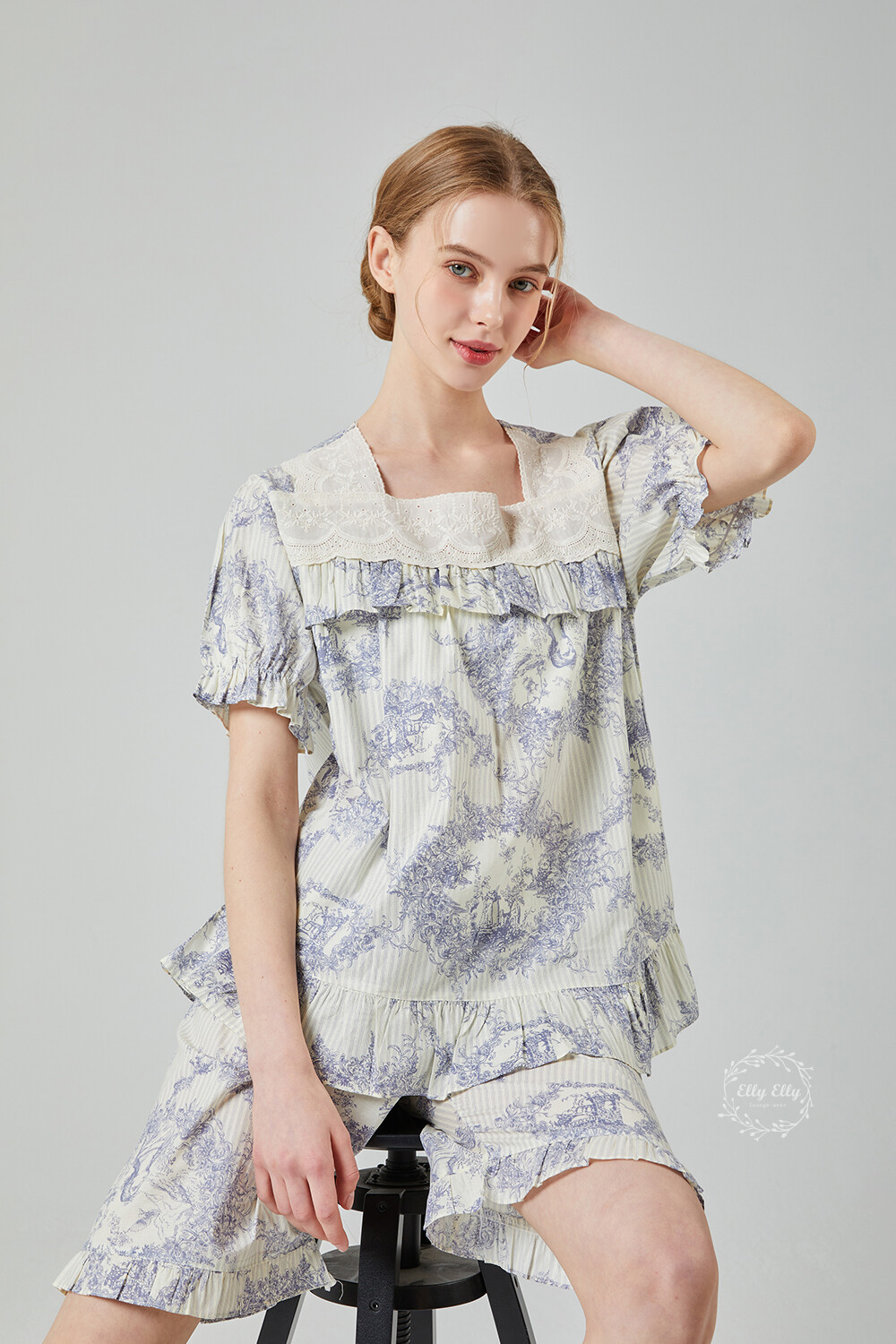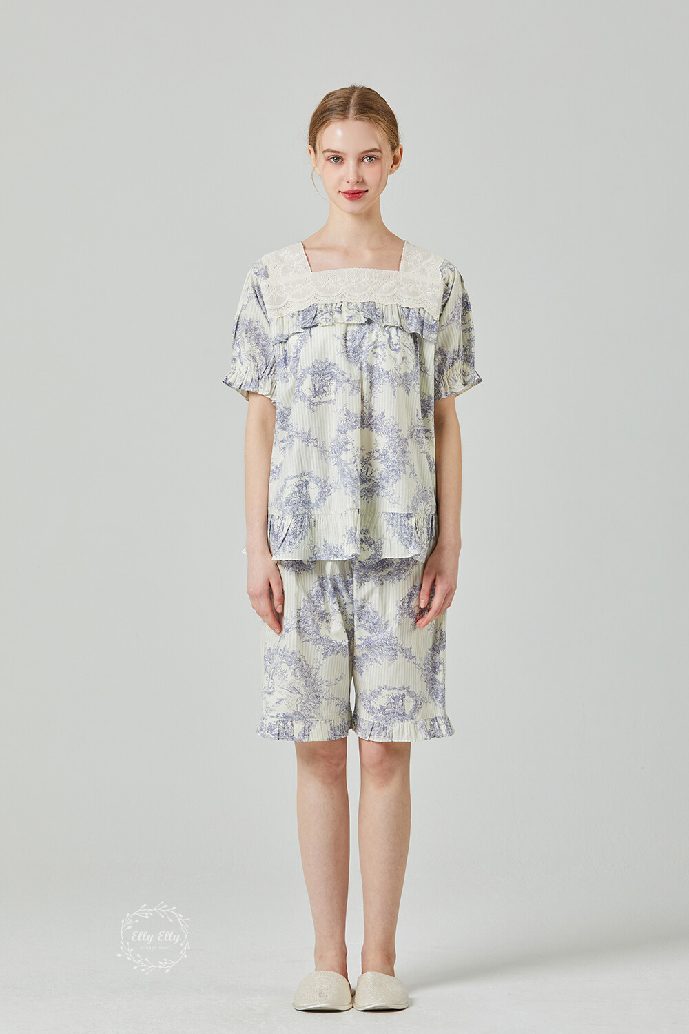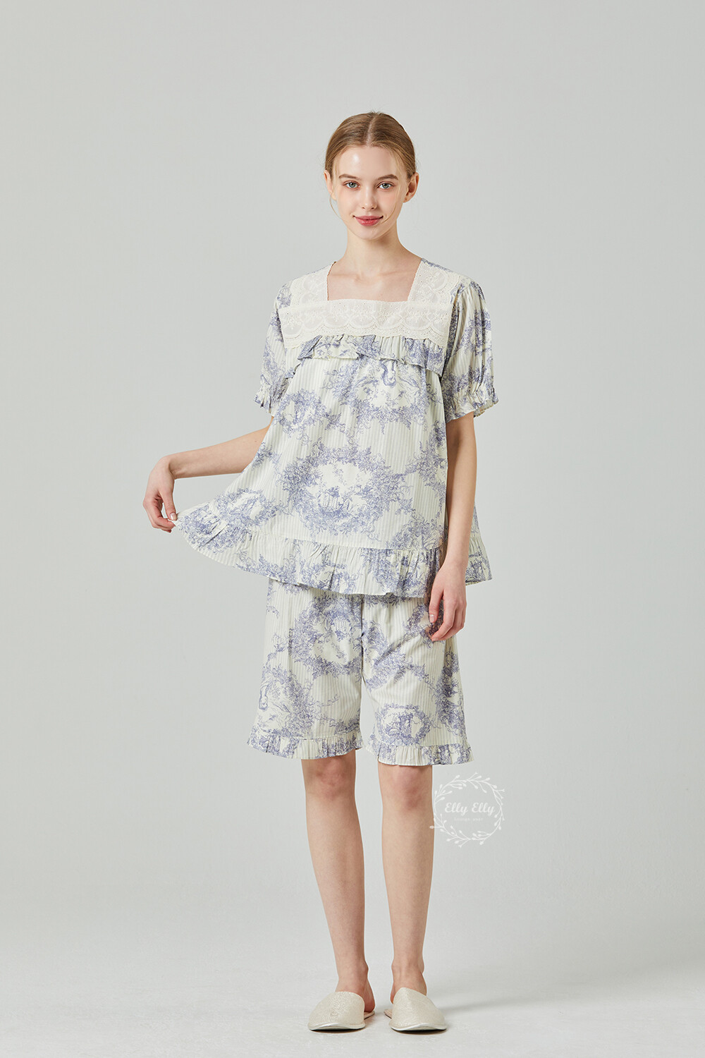 LL-805 엘리엘리 정품 명화그림 프릴레이스 반팔상하 네이비