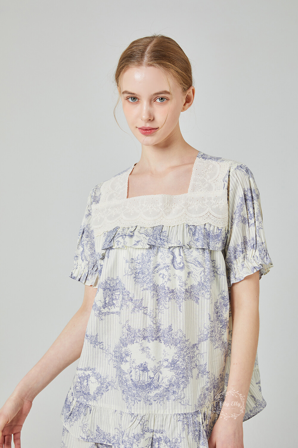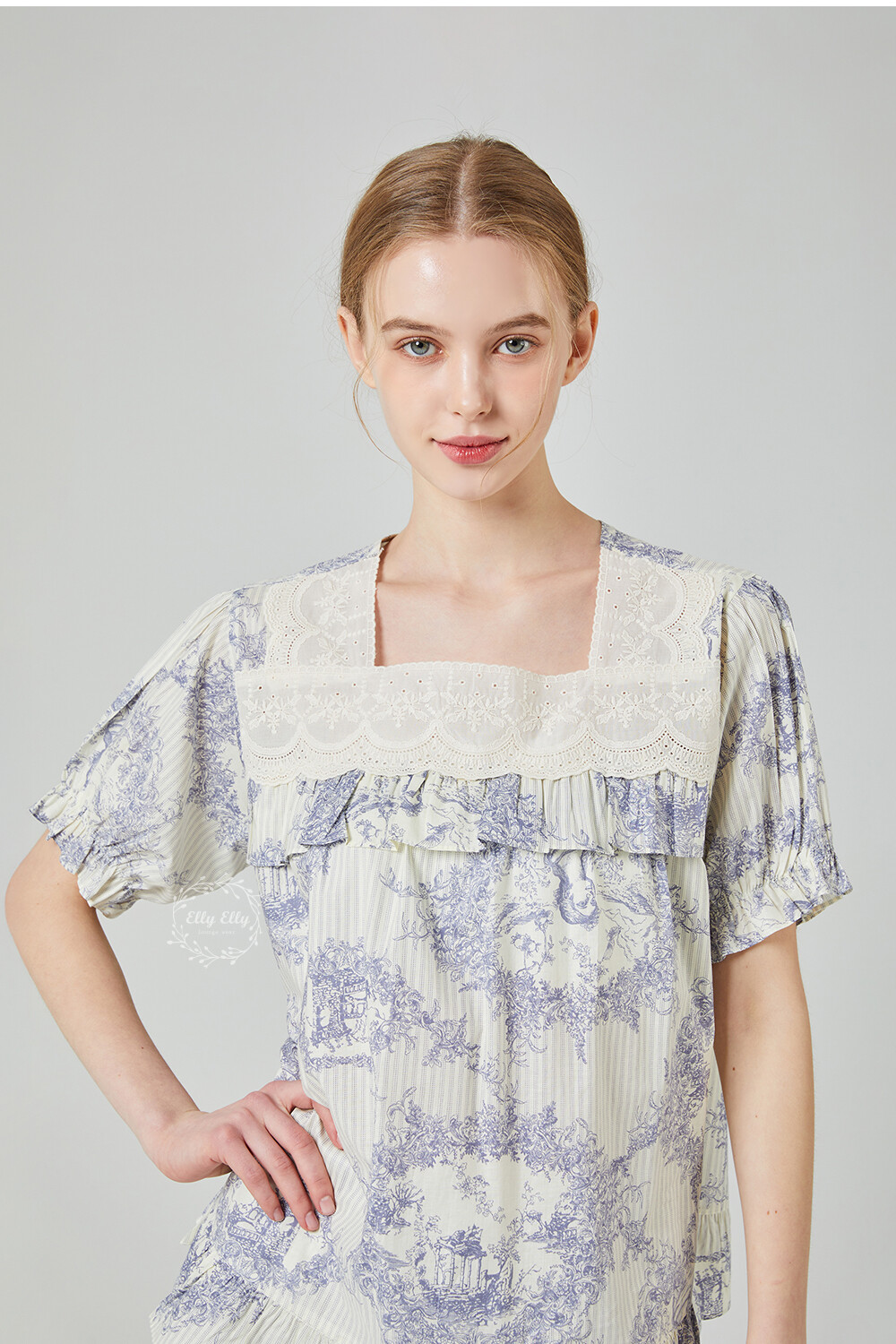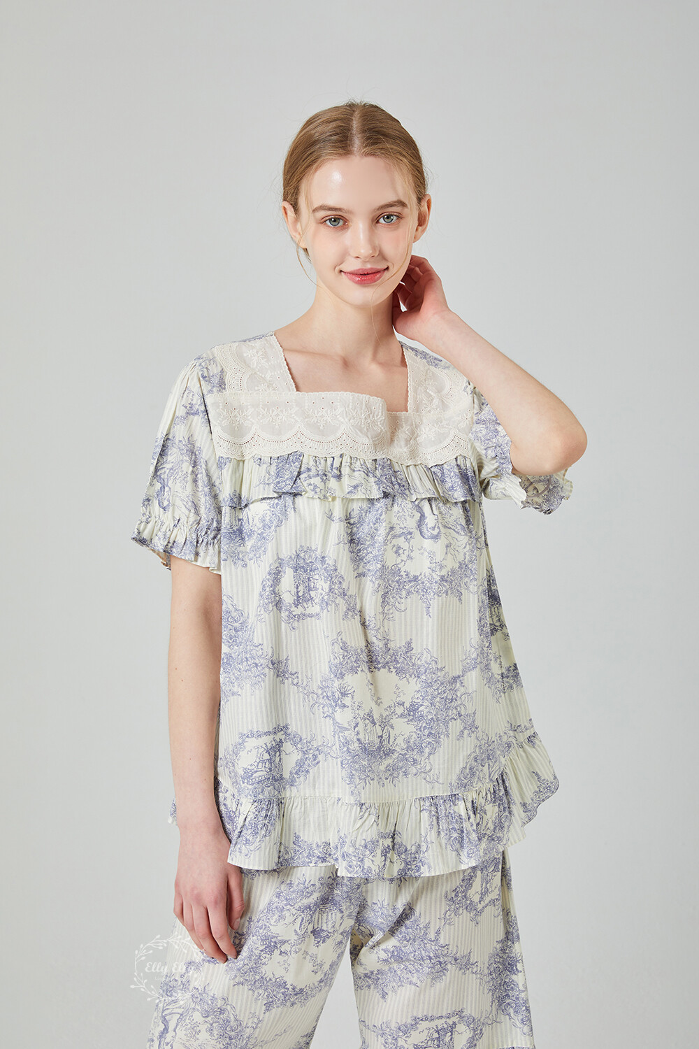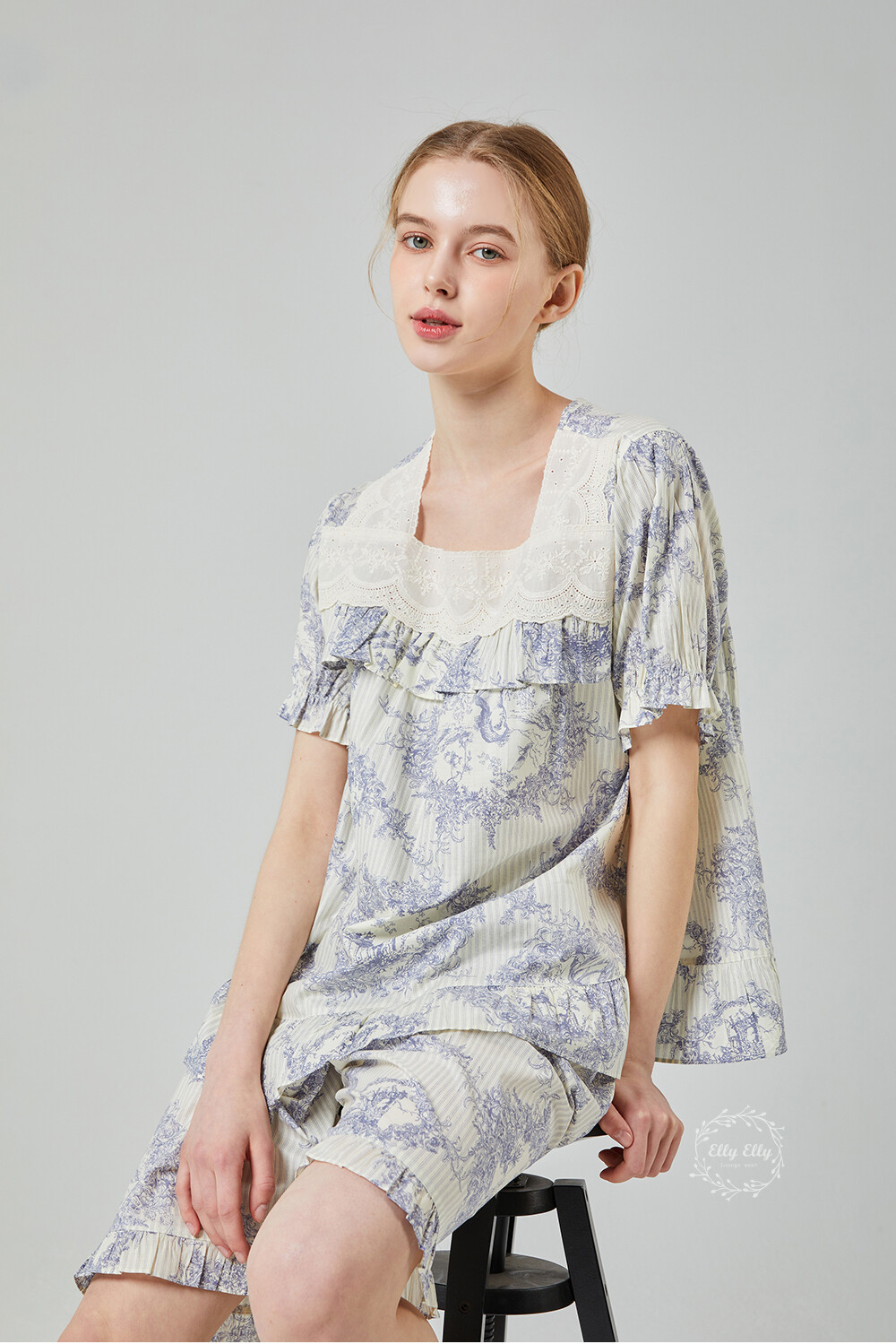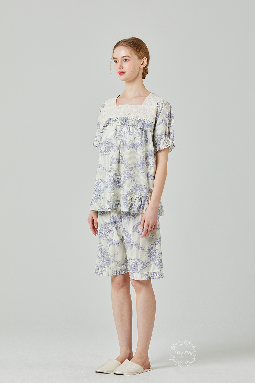 LL-805 엘리엘리 정품 명화그림 프릴레이스 반팔상하 네이비
