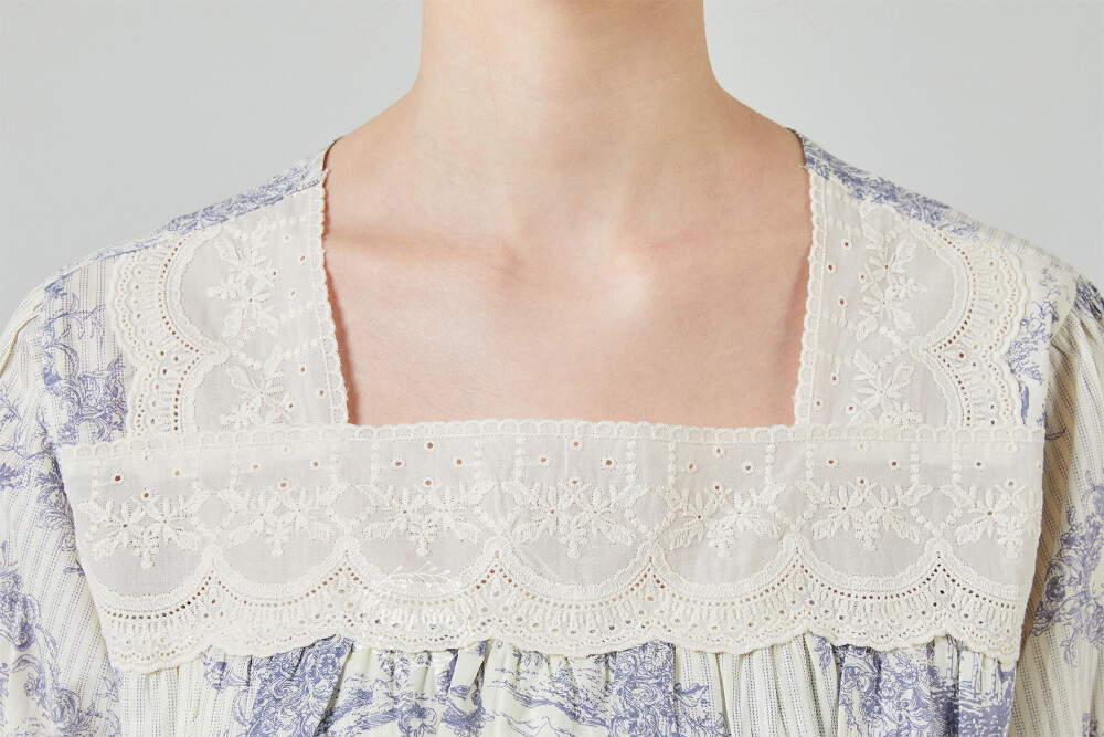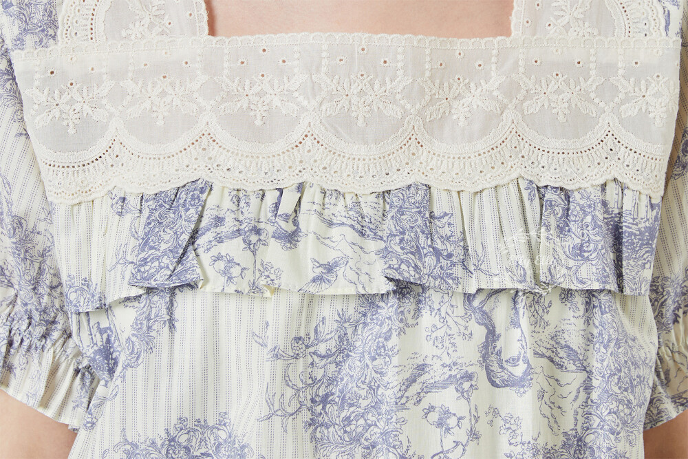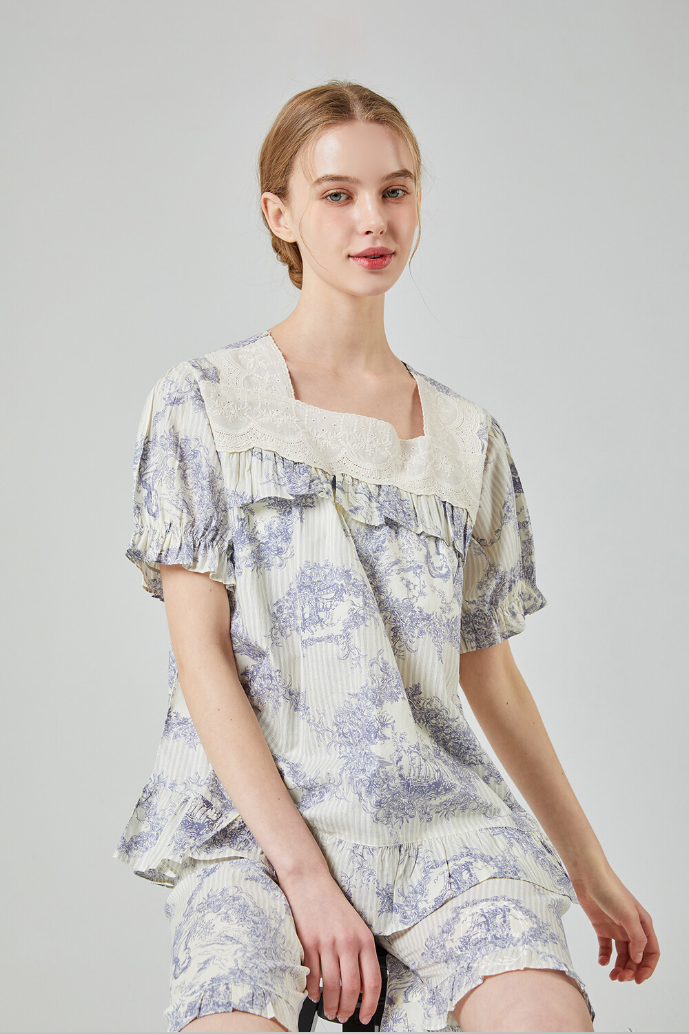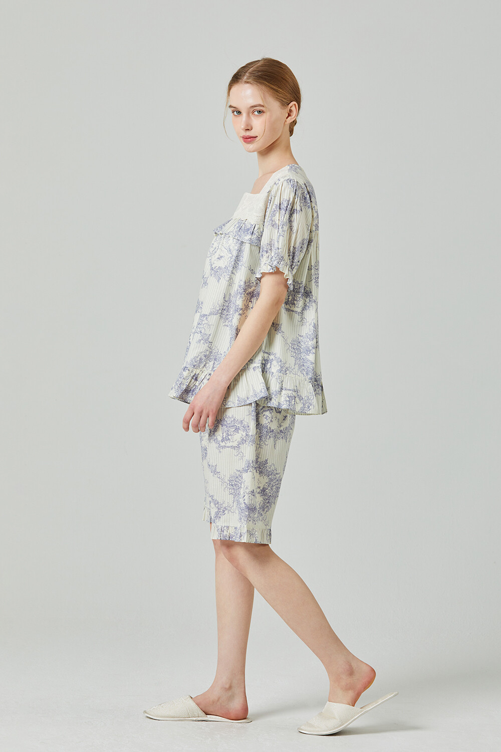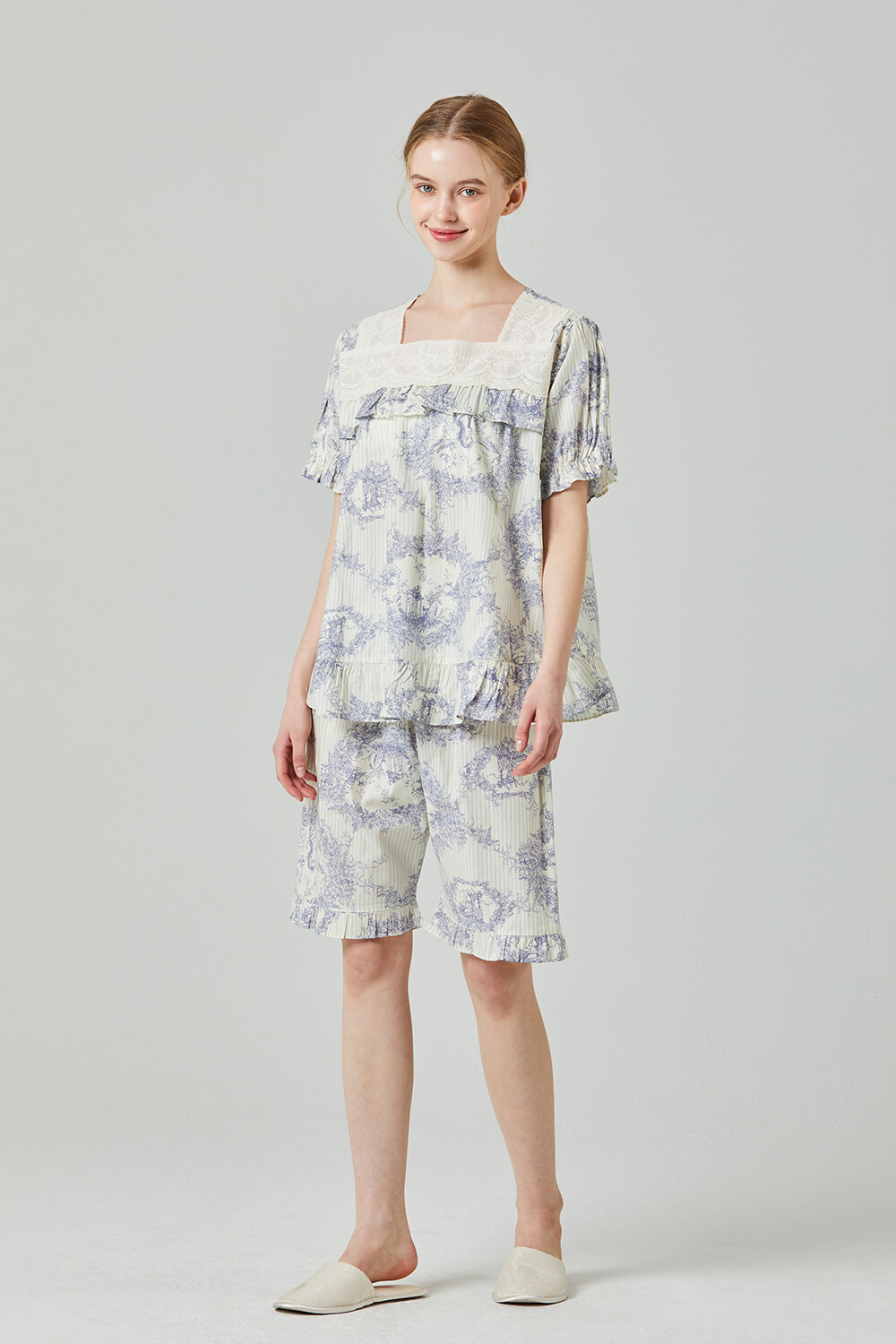 LL-805 엘리엘리 정품 명화그림 프릴레이스 반팔상하 네이비